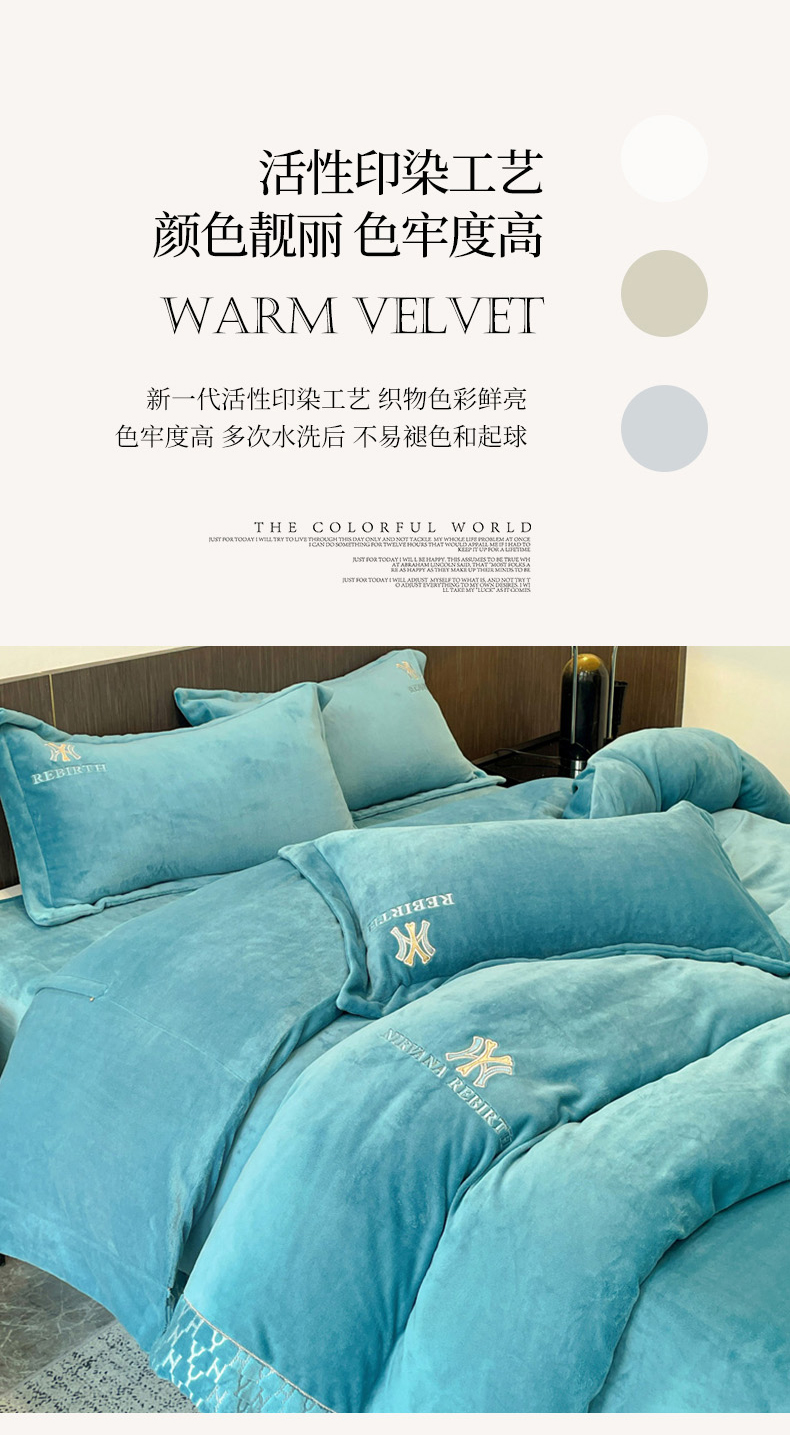 (总)星尚家纺 2024新款加厚保暖全消光牛奶绒夹棉床裙四件套-玫瑰之恋,粉玉,寐紫,浅蓝,水绿