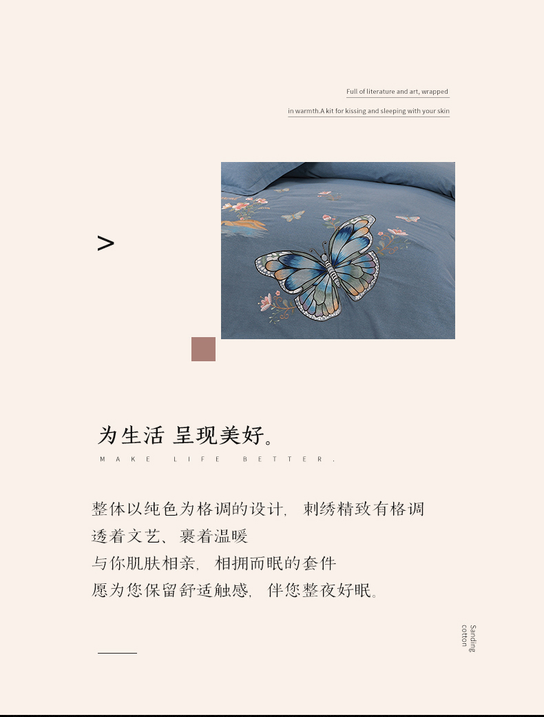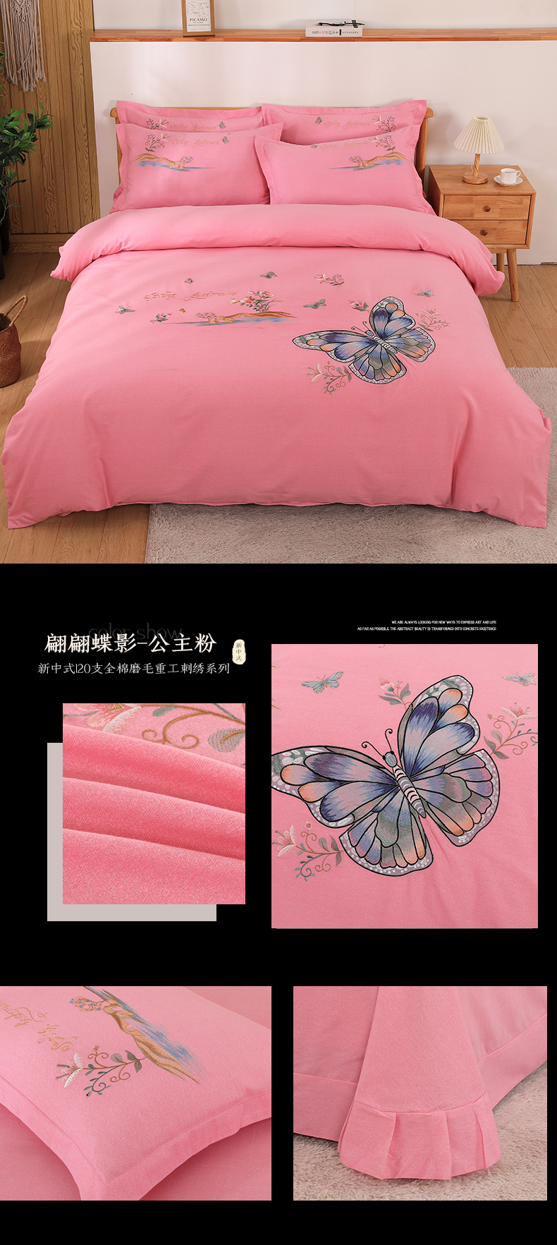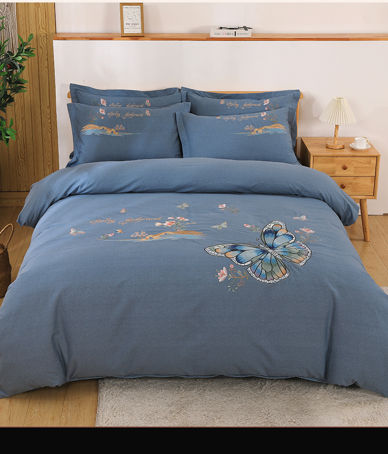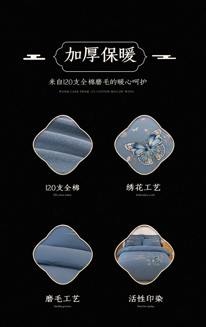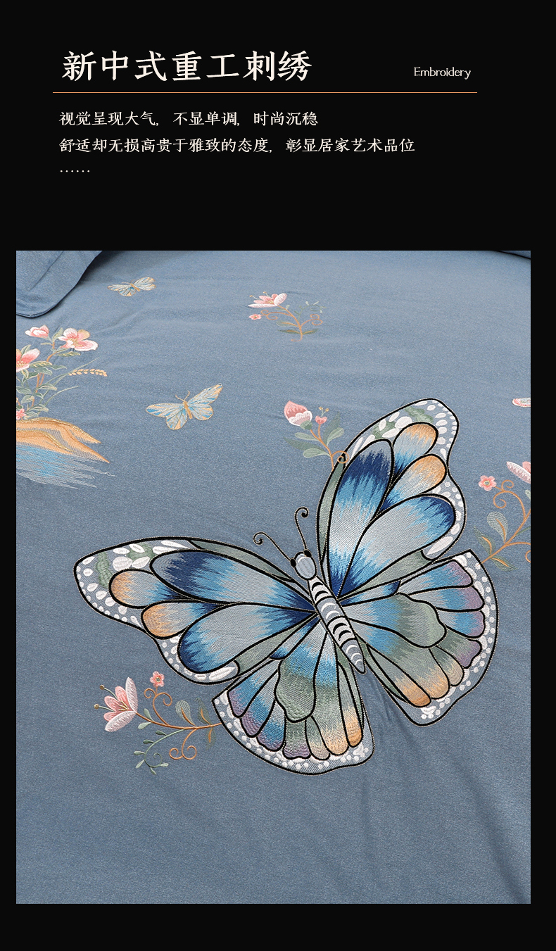 商品名称:浩情国际婚庆供货中心 2026新款秋冬60S高端全棉刺绣磨毛系列 翩翩蝶影-银灰