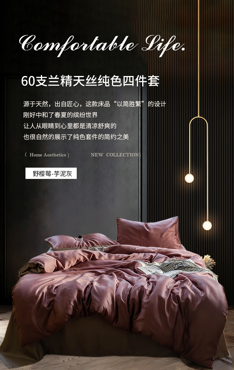 浩情国际婚庆供货中心 2026新款60支奥地利兰精天丝纯色双拼系列四件套 野樱莓-芋泥灰