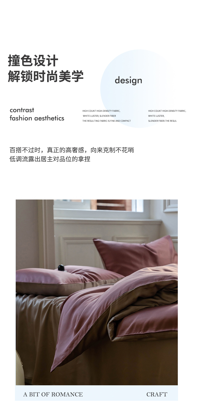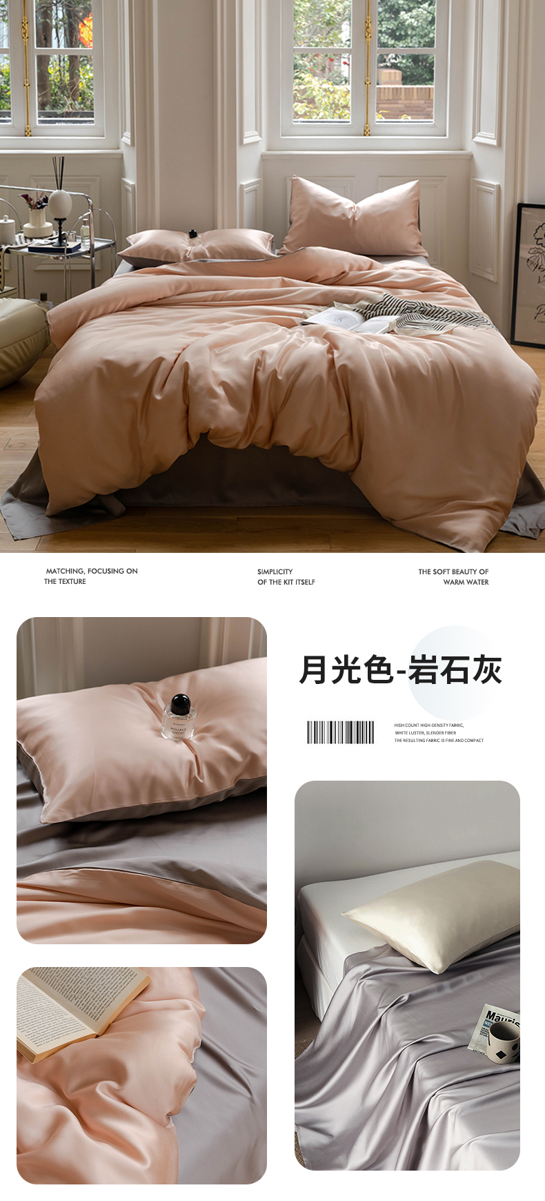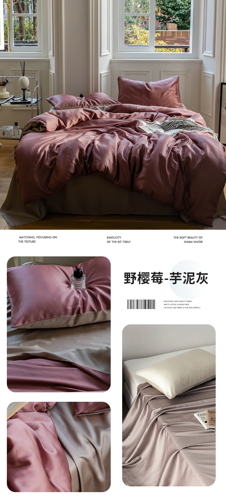 商品名称:浩情国际婚庆供货中心 2026新款60支奥地利兰精天丝纯色双拼系列四件套 野樱莓-芋泥灰