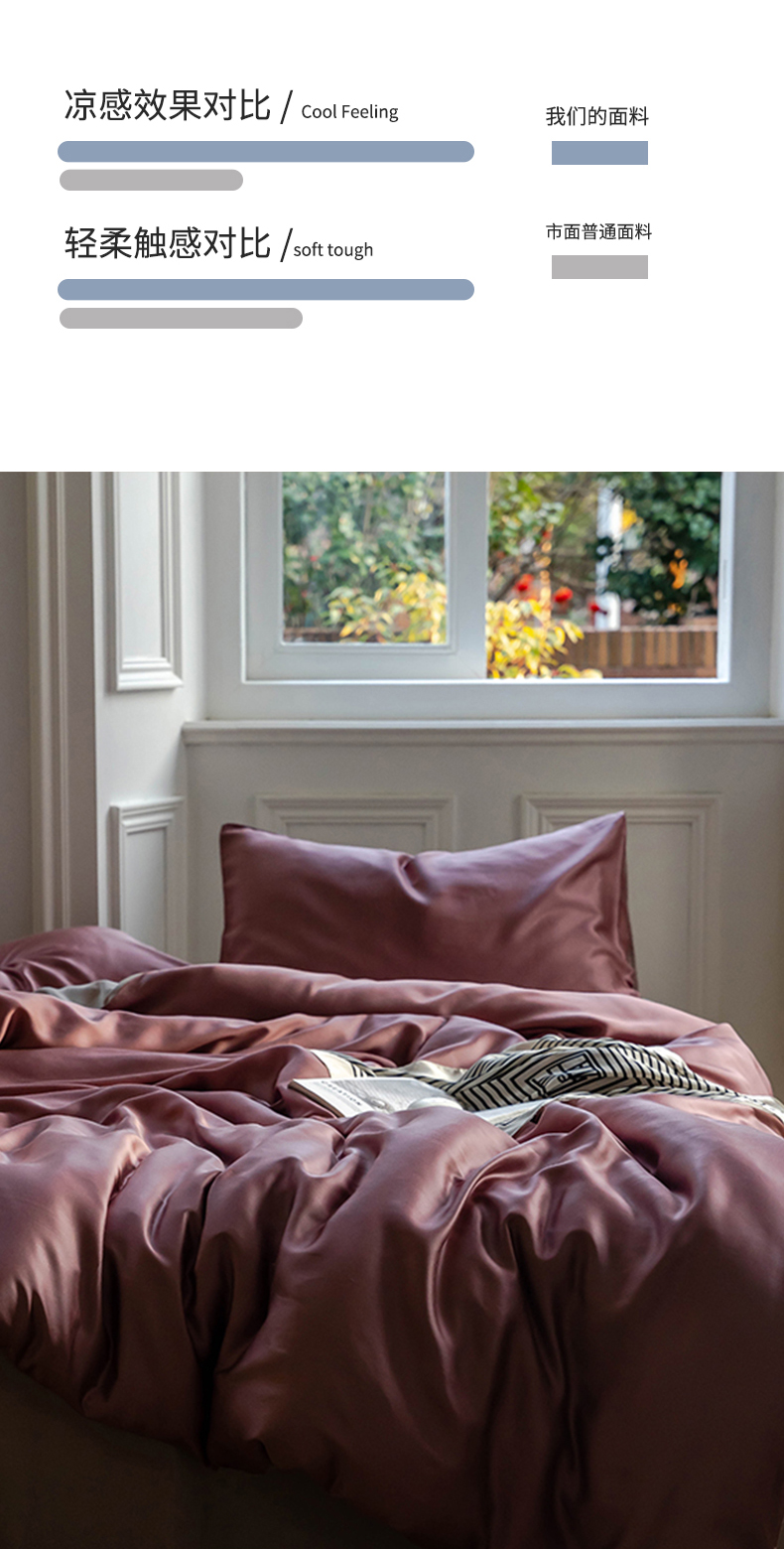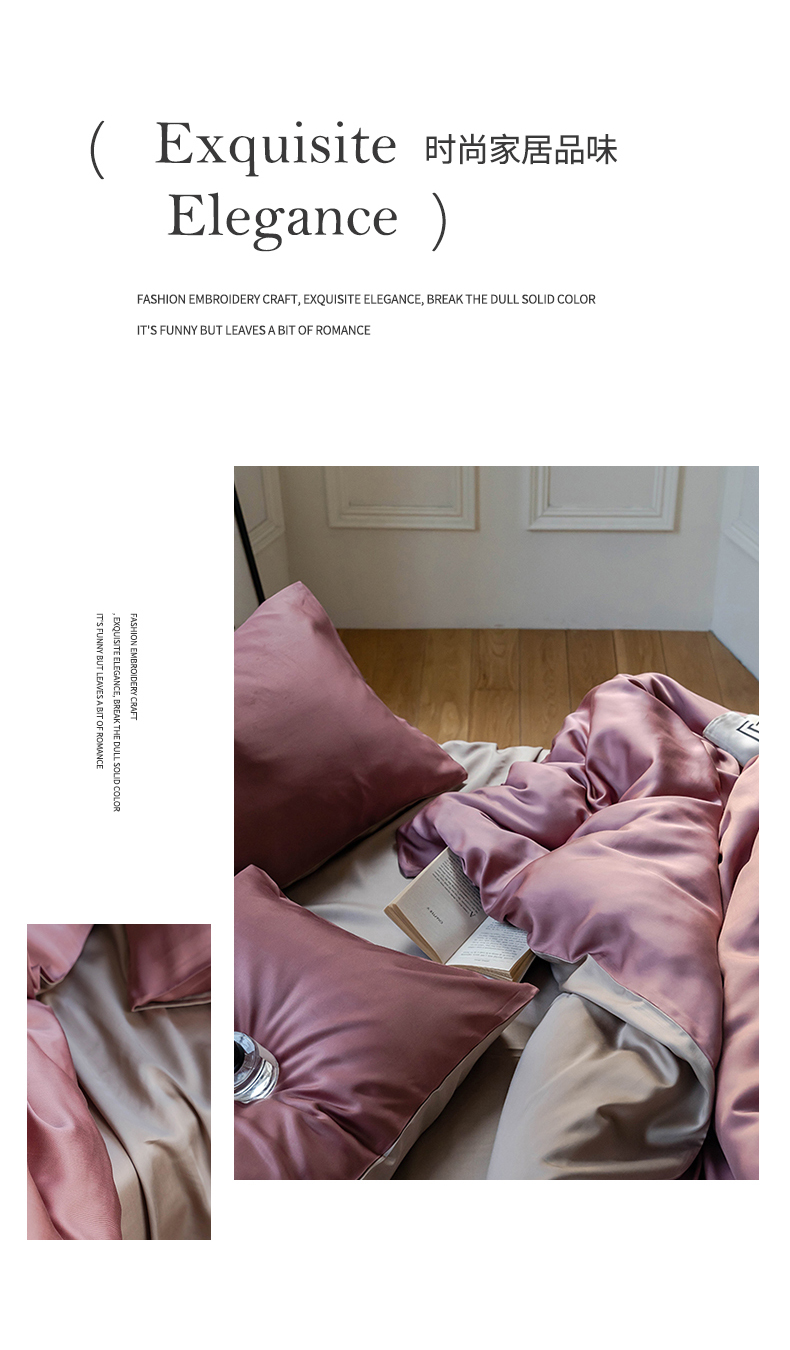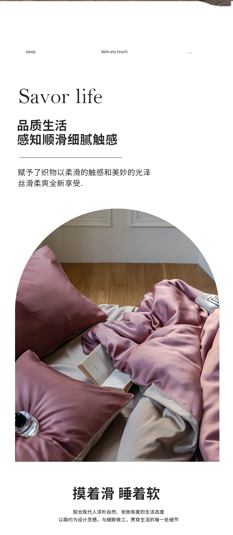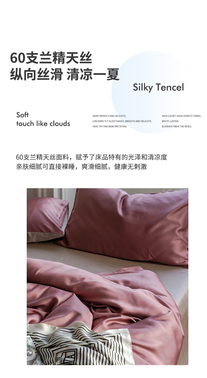 商品名称:浩情国际婚庆供货中心 2026新款60支奥地利兰精天丝纯色双拼系列四件套 野樱莓-芋泥灰
