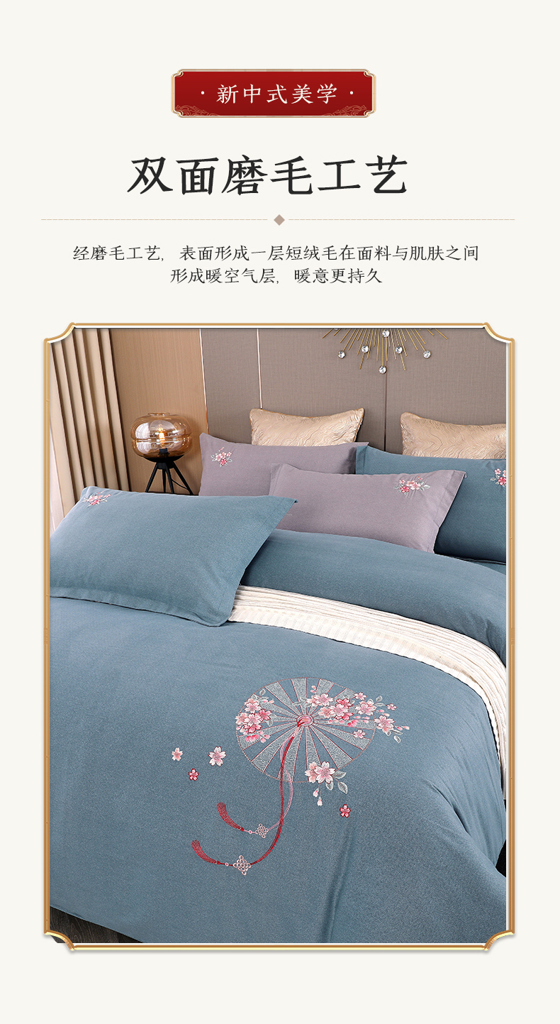 (总)浩情国际婚庆供货中心 2026新品-100支全棉长绒棉磨毛高端刺绣系列四件套,轻曼-豆沙,轻曼-湖兰,轻曼-米驼,轻曼-浅绿,轻曼-浅玉,轻曼-银灰,山水情-豆沙,山水情-粉玉,山水情-湖兰,山水情-米驼,山水情-浅灰,山水情-水兰