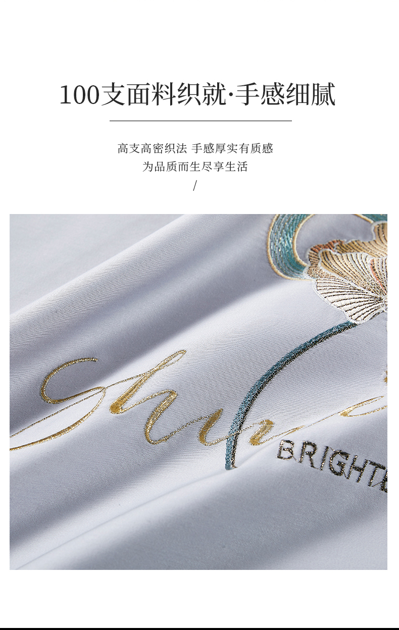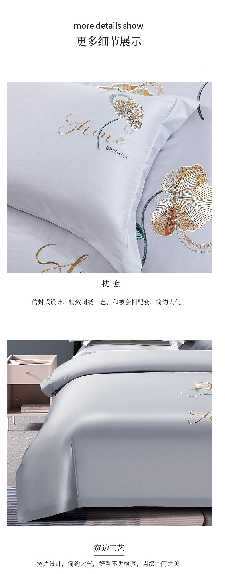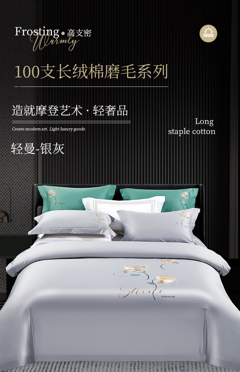 商品名称:浩情国际婚庆供货中心 2026新品-100支全棉长绒棉磨毛高端刺绣系列四件套 轻曼-银灰