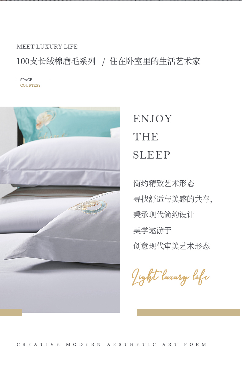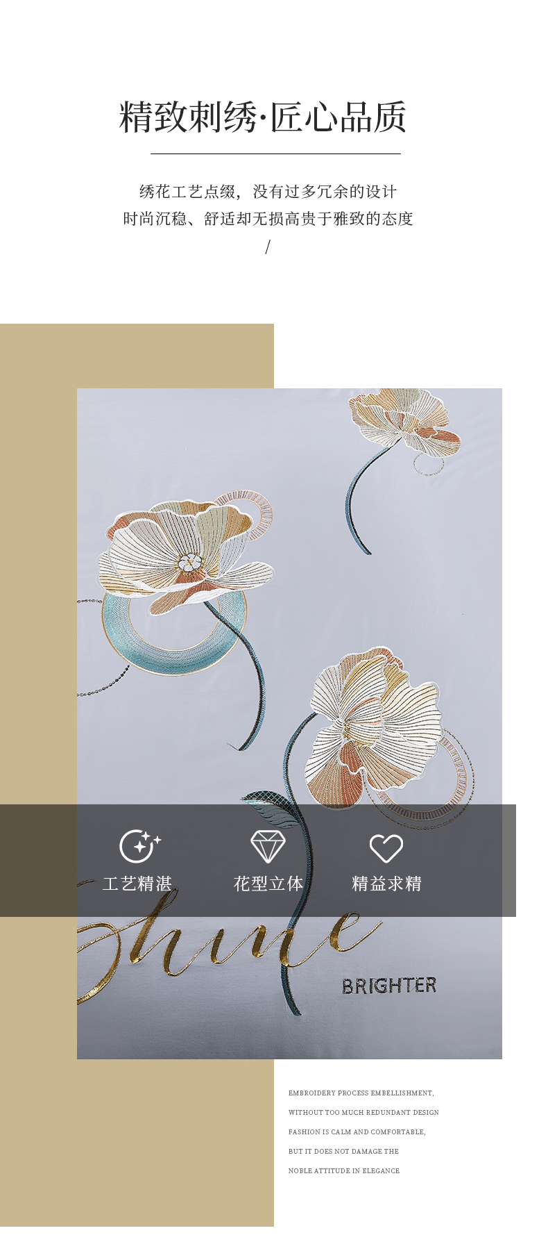 浩情国际婚庆供货中心 2026新品-100支全棉长绒棉磨毛高端刺绣系列四件套 轻曼-银灰