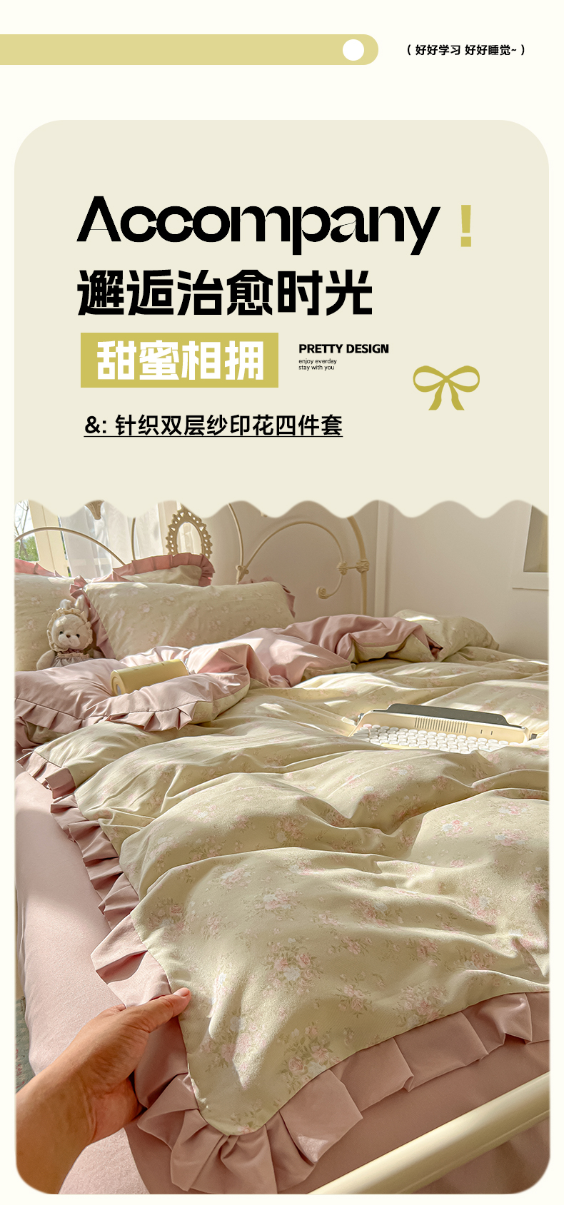 (总)韩巢家纺 2026新款花边款针织双层纱四件套