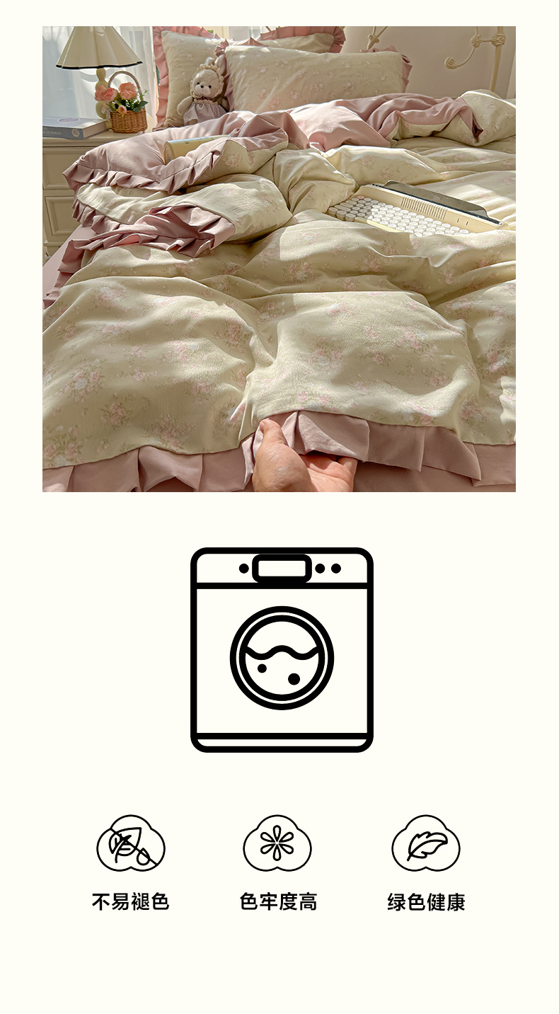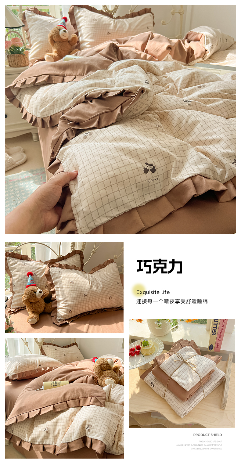 (总)韩巢家纺 2025新款水洗棉大花边被套四件套直播热销款学生宿舍被罩床单三件套(提供卖家秀),春日与玫瑰【大花边款】,繁花似梦【大花边款】,花时宇间【大花边款】,灰蒙小狗【大花边款】,久期诗朵-黄【大花边款】,可可腊肠犬【大花边款】,奶油樱桃【大花边款】,软糖猫【大花边款】,甜樱恋曲【大花边款】,温暖粉心【大花边款】,小花野-紫【大花边款】,小熊冰淇淋【大花边款】,星梦蝶结【大花边款】,幸运可爱兔【大花边款】,摘樱桃的小熊【大花边款】