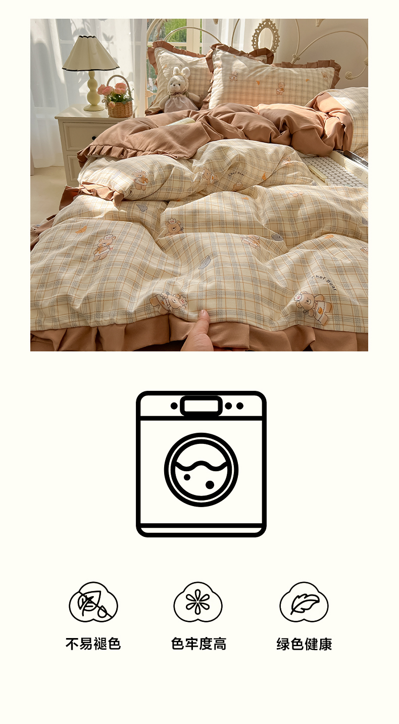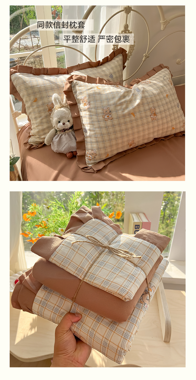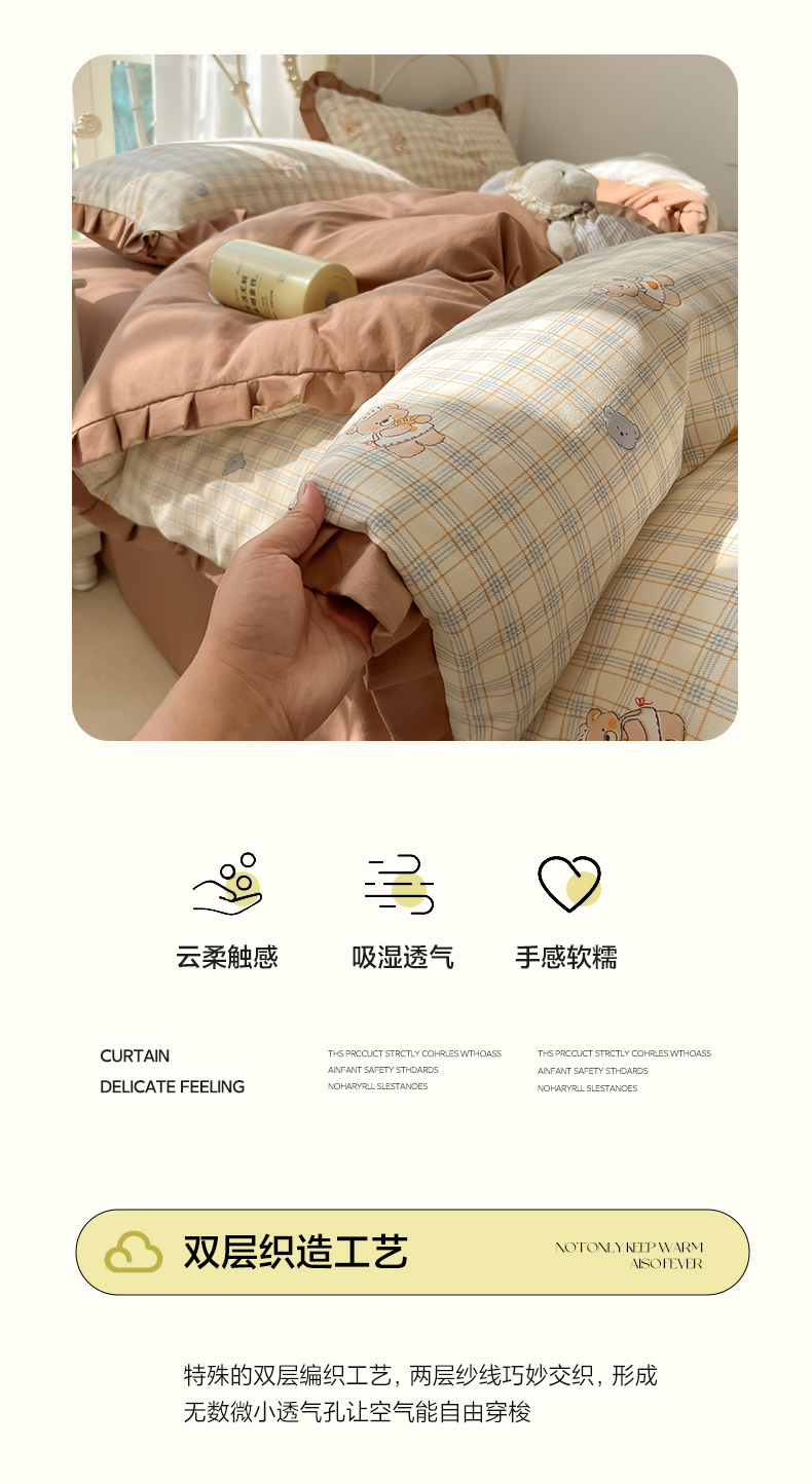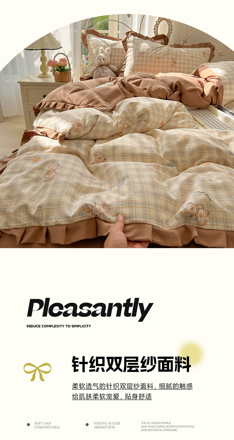 当前位置: 91家纺网 > 商品网购 > 床品套件 > 四件套 > 双层纱四件套 > 韩巢家纺 2026新款花边款针织双层纱四件套 熊先生