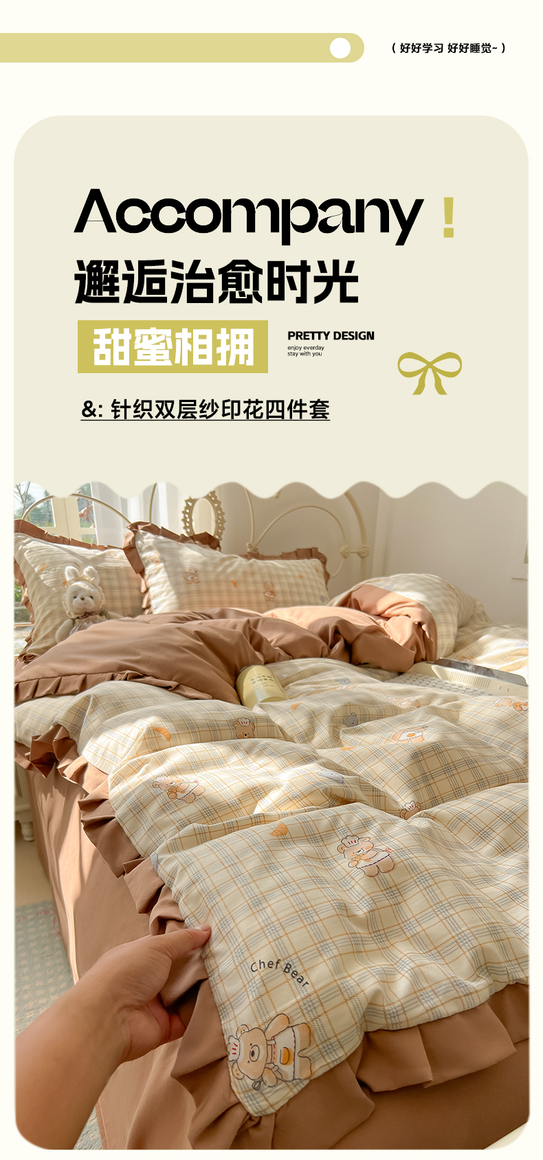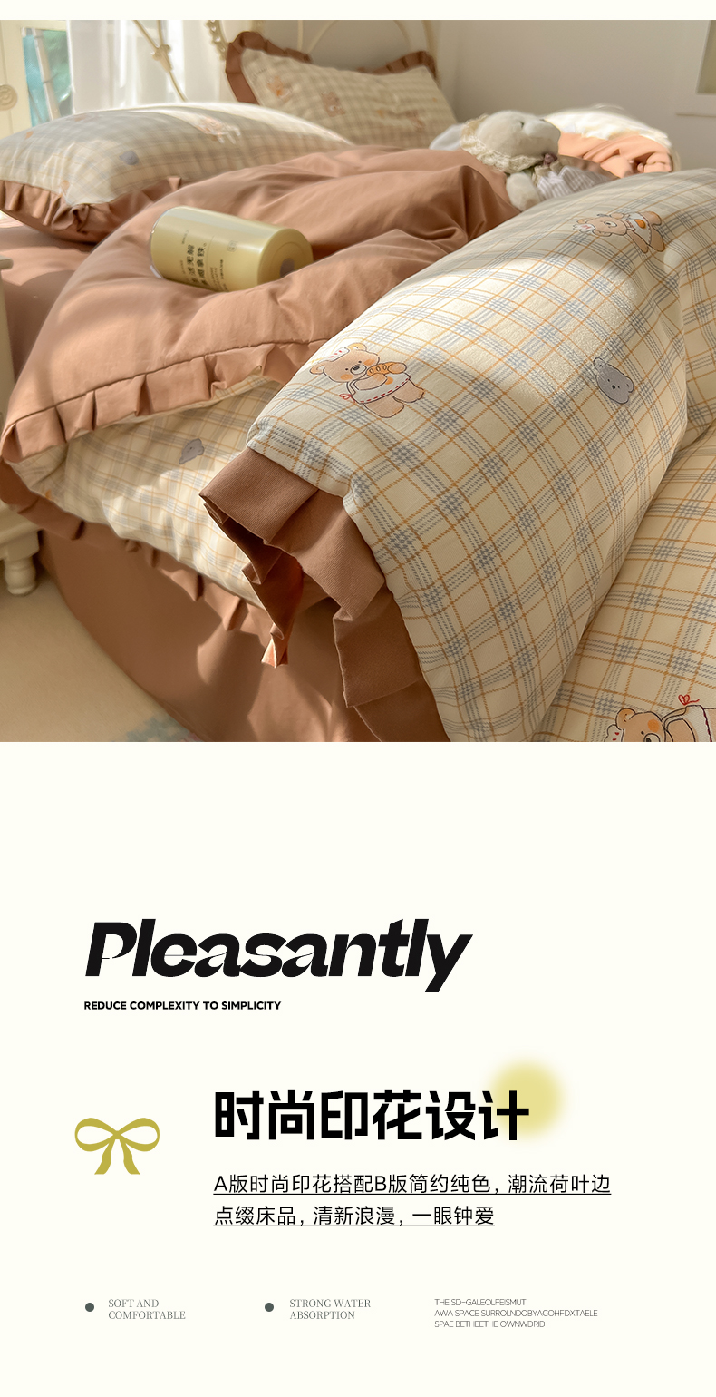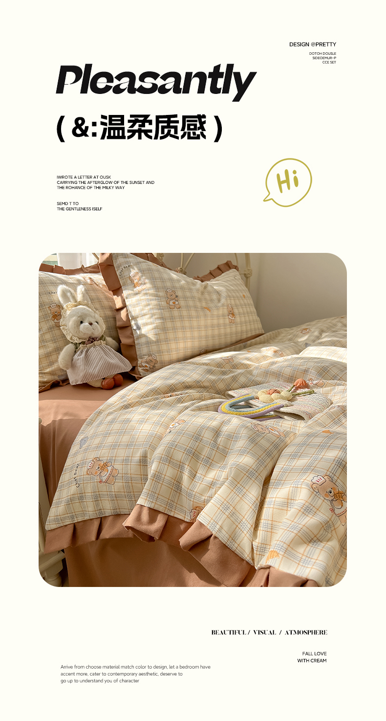 当前位置: 91家纺网 > 商品网购 > 床品套件 > 四件套 > 双层纱四件套 > 韩巢家纺 2026新款花边款针织双层纱四件套 熊先生