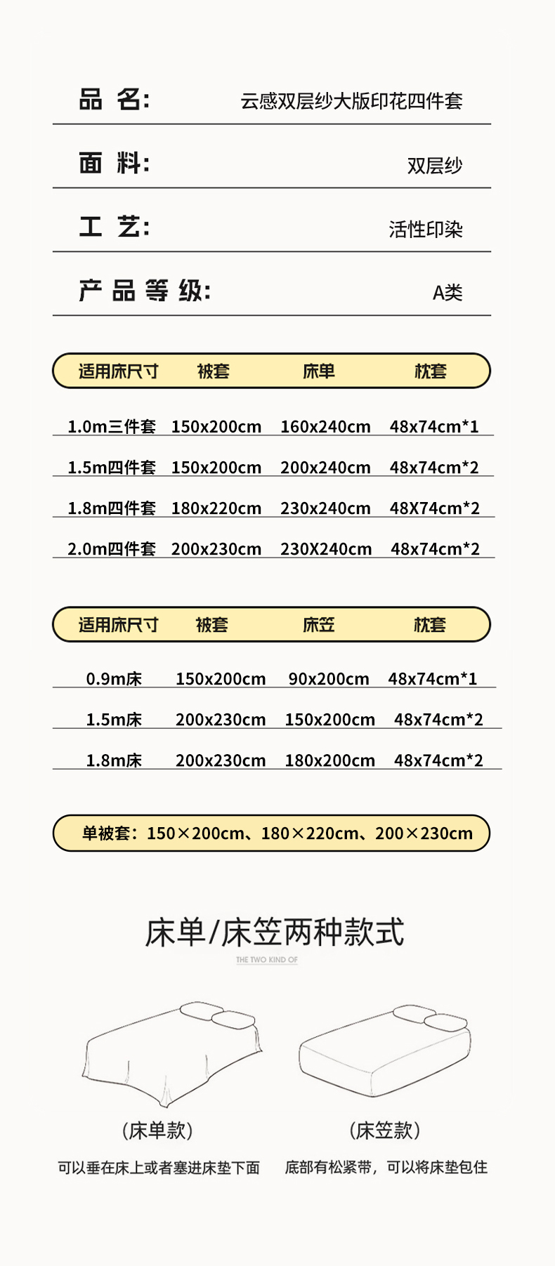 0.9m床笠三件套被套150*200 | ¥48.00 |