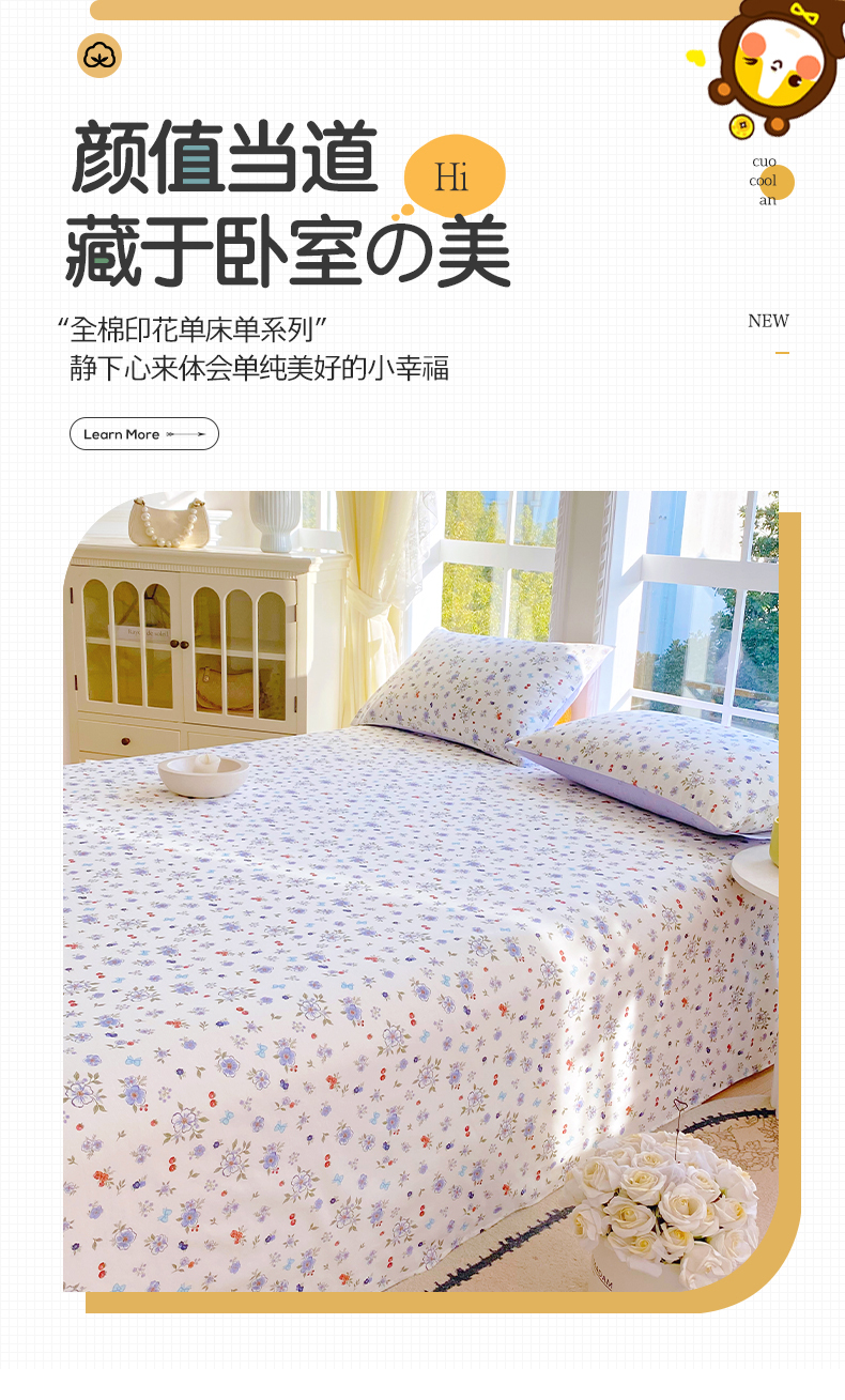 (总)小懒猪 2026全棉纯棉印花单床单床单单件,铂格纹,粉喵甜梦,蓝调喵趣,蓝灰格絮,蓝絮银织,柳色衫林,漫彩花韵,淡紫花屹,喵语时光,墨旋,沐风苍兰,青蔓花盏,清棱,森屹兔眠,素环影,素律,童梦汪旅,雾蓝花簇,线影轻痕,星兔软糖,元气熊仔,紫粉花漾
