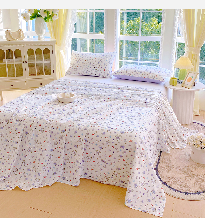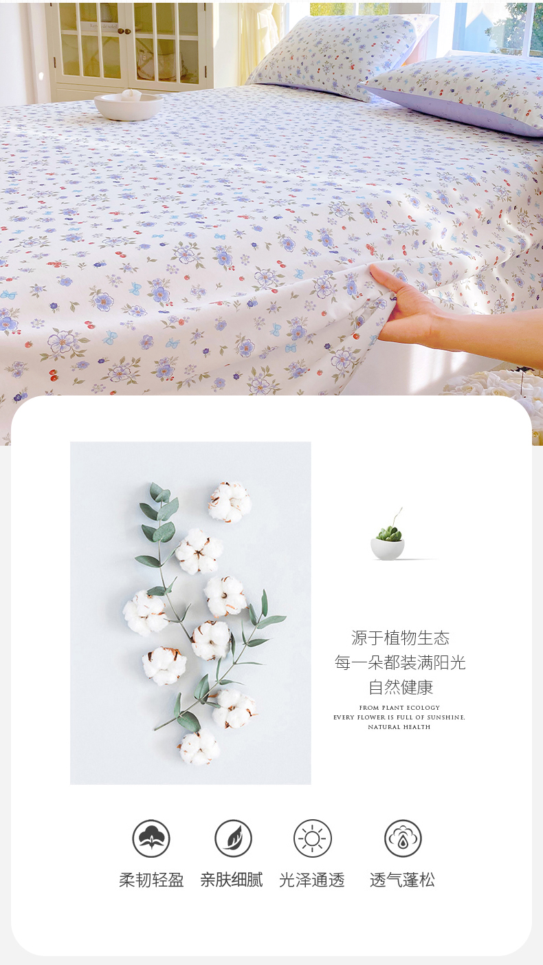 小懒猪 2026全棉纯棉印花单床单床单单件 雾蓝花簇