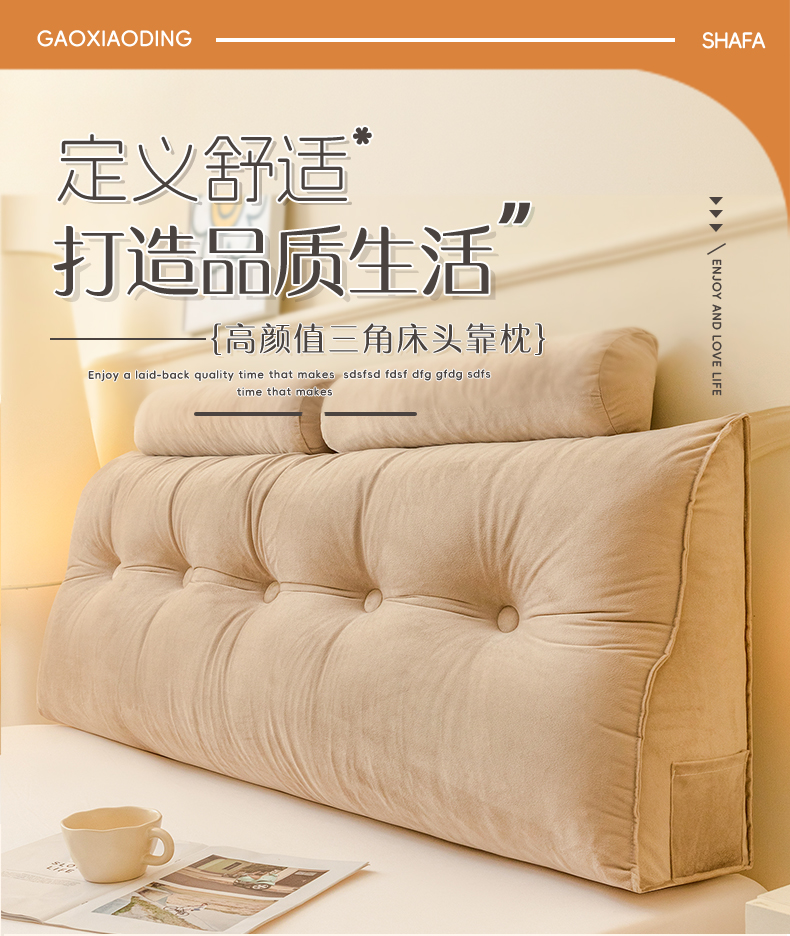 (总)碧尔家居 2025新款床头靠垫三角床上靠枕卧室榻榻米软包双人大靠背免拆洗,米黄,浅粉,浅蓝,深灰,银灰