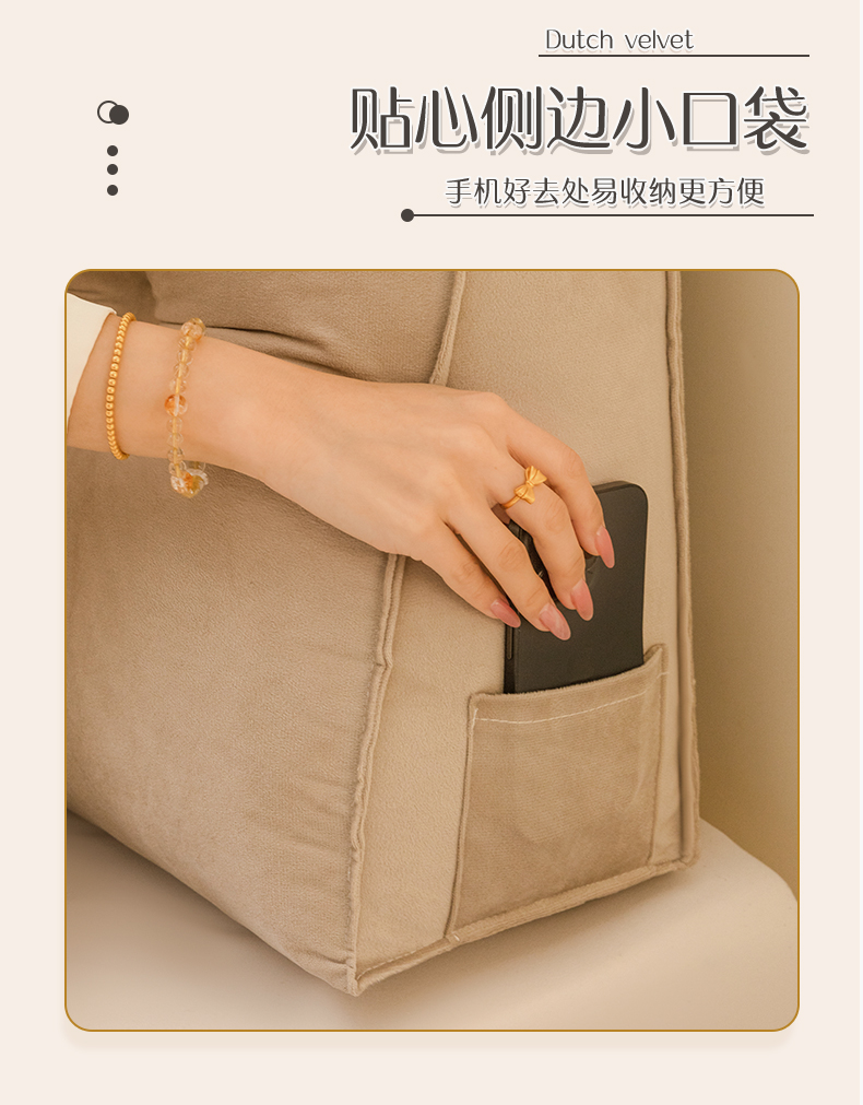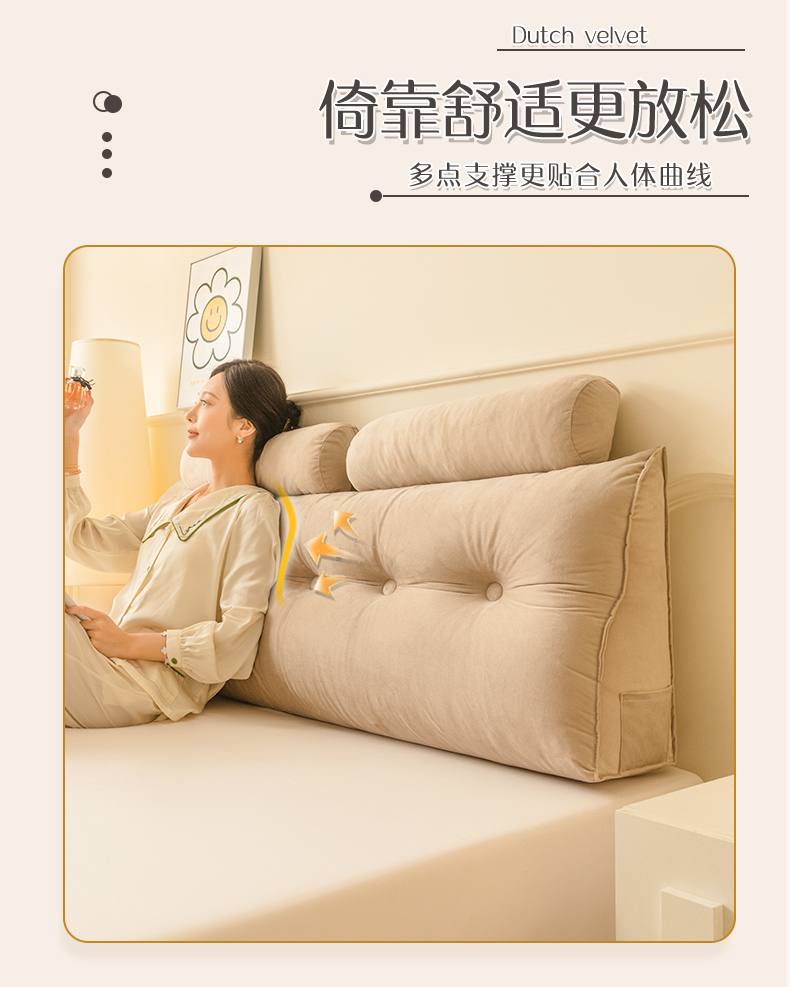商品名称:碧尔家居 2025新款荷兰绒弯型三角+头枕床头靠背 奶咖
