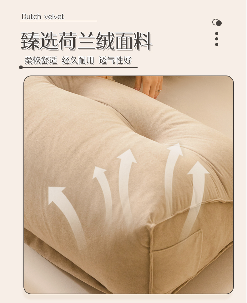(总)碧尔家居 2025新款荷兰绒弯型三角+头枕床头靠背,奶咖,天蓝,香槟,樱花粉