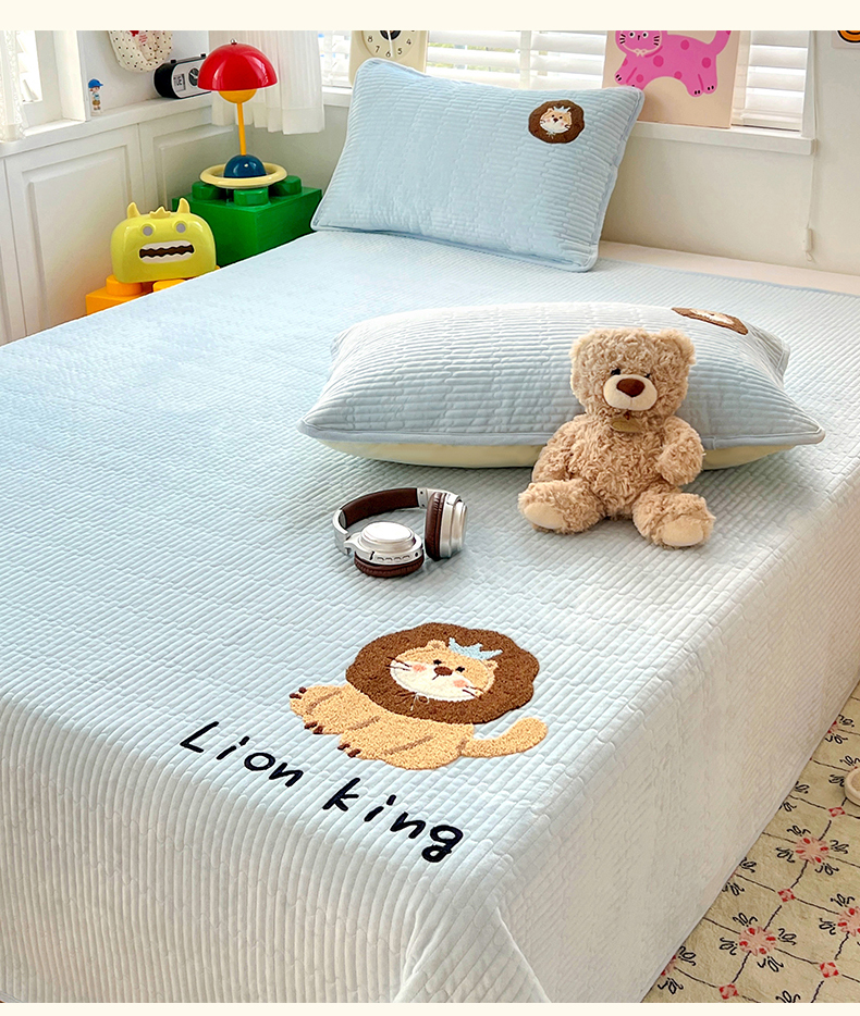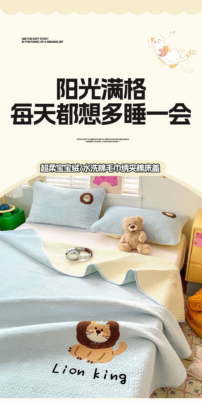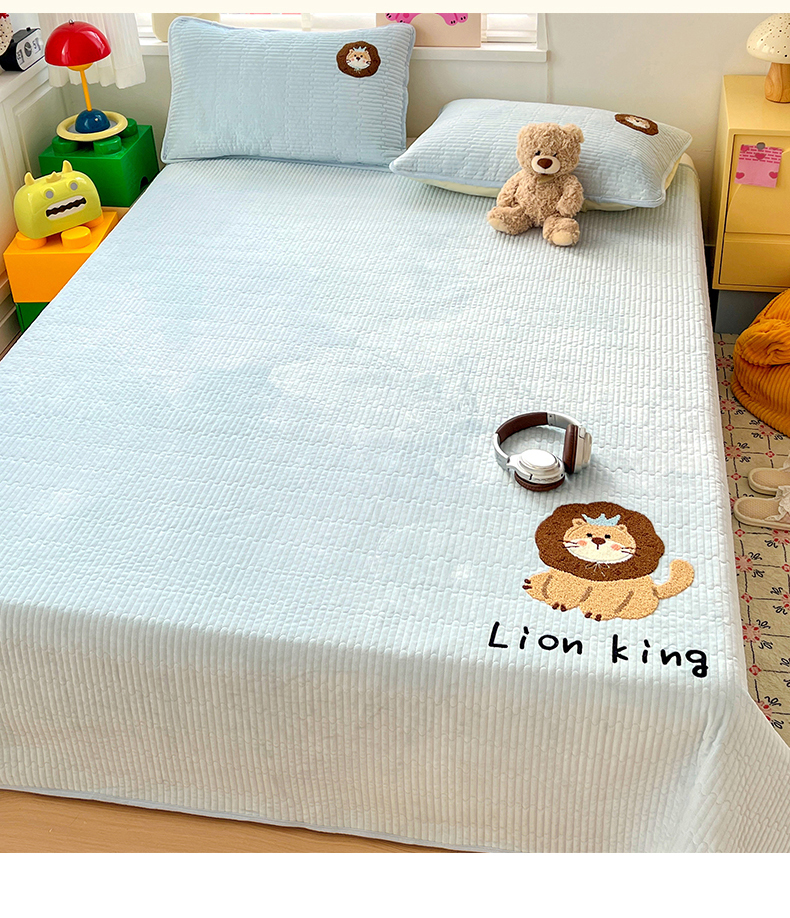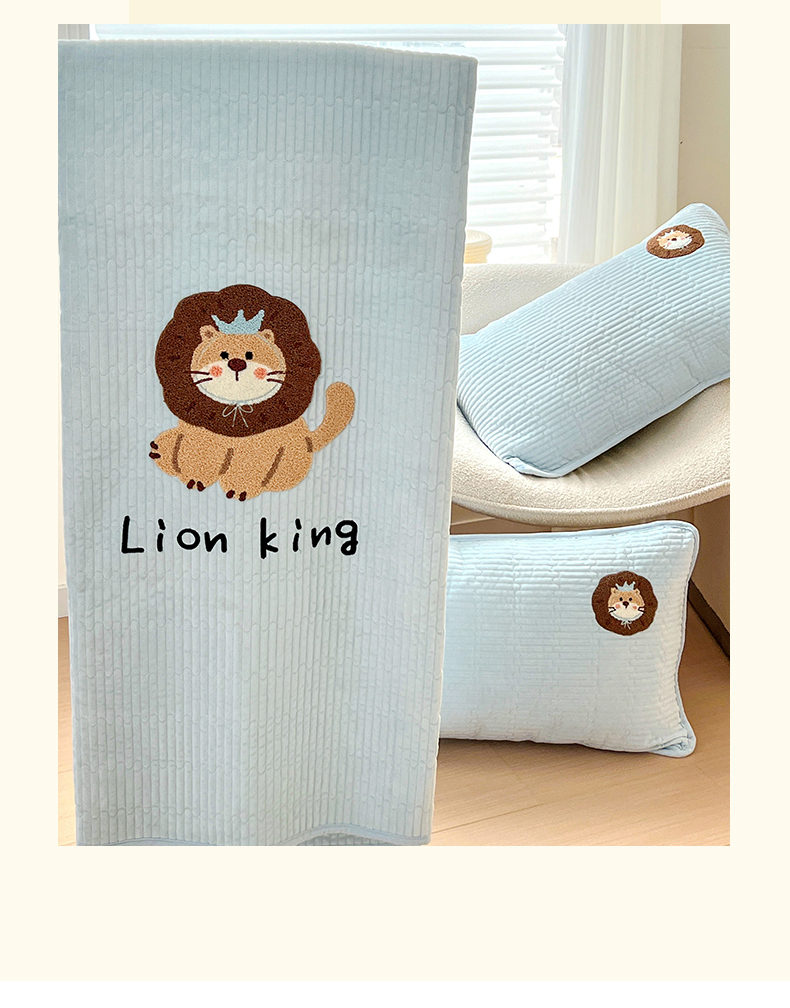 鑫喜莱家纺 2025新款原创宝宝绒毛巾绣床盖三件套单床盖床垫单件床盖 狮子王