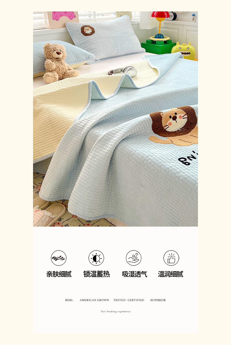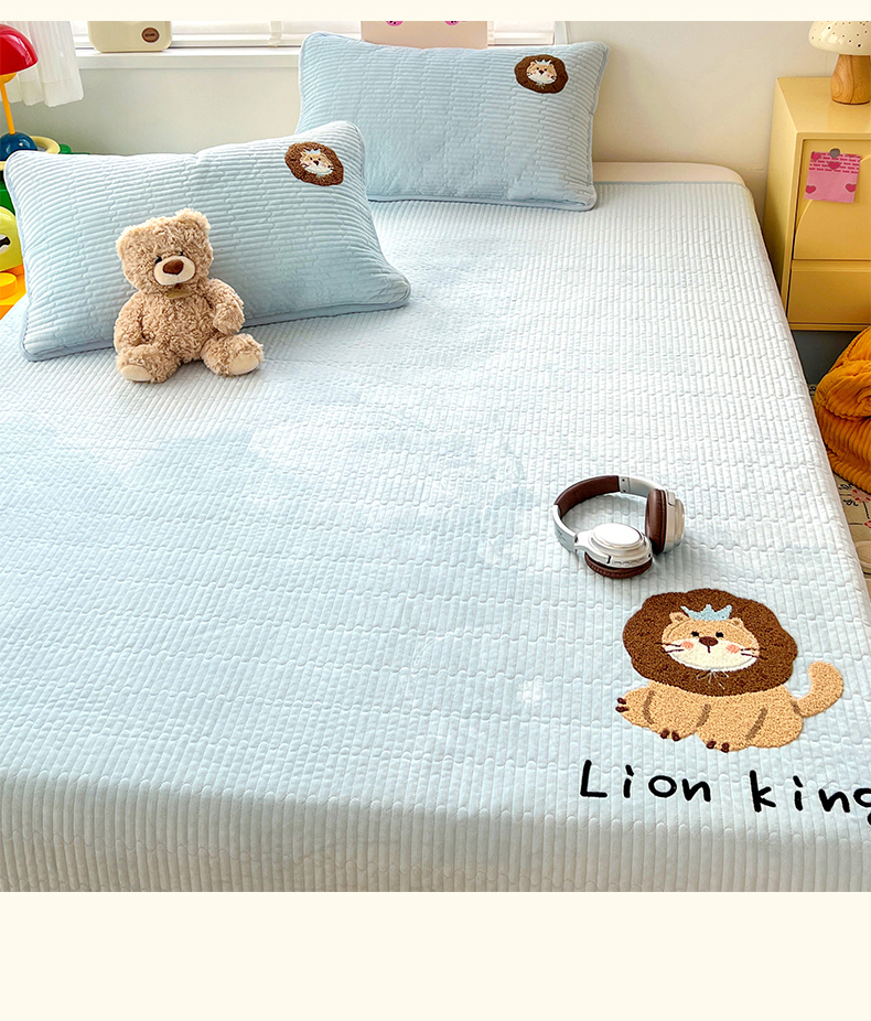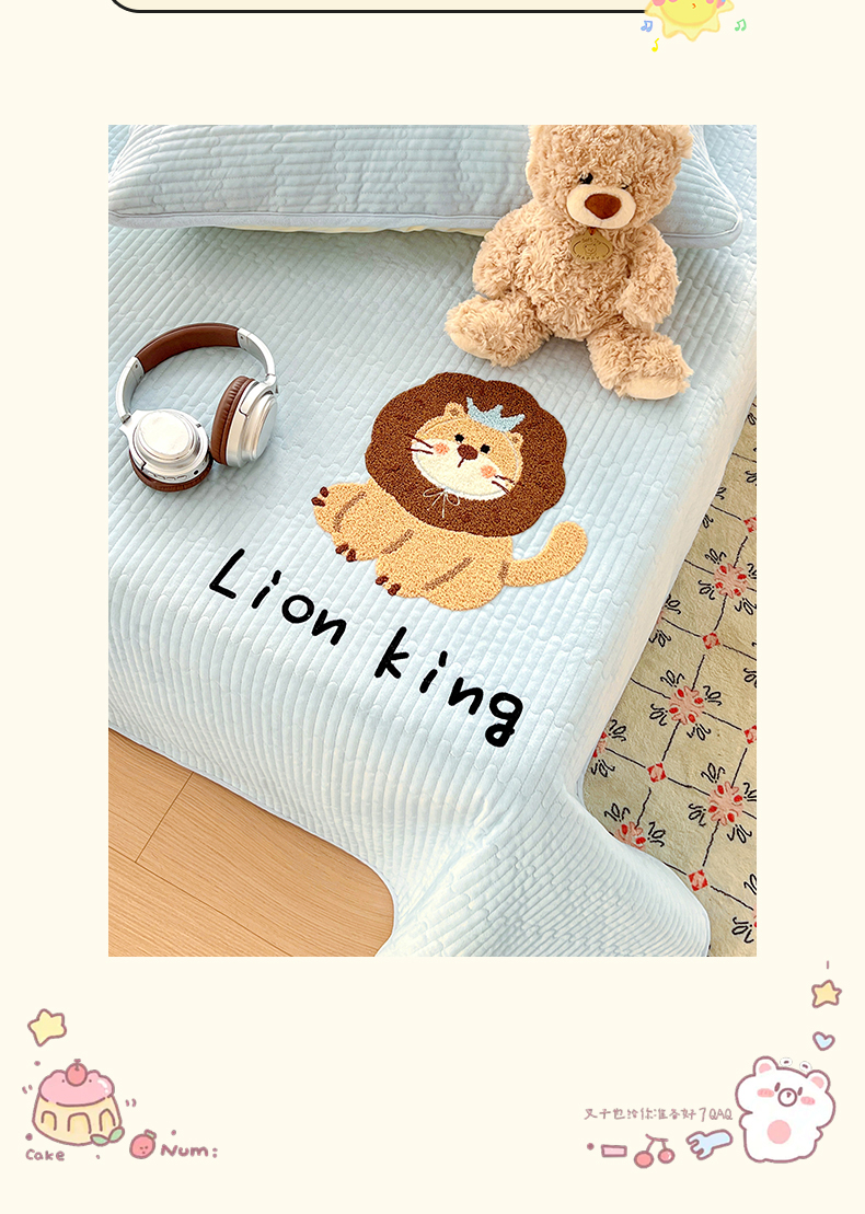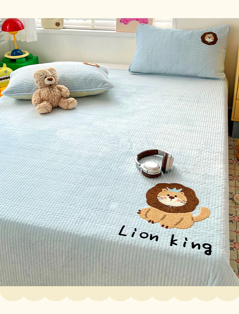 鑫喜莱家纺 2025新款原创宝宝绒毛巾绣床盖三件套单床盖床垫单件床盖 狮子王