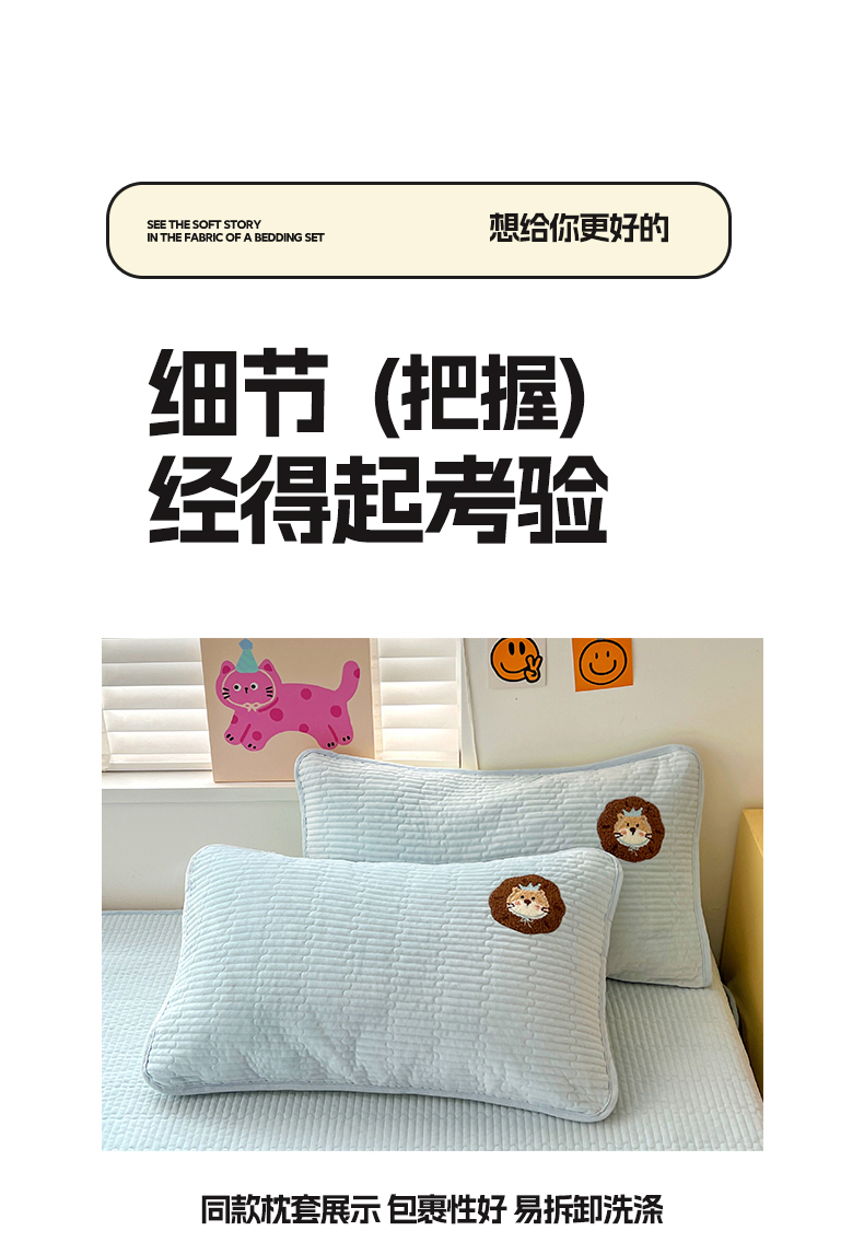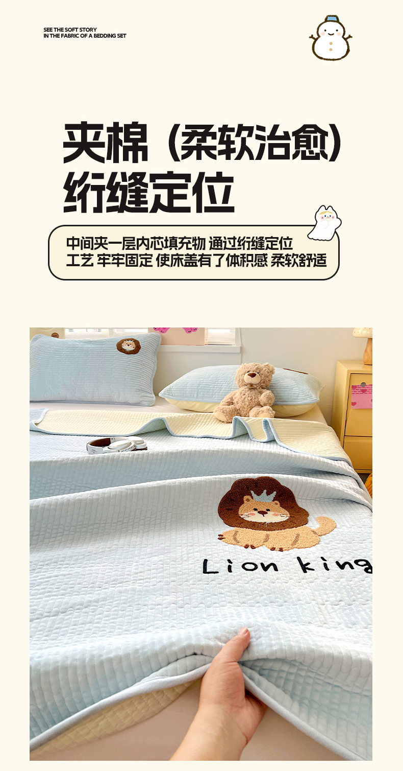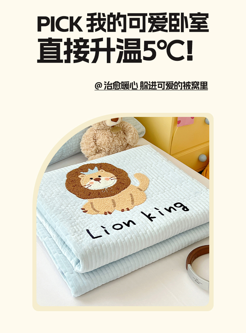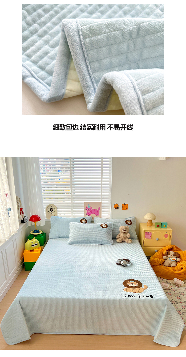 • 91家纺网 家纺一手货源 找家纺 鑫喜莱家纺 2025新款原创宝宝绒毛巾绣床盖三件套单床盖床垫单件床盖 狮子王