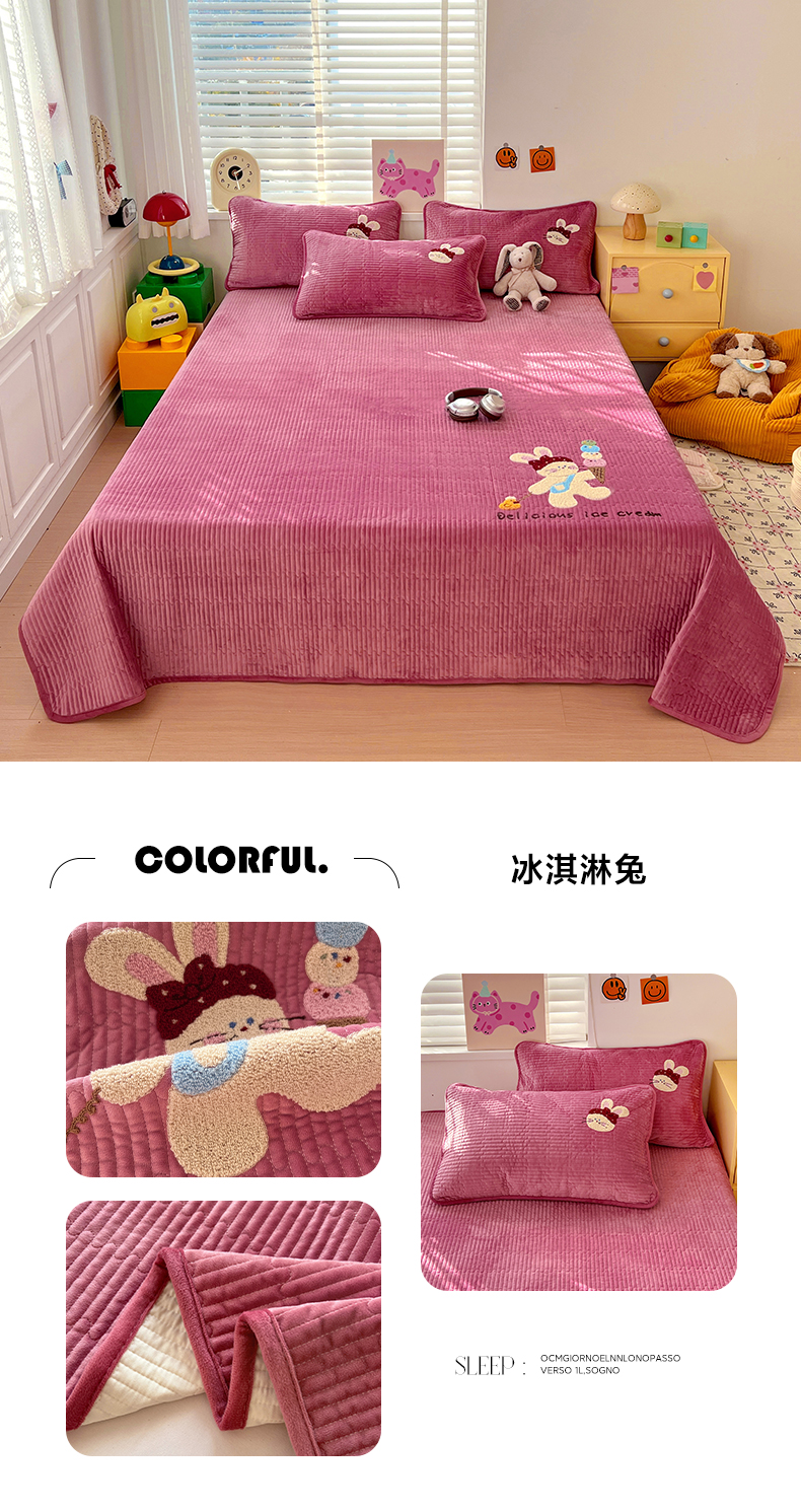 (总)鑫喜莱家纺 2025新款A版纯棉B版牛奶绒床盖毛巾绣系列单件床褥垫软床垫床盖,卡米熊和伙伴,恐龙呆呆,萝卜兔,梦幻小马,小猫伙伴,樱桃小兔,组合图仅供展示不可下单