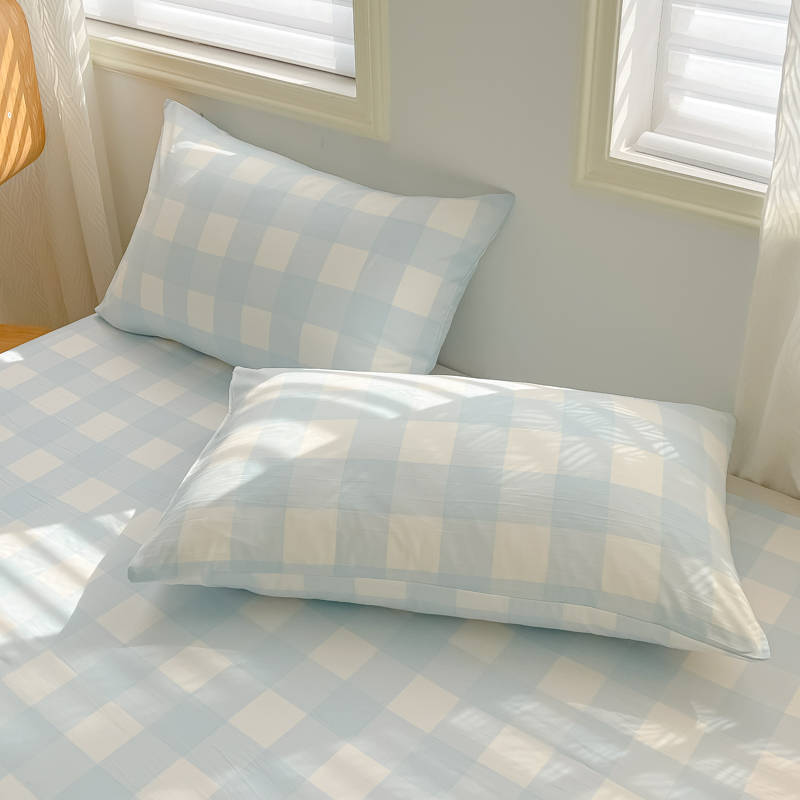 商品名称:温眠家纺 2025新款水洗棉色织单床单系列-单枕套 典雅格-蓝