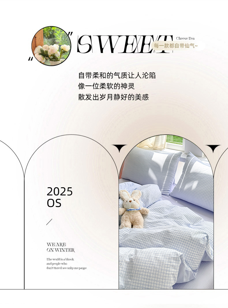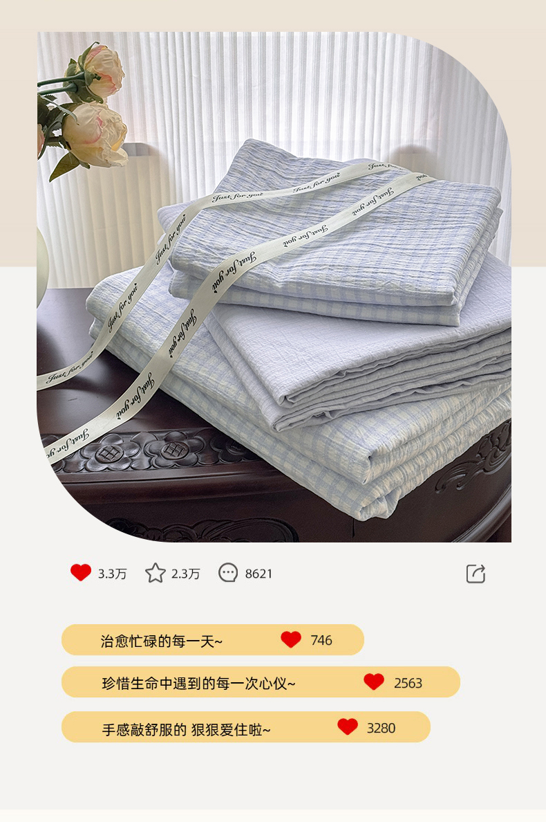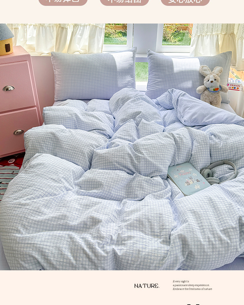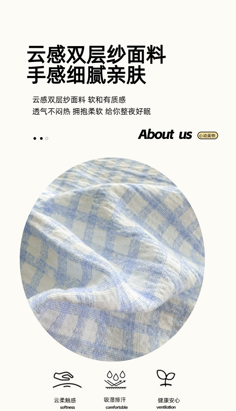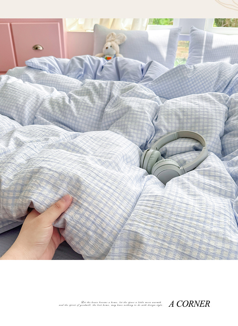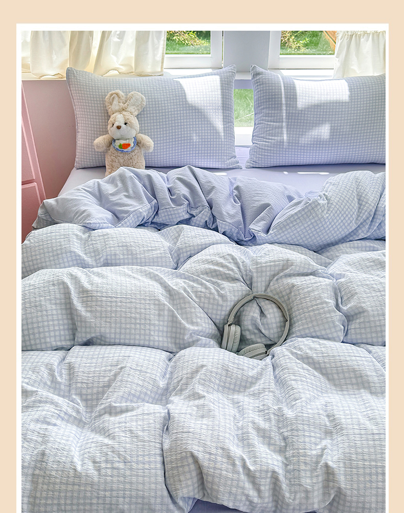 当前位置: 91家纺网 > 商品网购 > 床品套件 > 四件套 > 双层纱四件套 > 温眠家纺 2025新款云感针织双层纱四件套 蓝小格