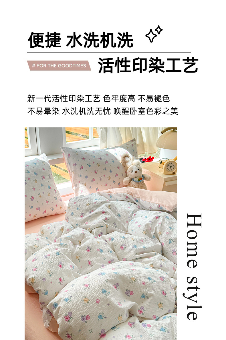 当前位置: 91家纺网 > 商品网购 > 床品套件 > 四件套 > 双层纱四件套 > 温眠家纺 2025新款活性印染云感针织双层纱四件套 春之语