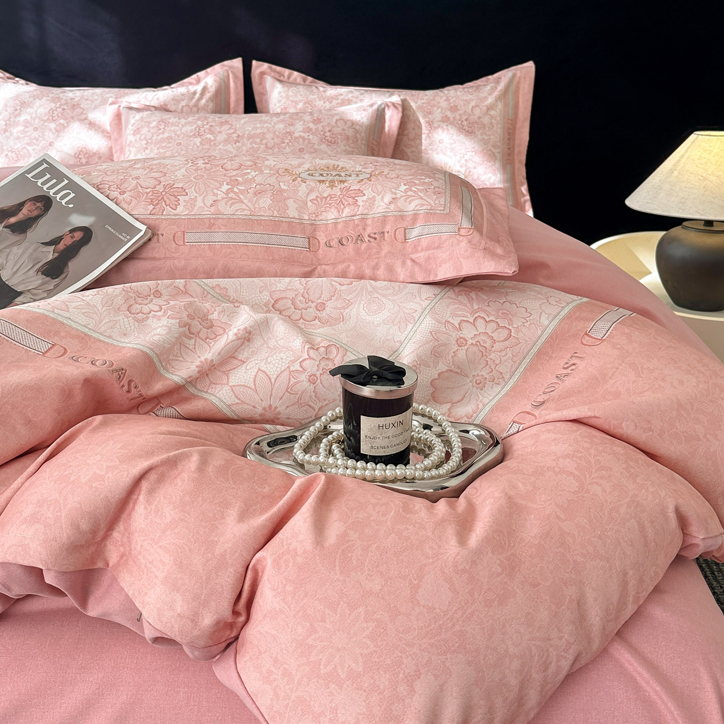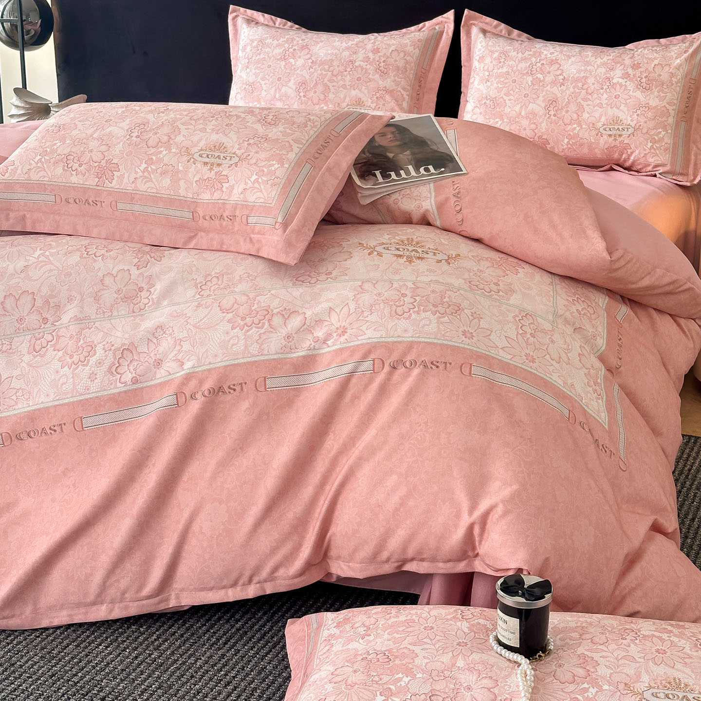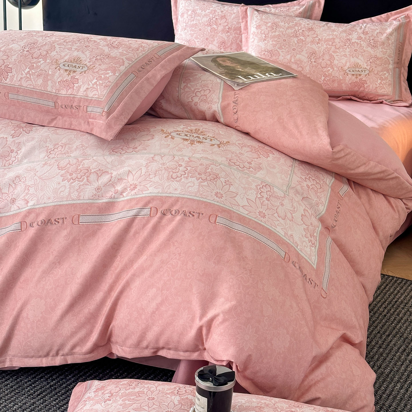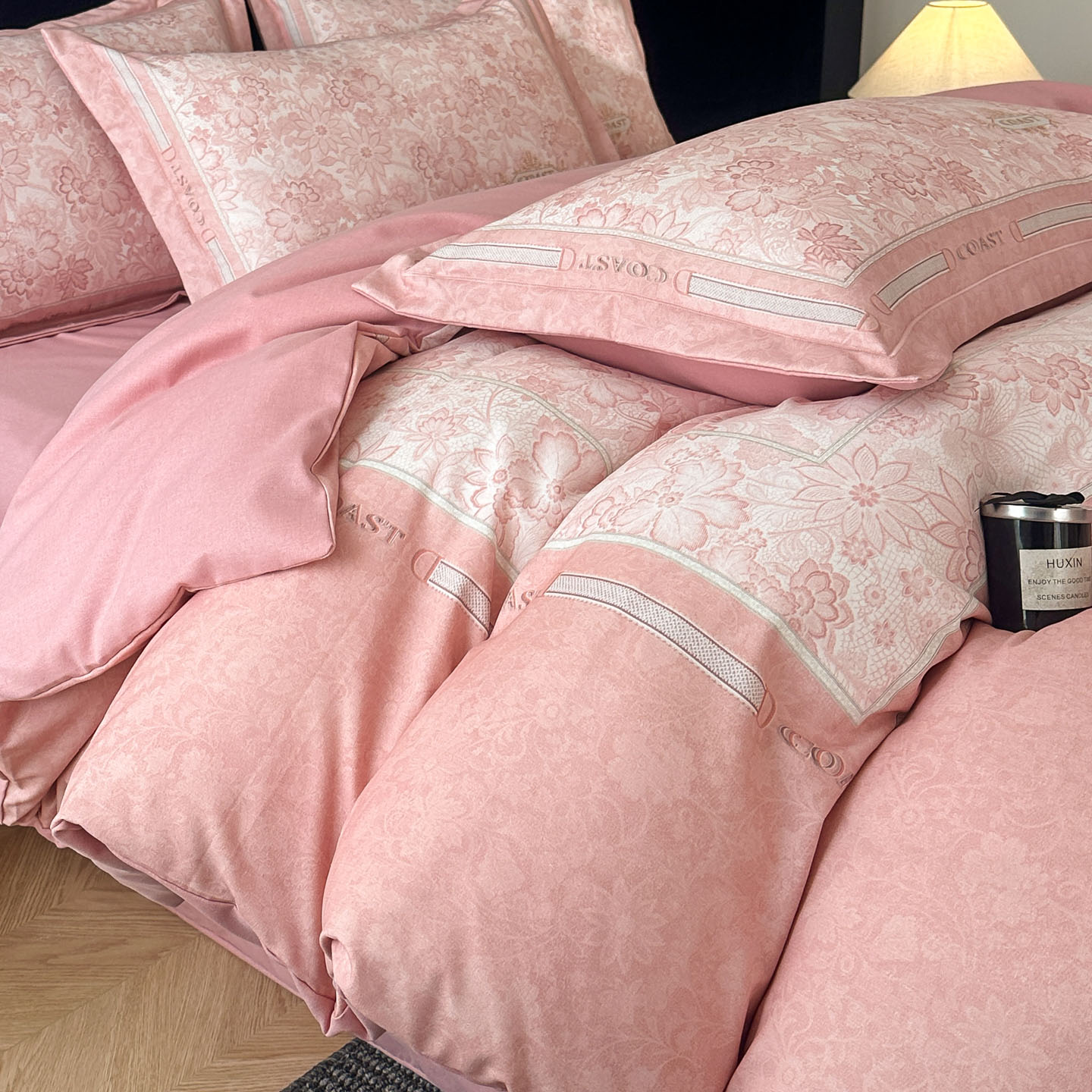 喜四方 2026年新款加厚全棉印花加绣花四件套 花样年华-粉