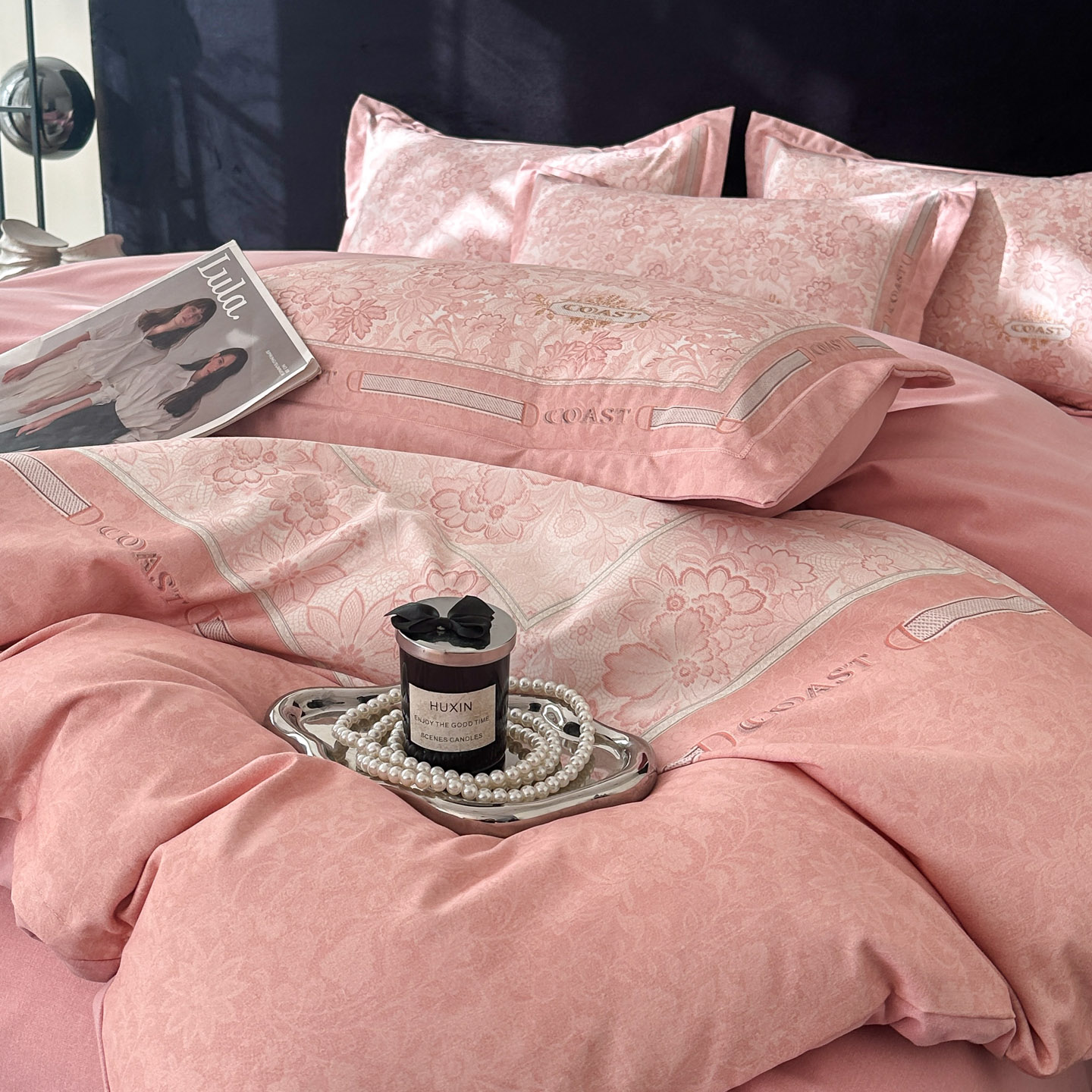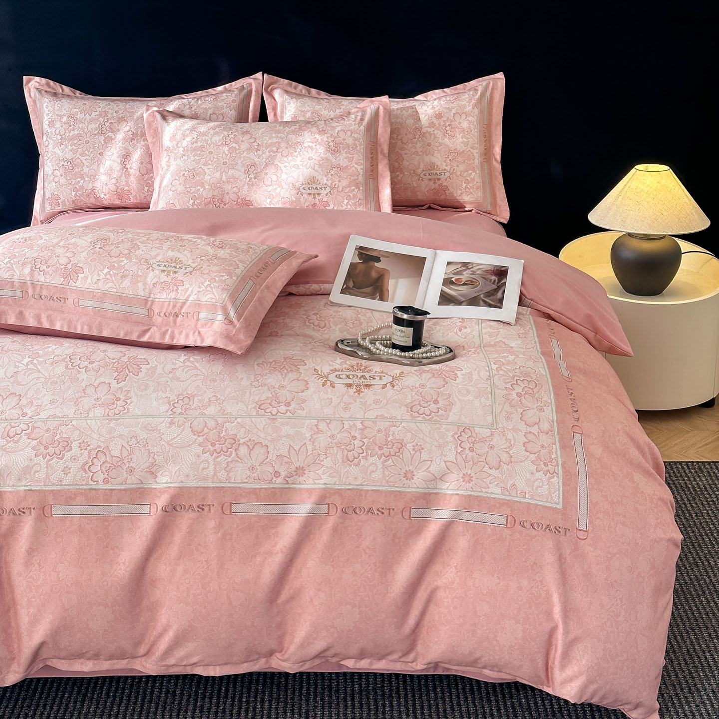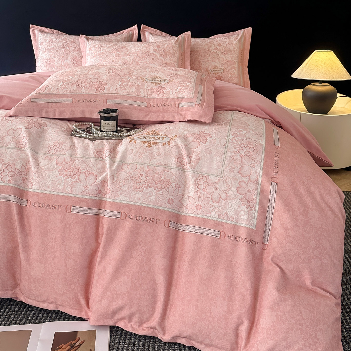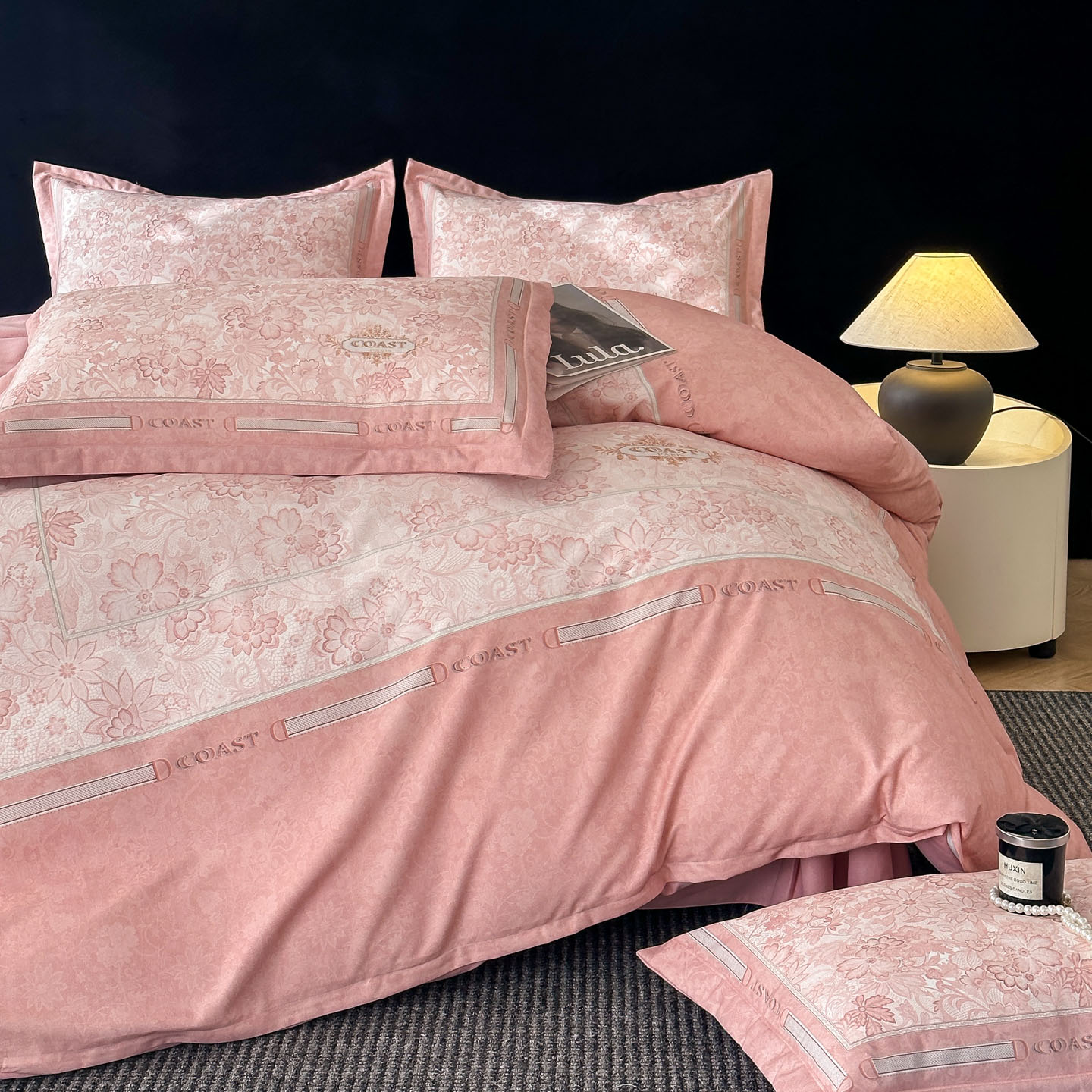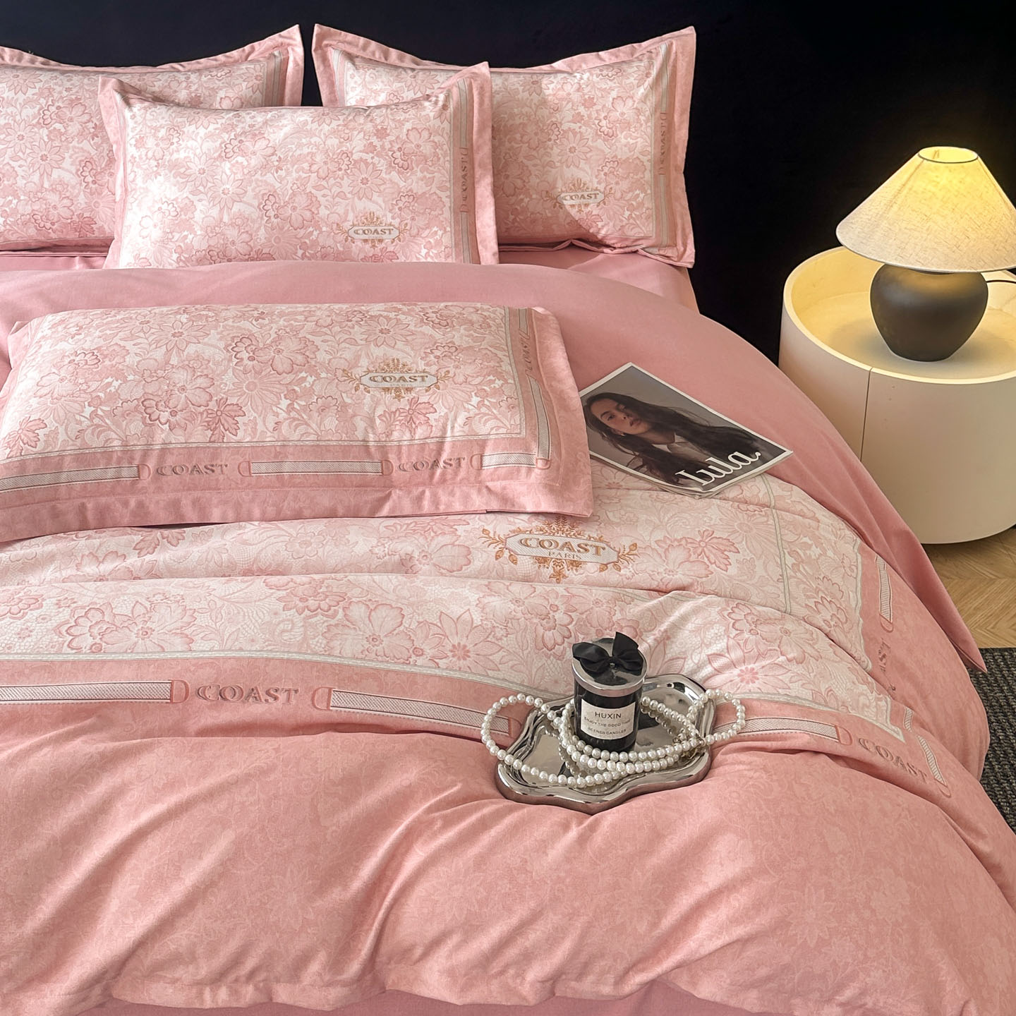喜四方 2026年新款加厚全棉印花加绣花四件套 花样年华-粉