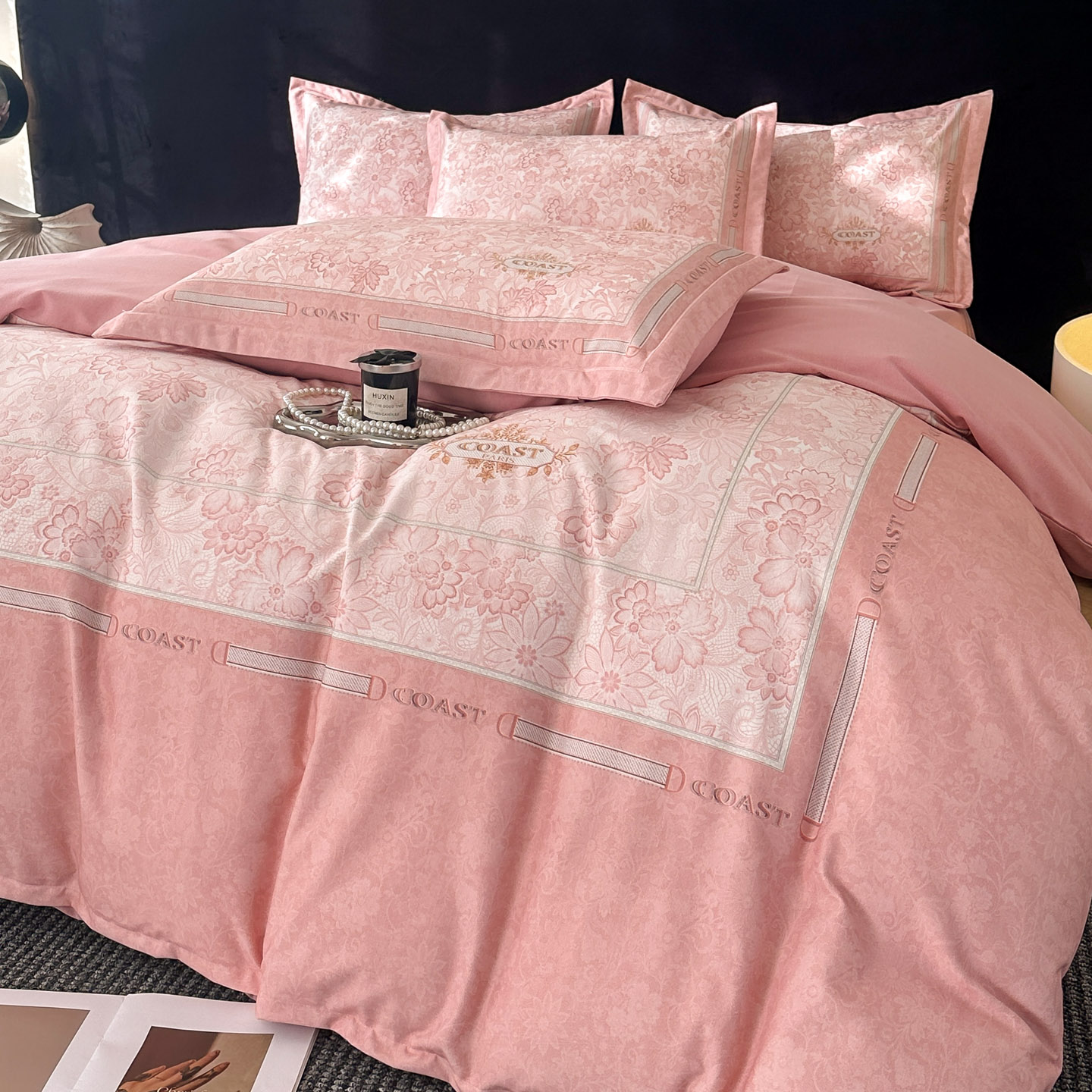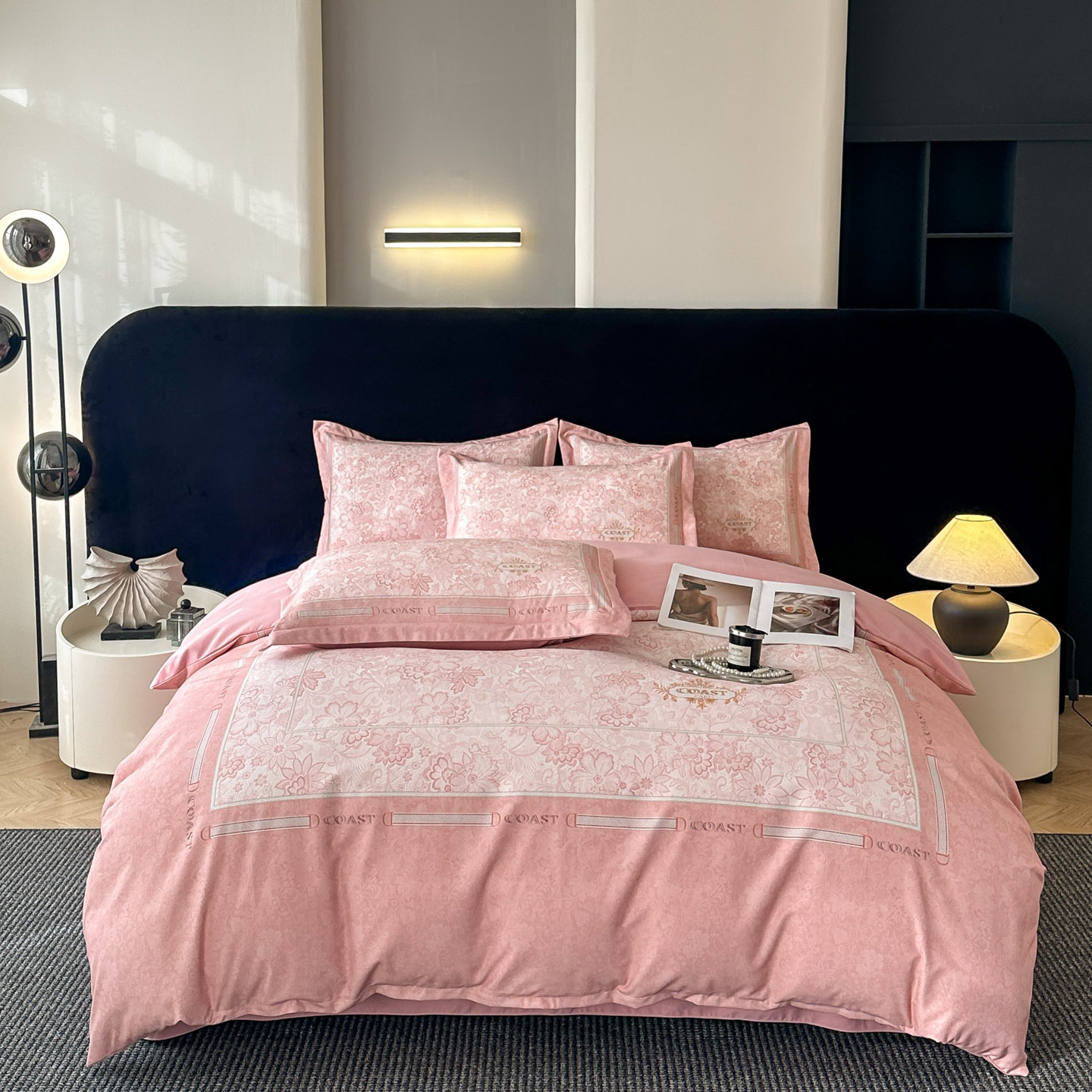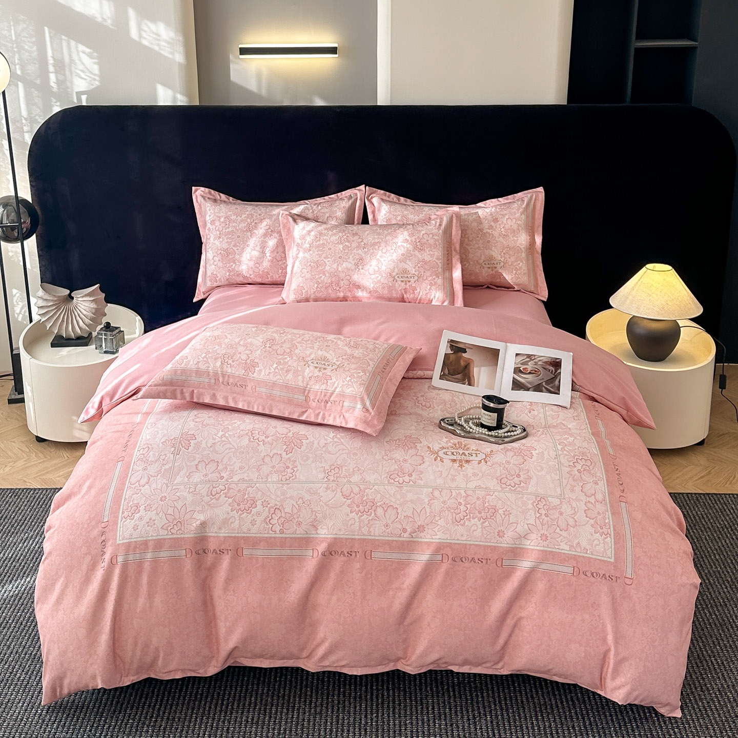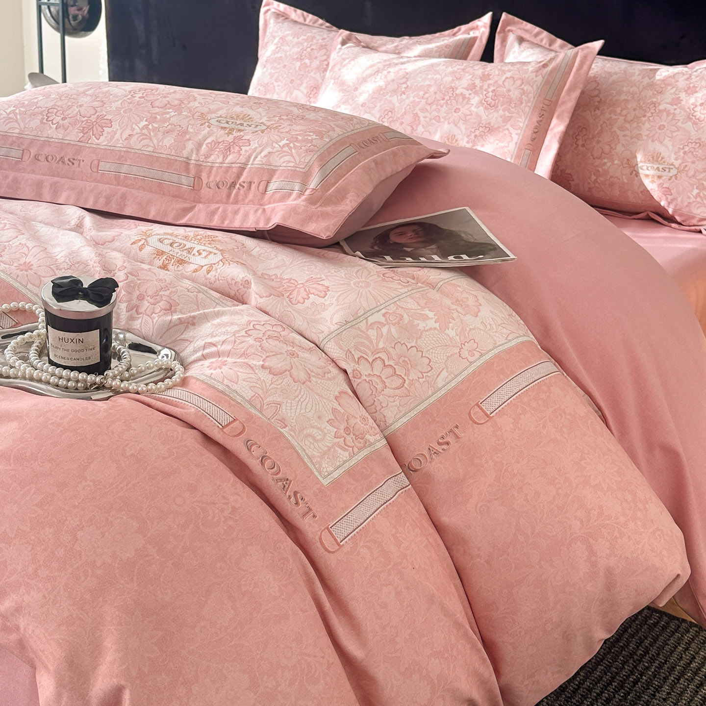 喜四方 2026年新款加厚全棉印花加绣花四件套 花样年华-粉
