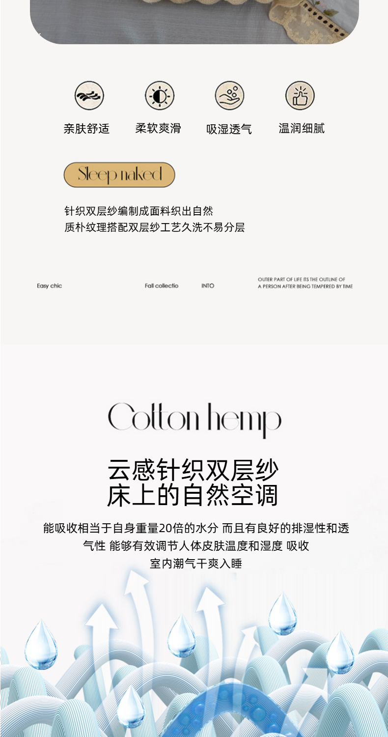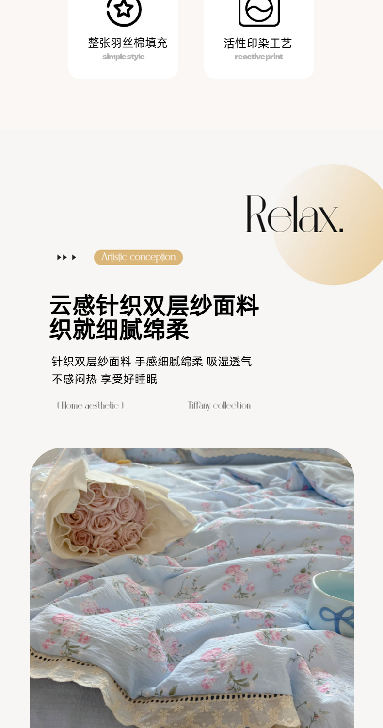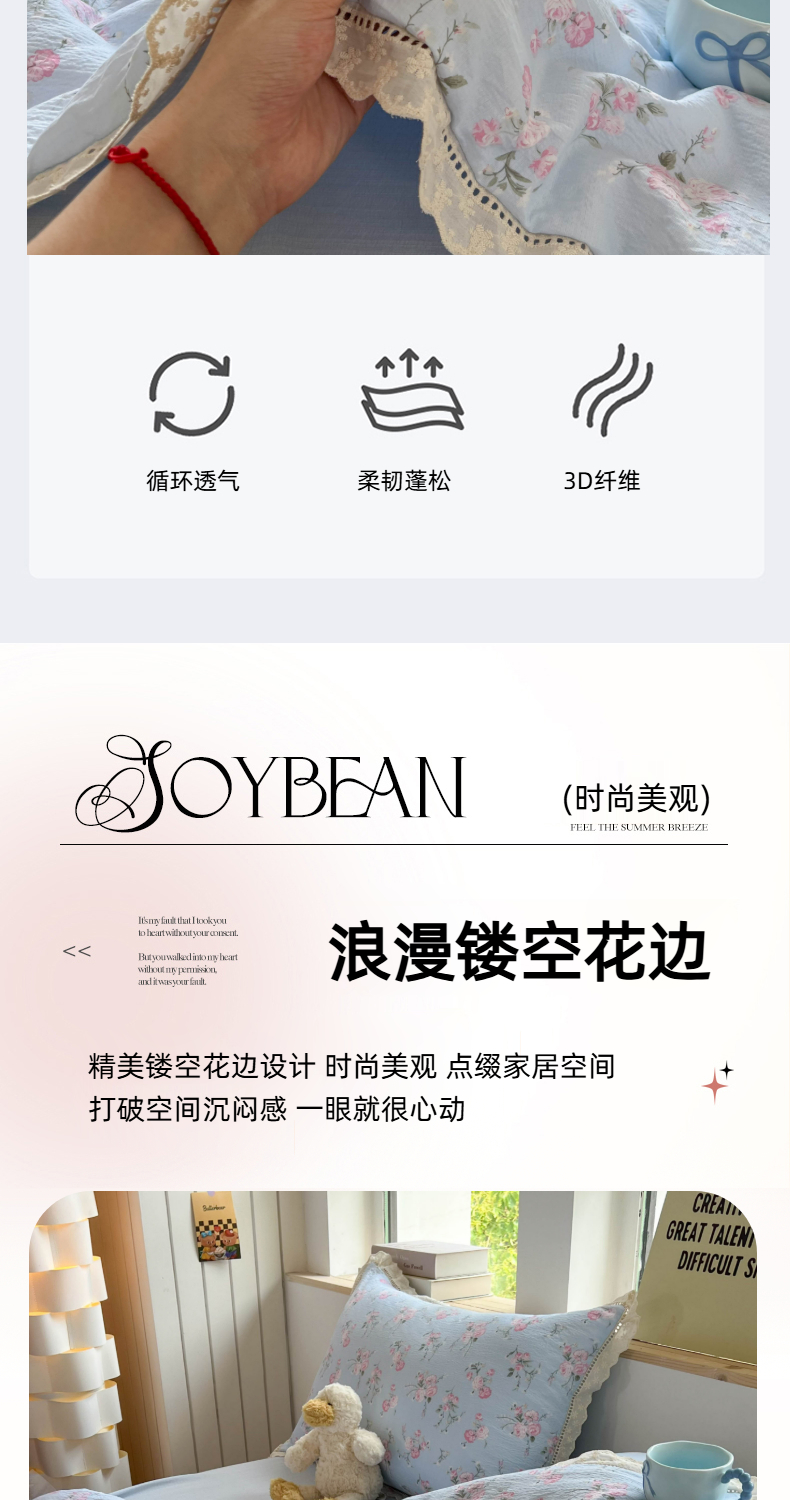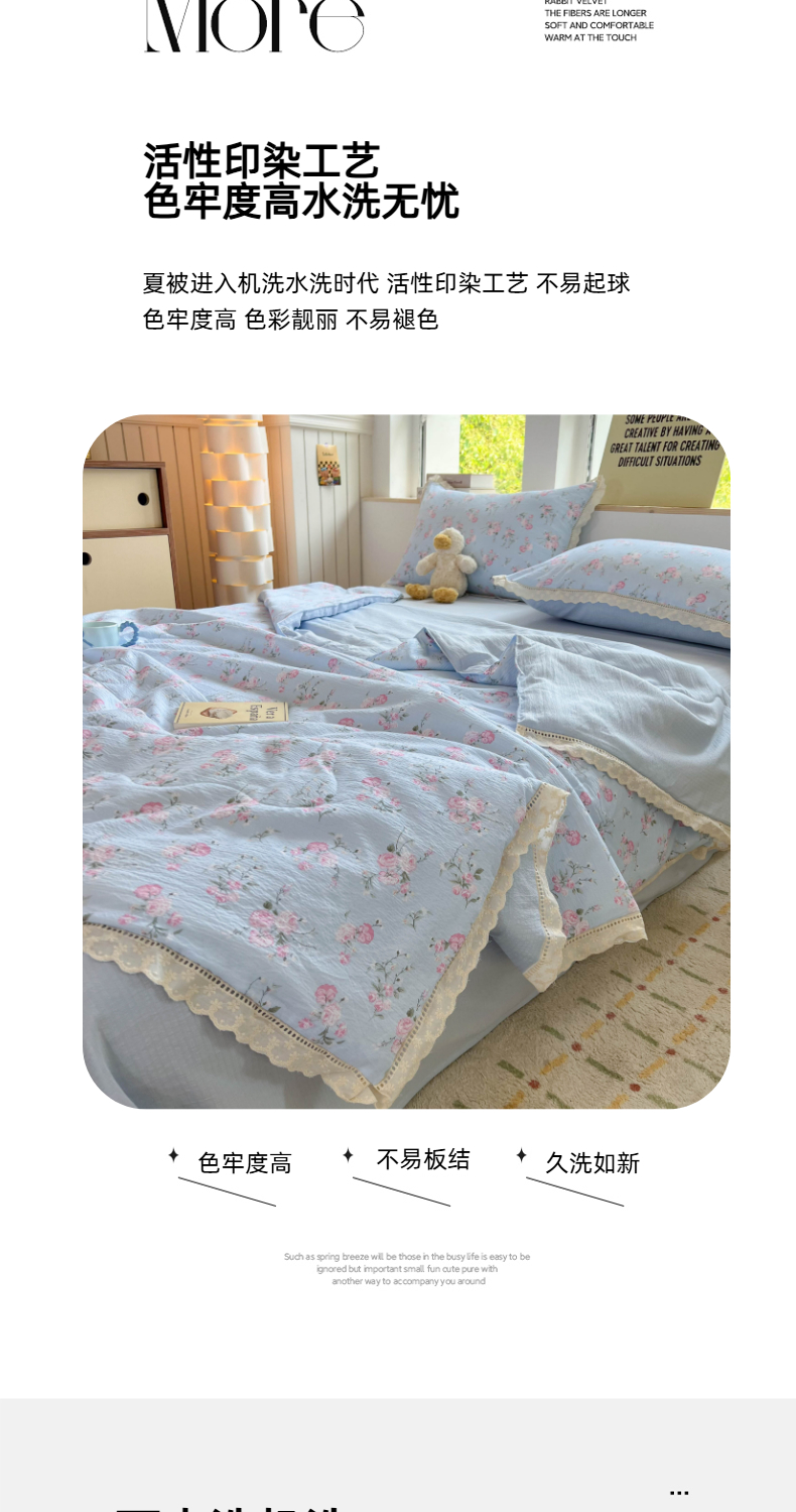 商品名称:温眠家纺 2025新款云感双层纱镂空花边夏被四件套 蓝溪
