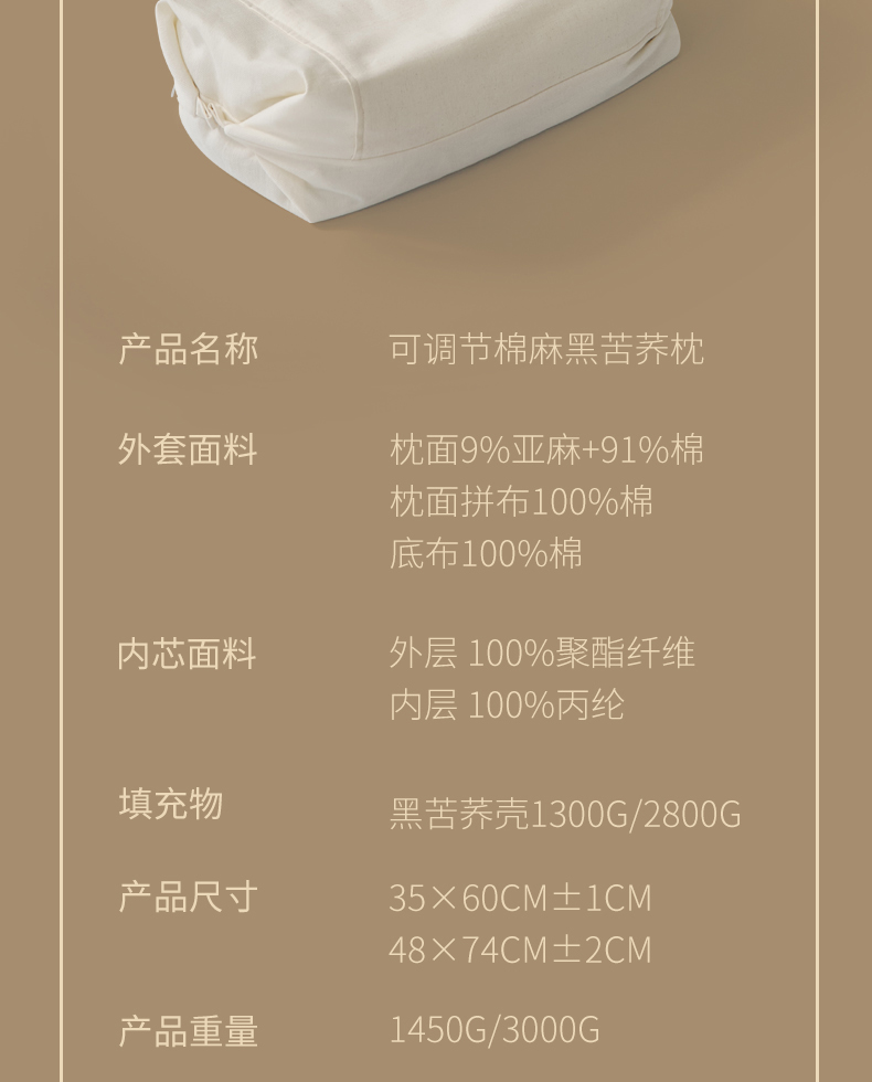 当前位置: 91家纺网 > 商品网购 > 枕头/枕芯/保健枕/颈椎枕 > 枕头枕芯 > 境月枕芯坊 2026新款可拆洗棉麻黑苦荞枕枕头枕芯 可拆洗棉麻黑苦荞枕-小号