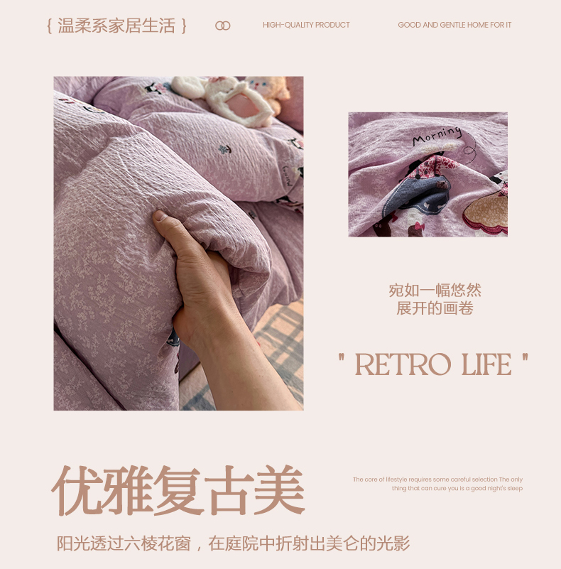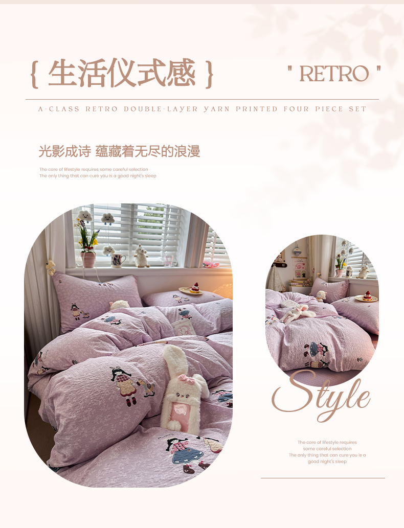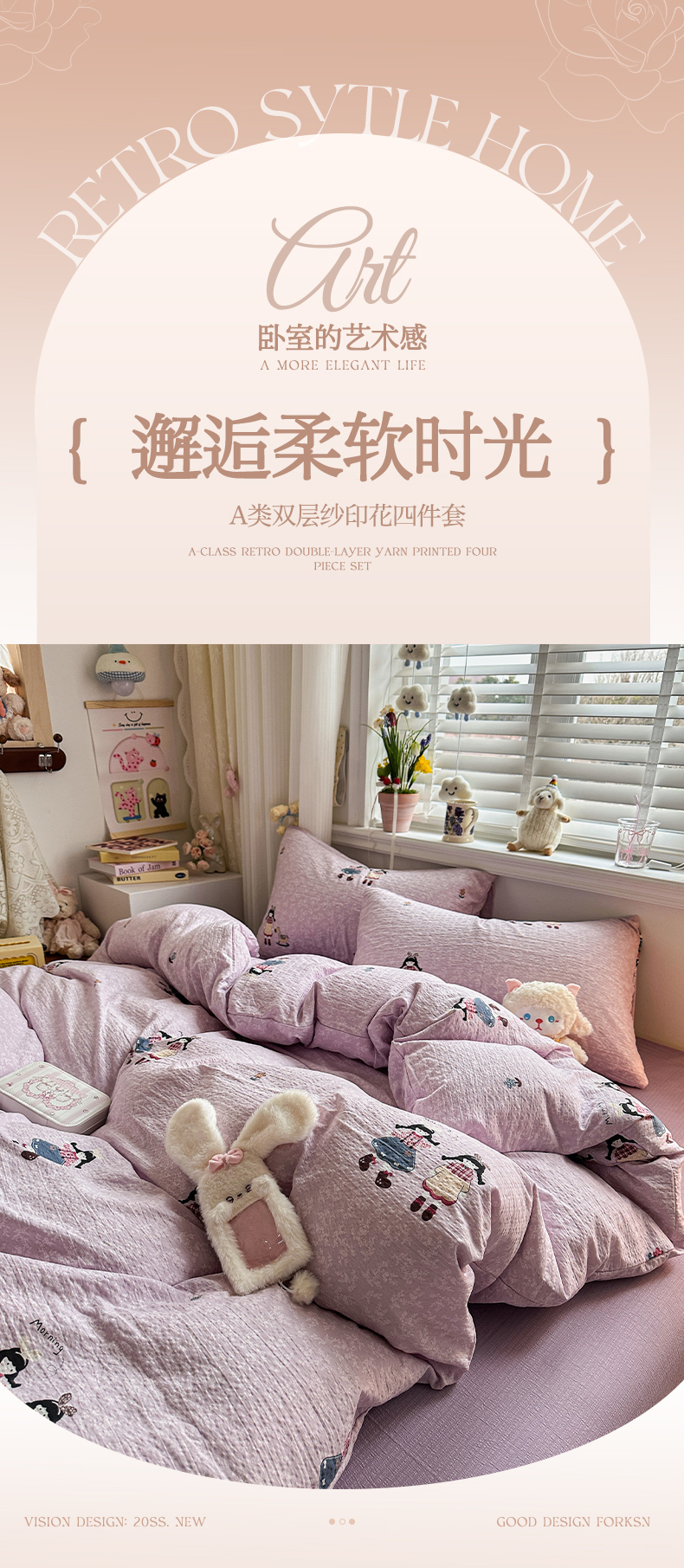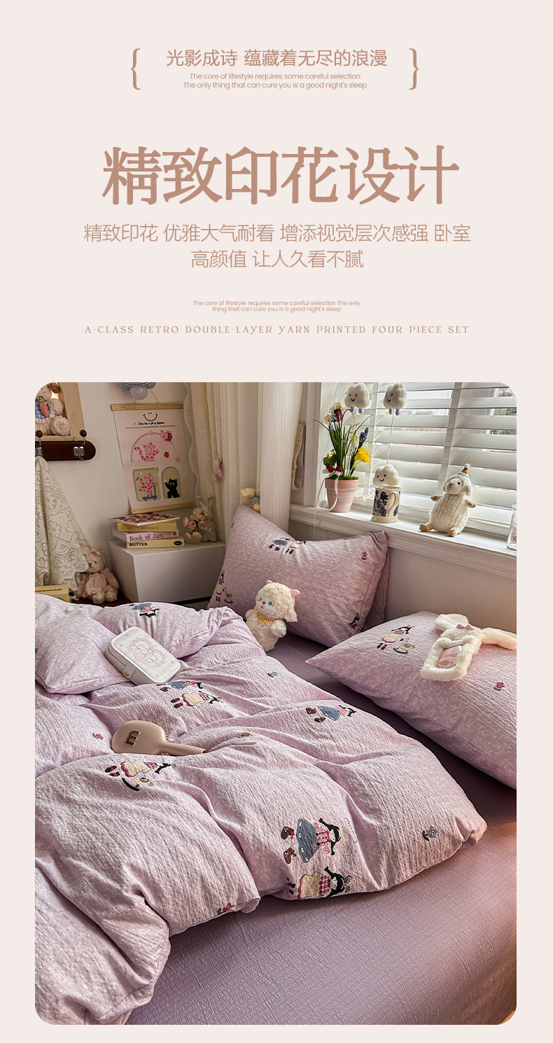 当前位置: 91家纺网 > 商品网购 > 床品套件 > 四件套 > 双层纱四件套 > 卡斯诺家纺馆 2026新款皱皱棉双层纱四件套(下载文件包含买家秀) 柔光邂逅