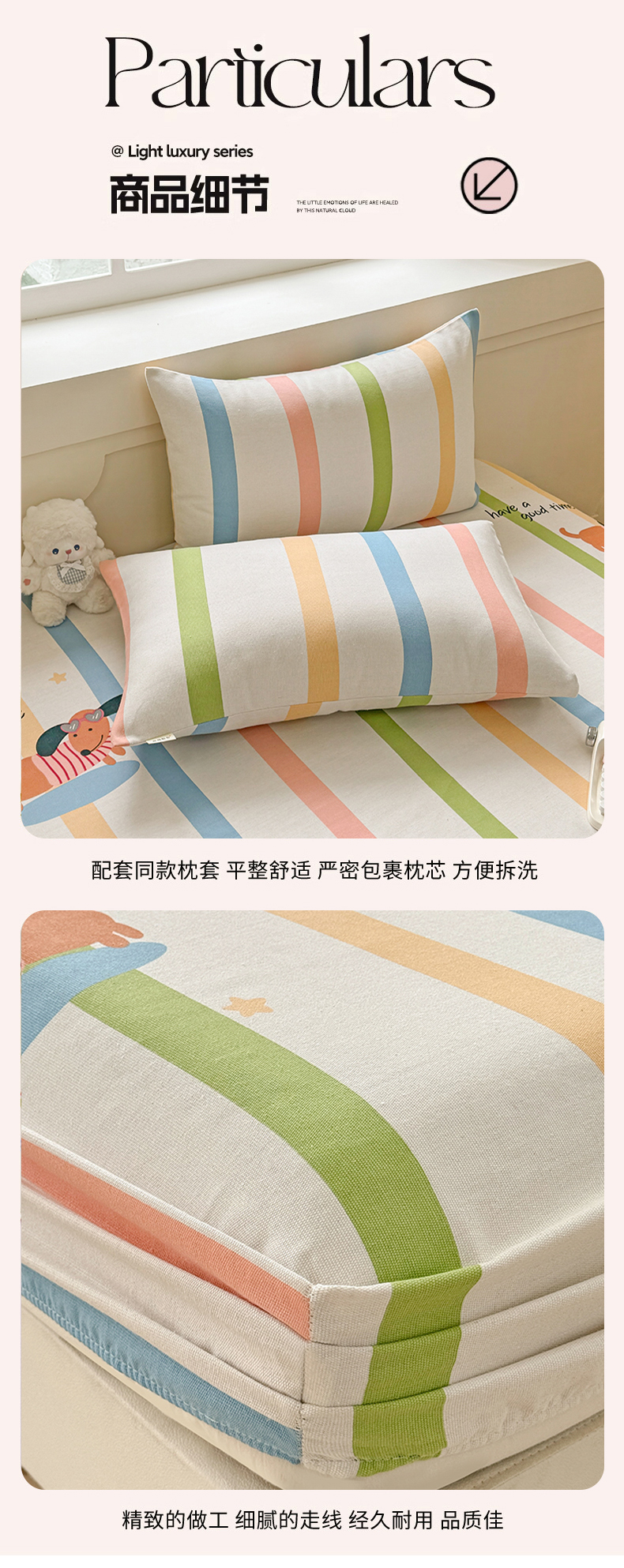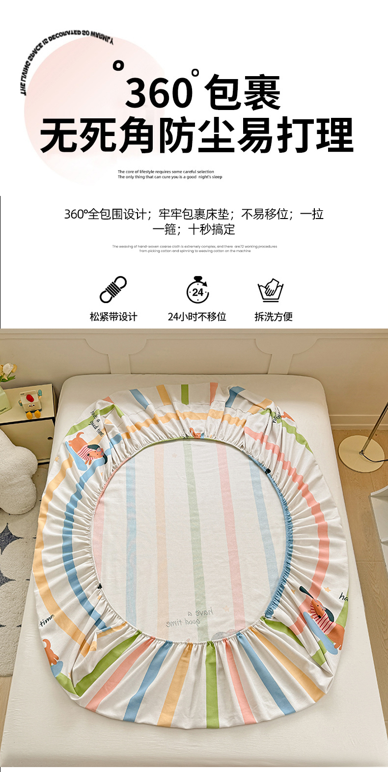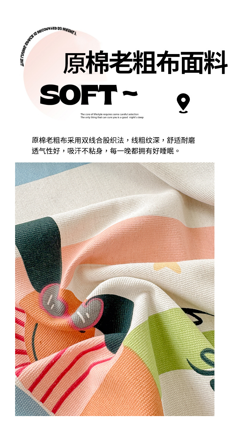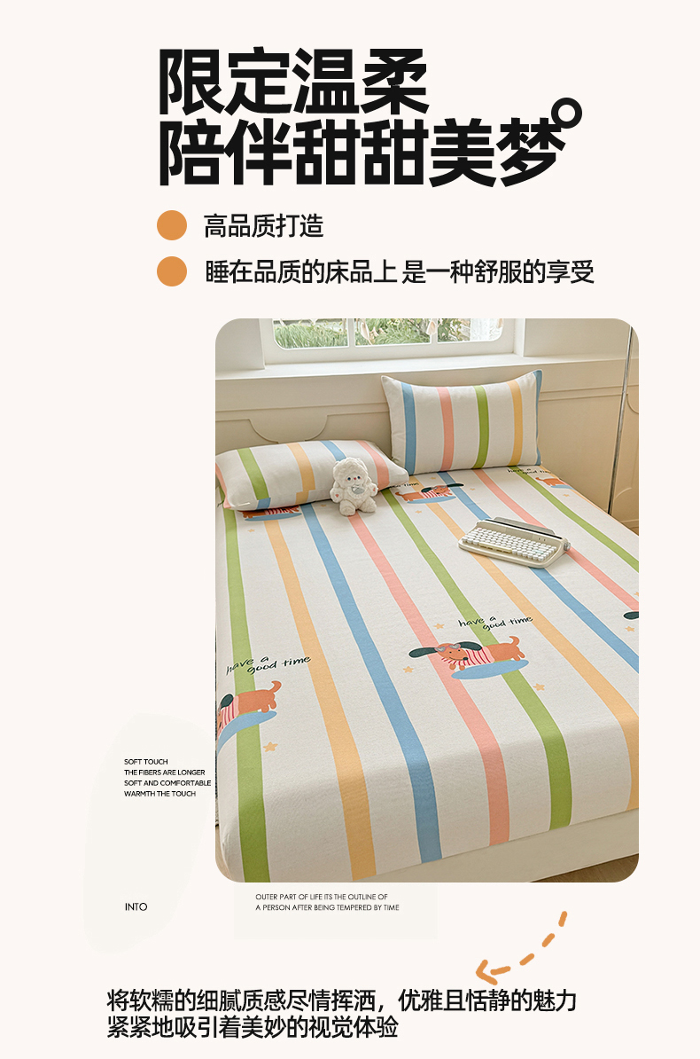 爱彼家纺 2026新款舒适透气老粗布凉席印花床笠单件-床笠三件套 老粗布床笠-彩虹小狗
