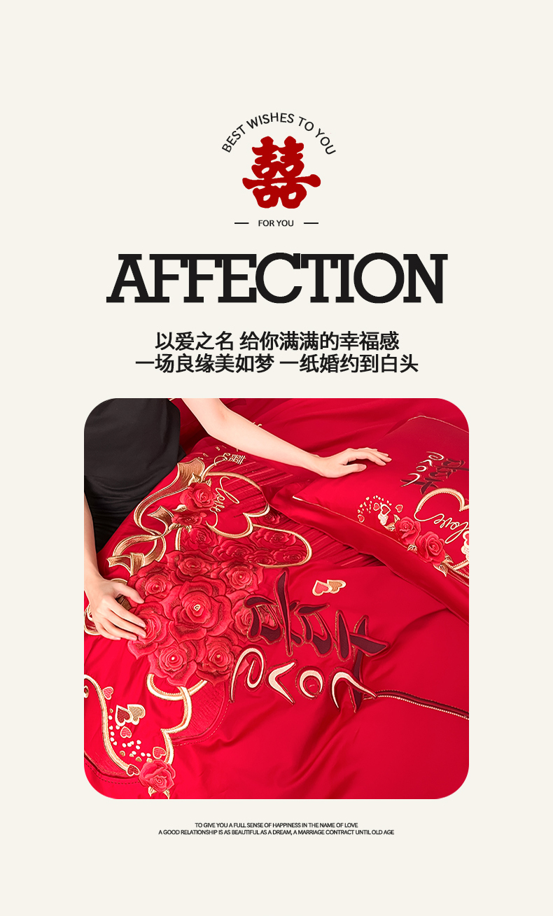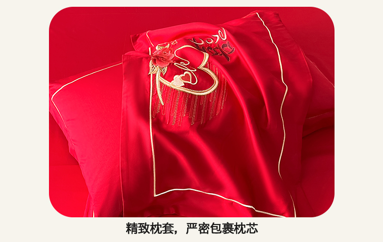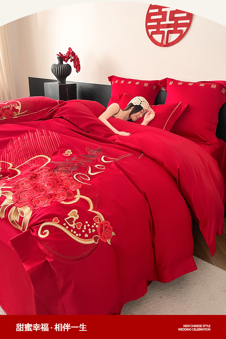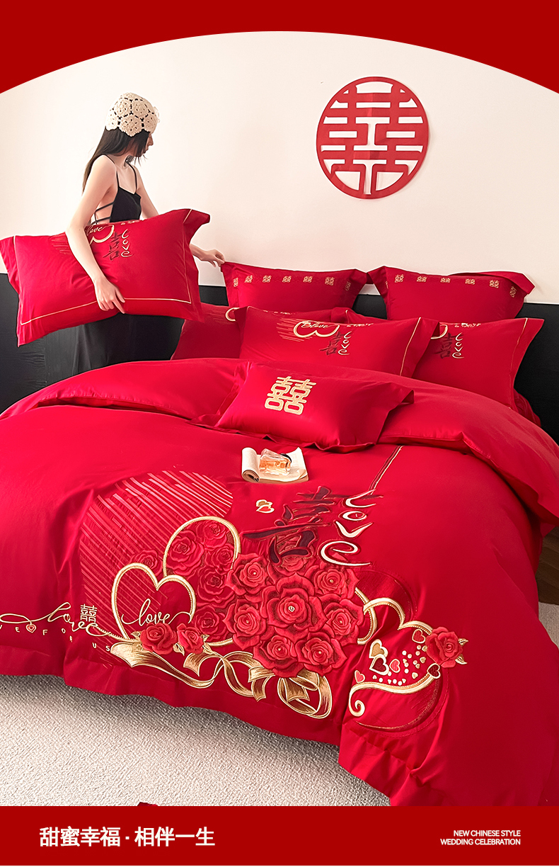 当前位置: 91家纺网 > 商品网购 > 床品套件 > 四件套 > 婚庆四件套 > 置顶家纺 2026新款新中式亲肤婚庆绣花四件套 LOVE囍-大红