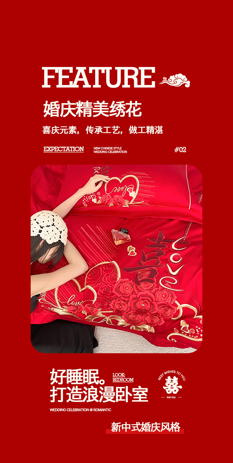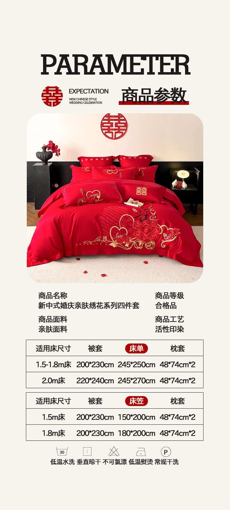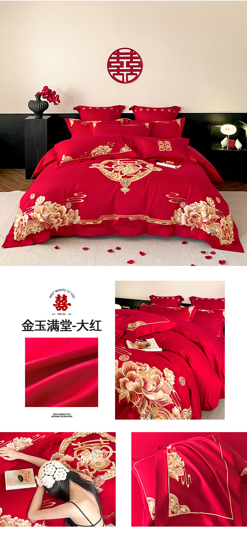 当前位置: 91家纺网 > 商品网购 > 床品套件 > 四件套 > 婚庆四件套 > 置顶家纺 2026新款新中式亲肤婚庆绣花四件套 LOVE囍-大红