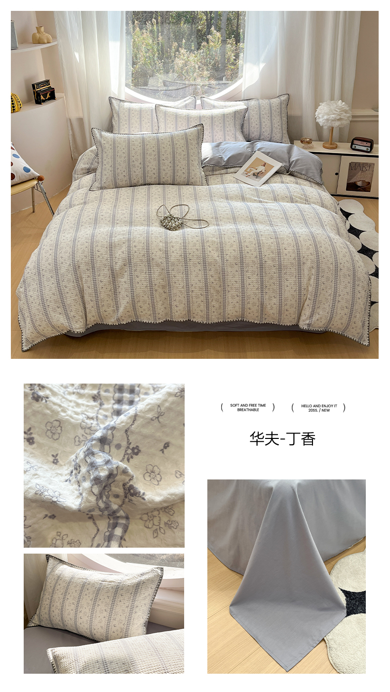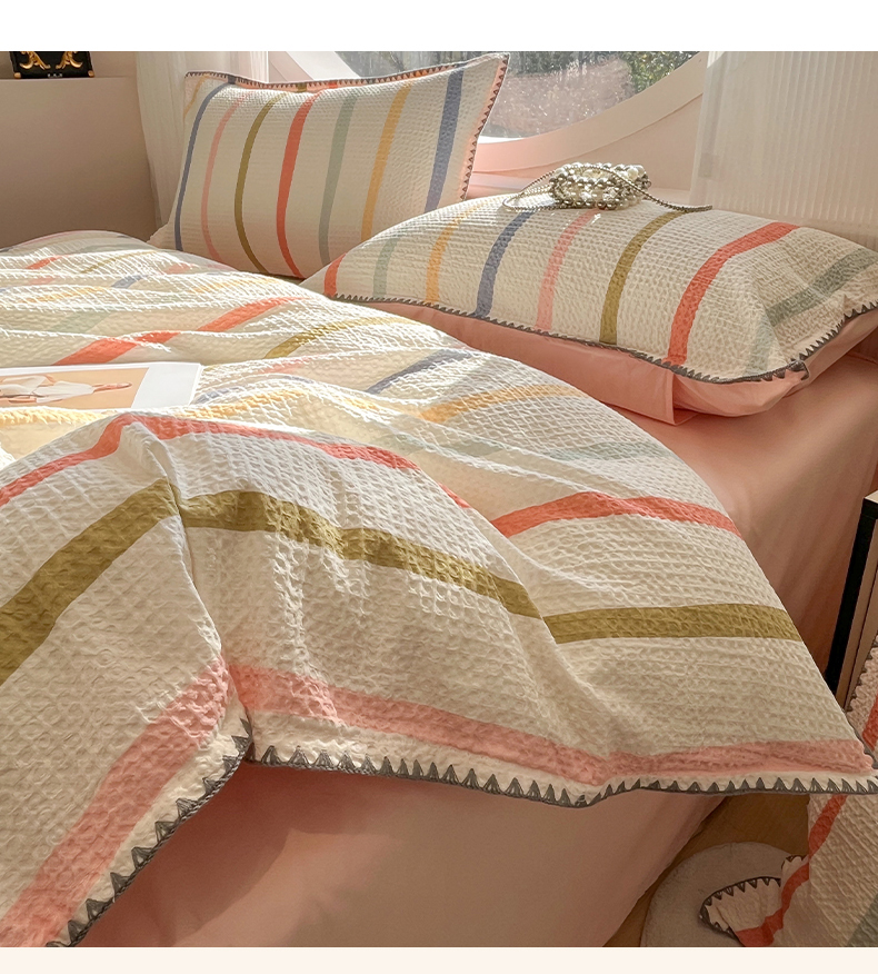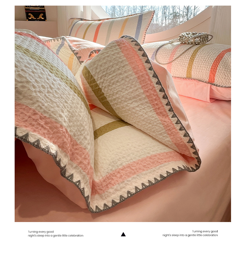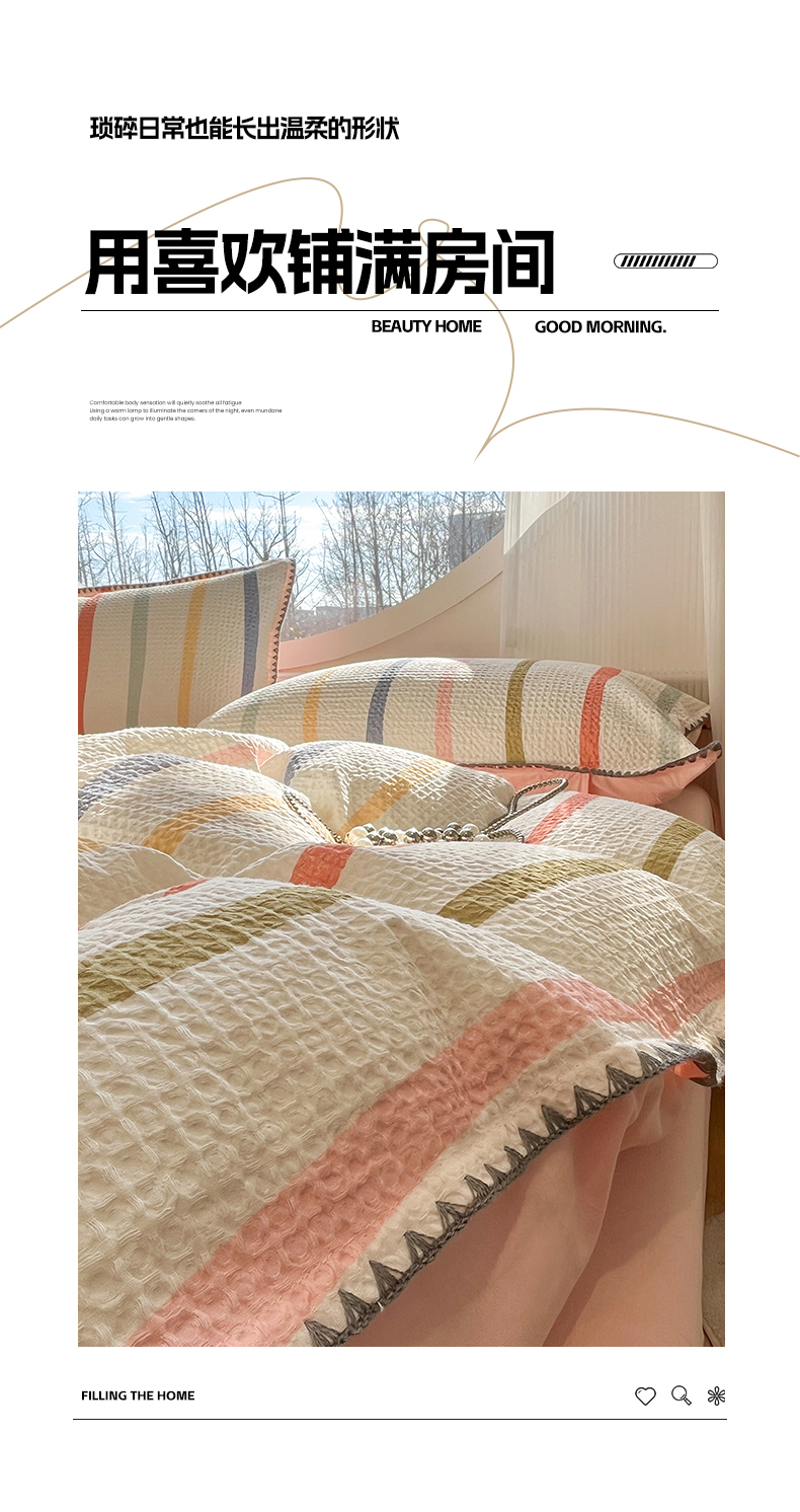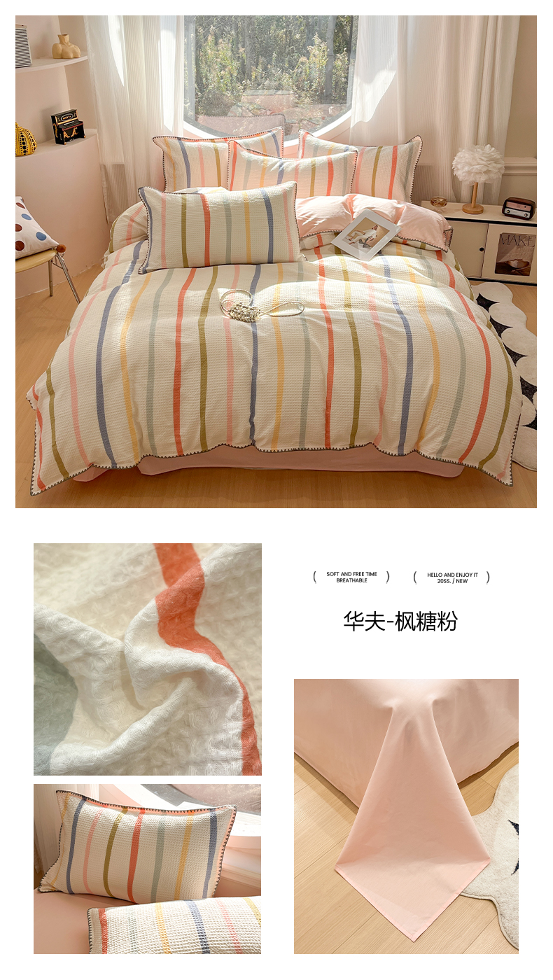 当前位置: 91家纺网 > 商品网购 > 床品套件 > 四件套 > 全棉普通四件套 > 莱茵家居 2026新款A类全棉华夫格印花贝壳边套件-华夫系列 华夫-枫糖粉