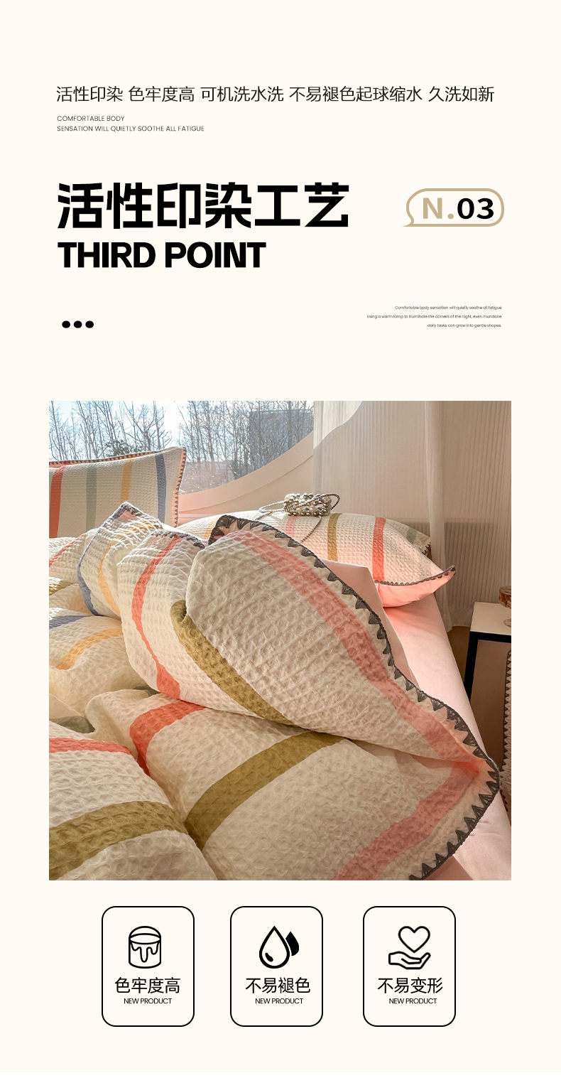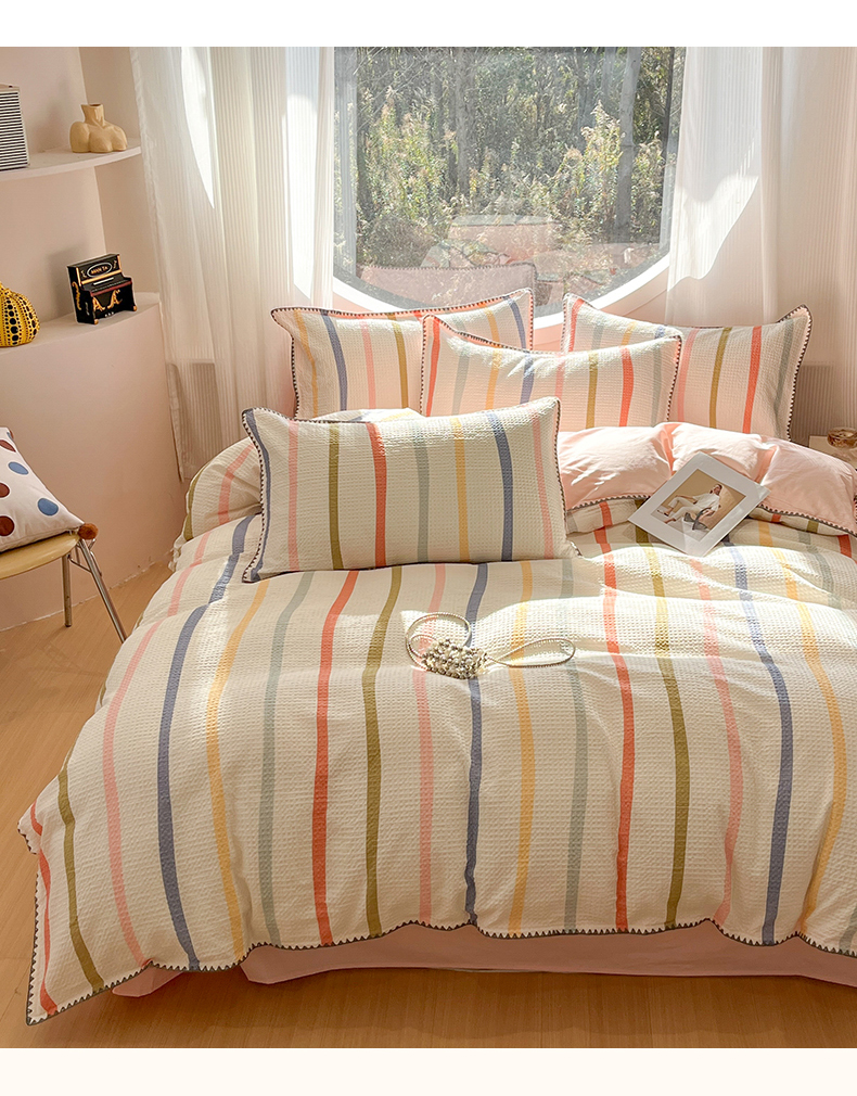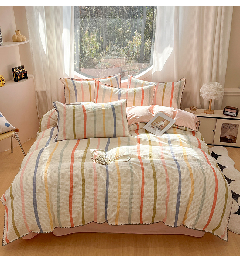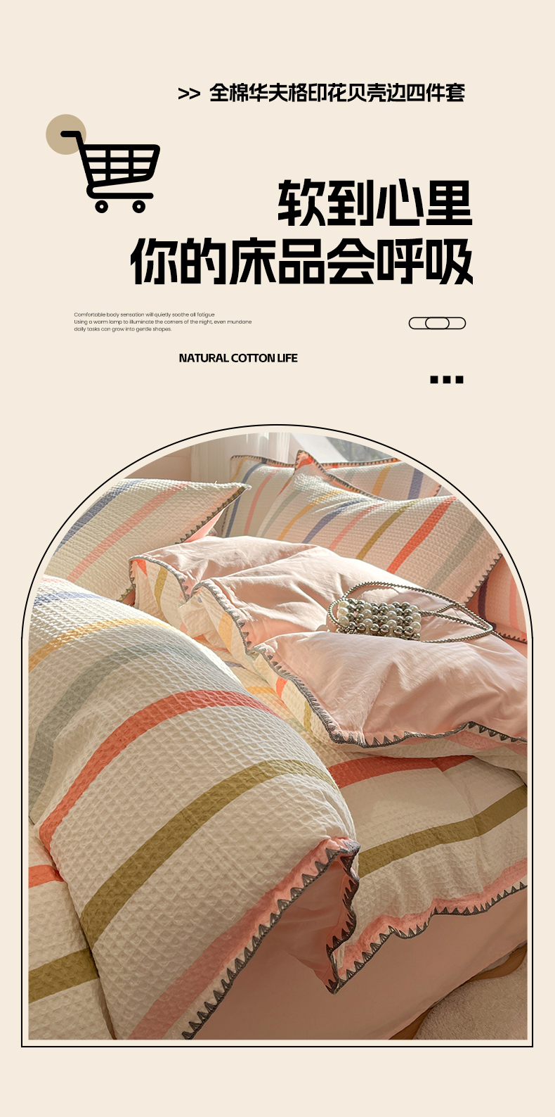 当前位置: 91家纺网 > 商品网购 > 床品套件 > 四件套 > 全棉普通四件套 > 莱茵家居 2026新款A类全棉华夫格印花贝壳边套件-华夫系列 华夫-枫糖粉