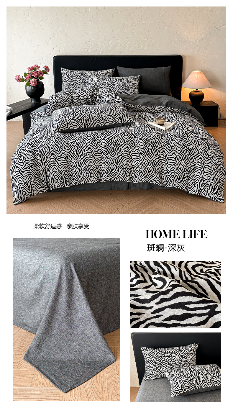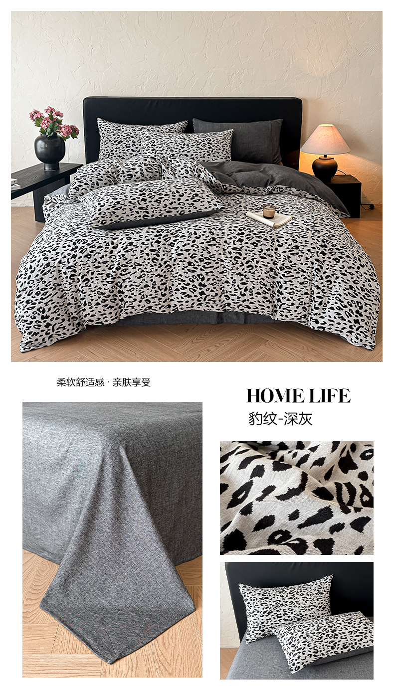 (总)莱茵家居 2026新款A类60支全棉纯棉复古侘寂风色织提花四件套-墨隙系列,斑斓-深灰,豹纹-卡其,豹纹-深灰,墨隙-卡其,墨隙-深灰