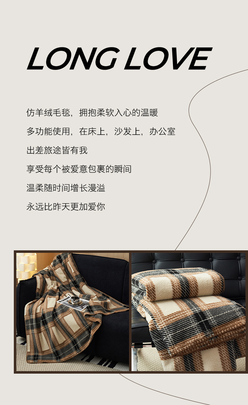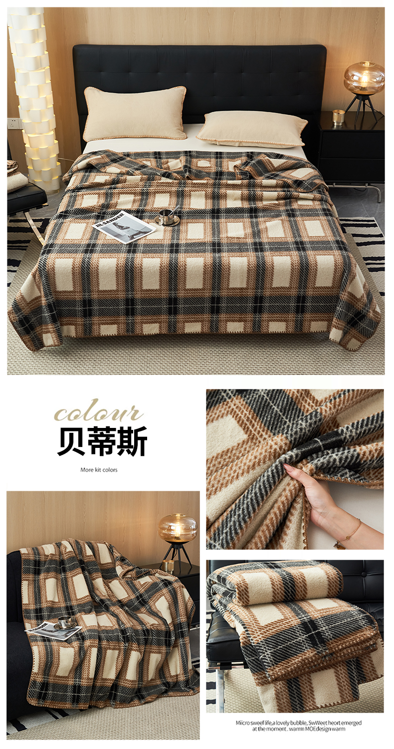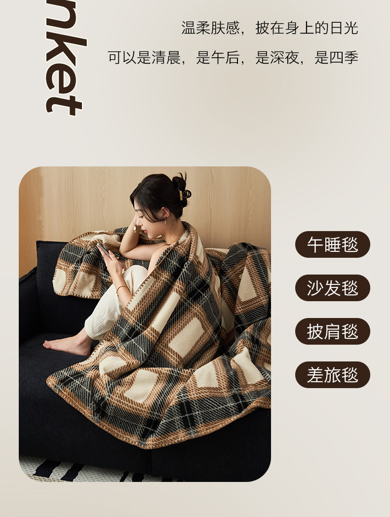 商品名称:莱家富 2026新款加厚高端仿羊绒毛毯沙发盖毯午睡盖被双层复古四季毯礼盒装 千鸟格