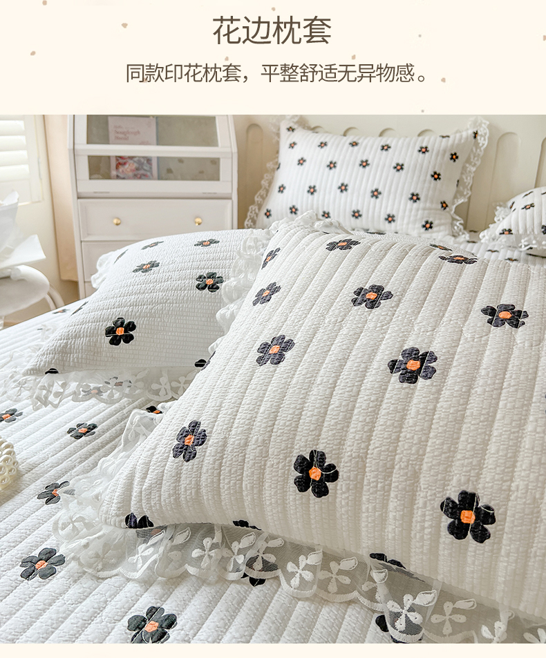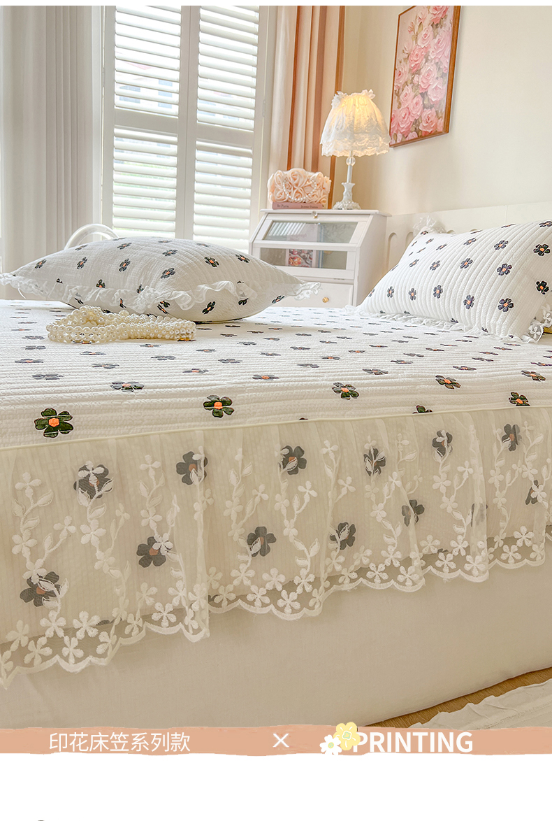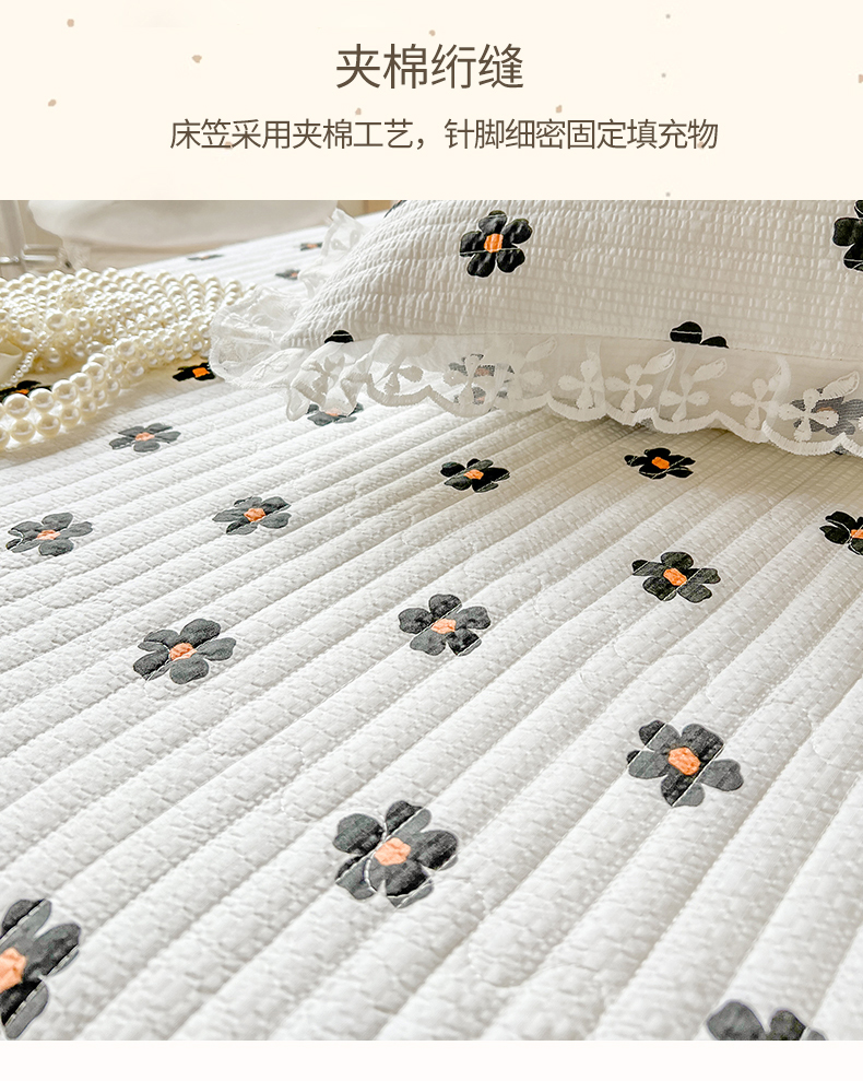 网红馆(ck家纺) 2026新款泡泡棉印花床笠三件套 花儿朵朵