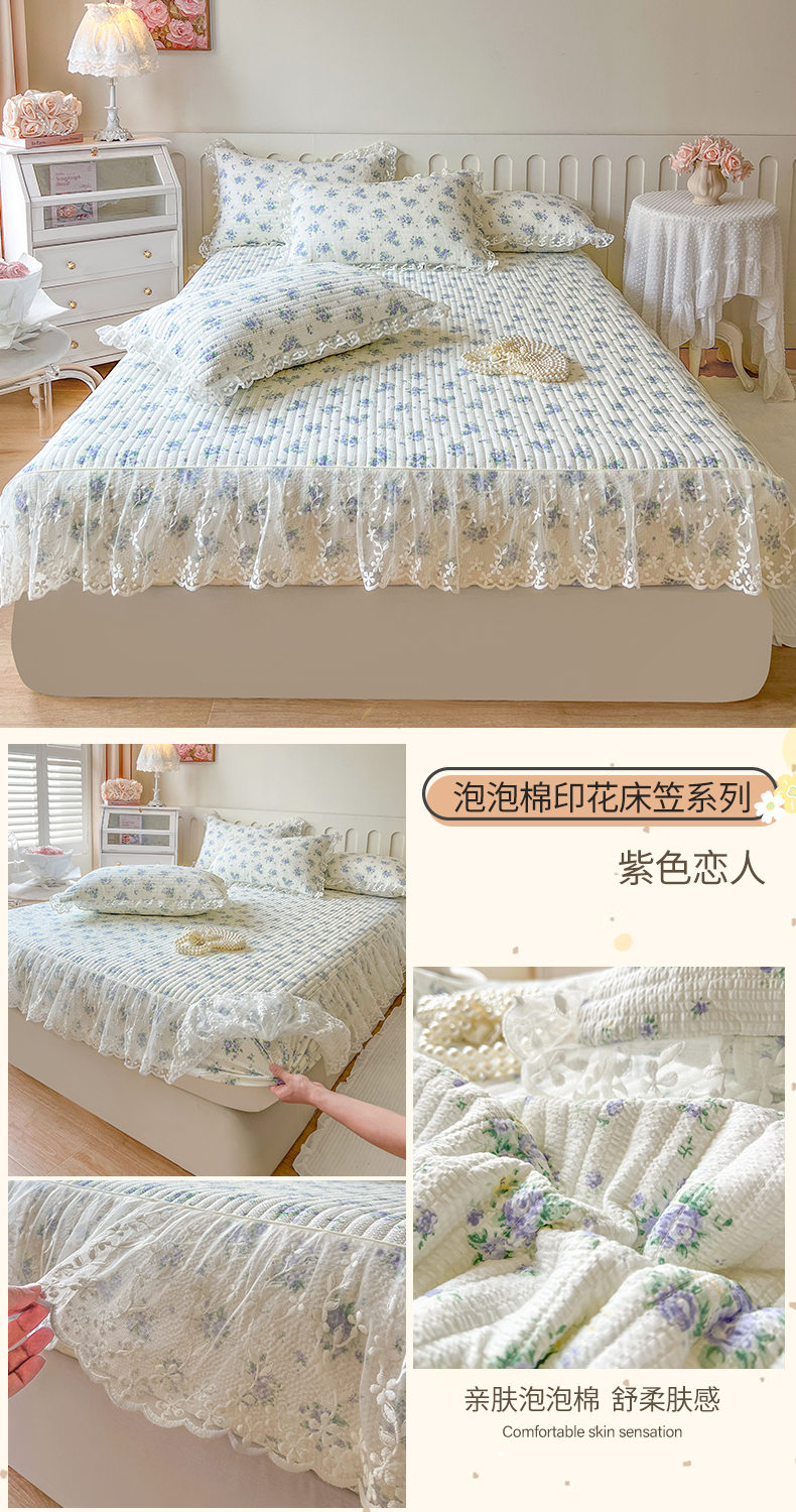 (总)网红馆(ck家纺) 2026新款泡泡棉印花床笠三件套,花儿朵朵,花莫,甜心草莓,小清新,熊宝宝,悠悠花海,紫色恋人