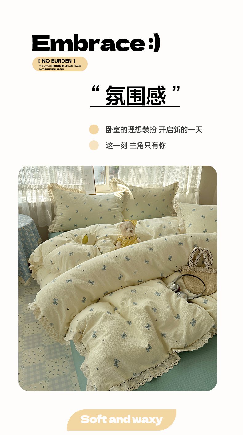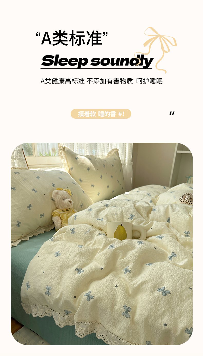 当前位置: 91家纺网 > 商品网购 > 床品套件 > 四件套 > 其它四件套 > 韩巢家纺 2026新款蝴蝶花边销款四件套 相思-蓝【蝴蝶花边款】