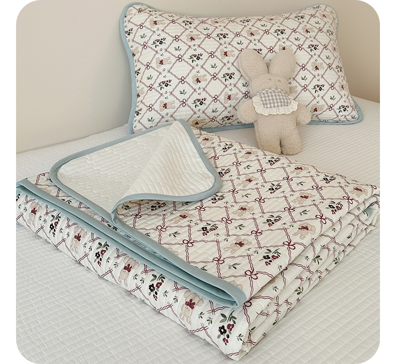 • 91家纺网 家纺一手货源 找家纺 漫时光 2026新款纯棉小清新棉花夹层床盖 芭比兔