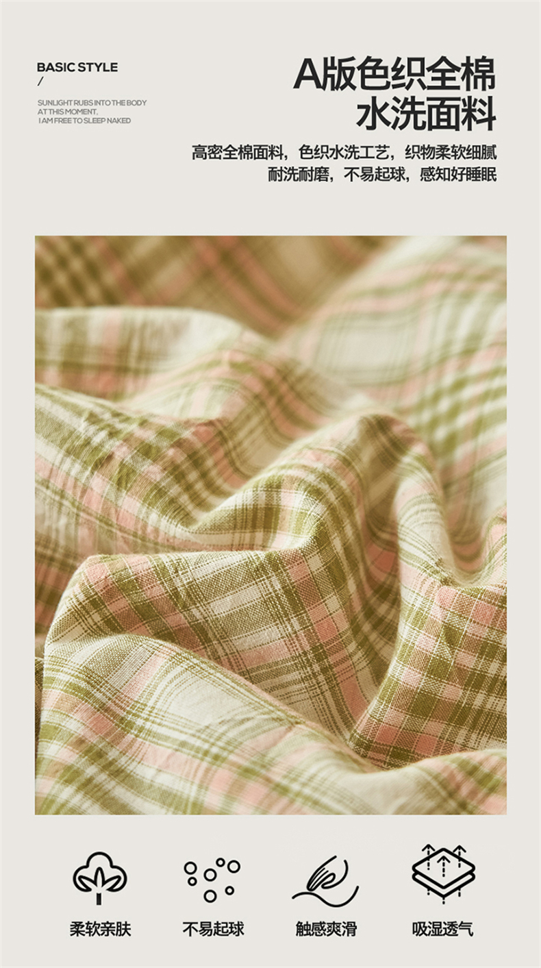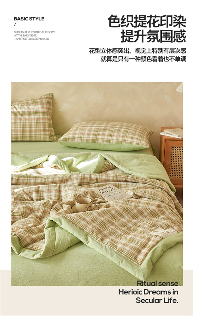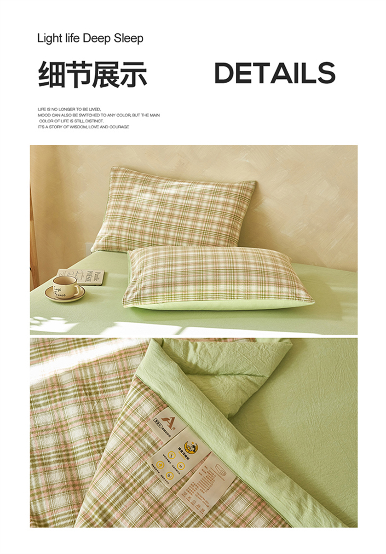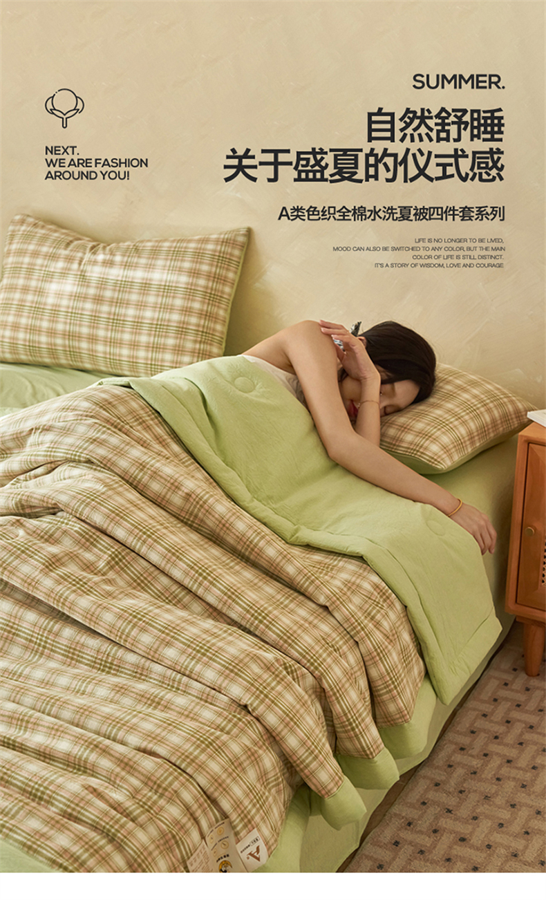 当前位置: 91家纺网 > 商品网购 > 床品套件 > 四件套 > 夏被四件套 > 恒爱家纺 2026新款A类色织全棉水洗夏被四件套 NS利奥-沁绿
