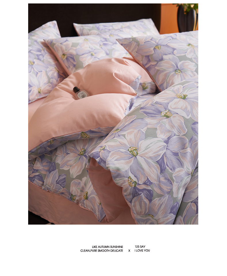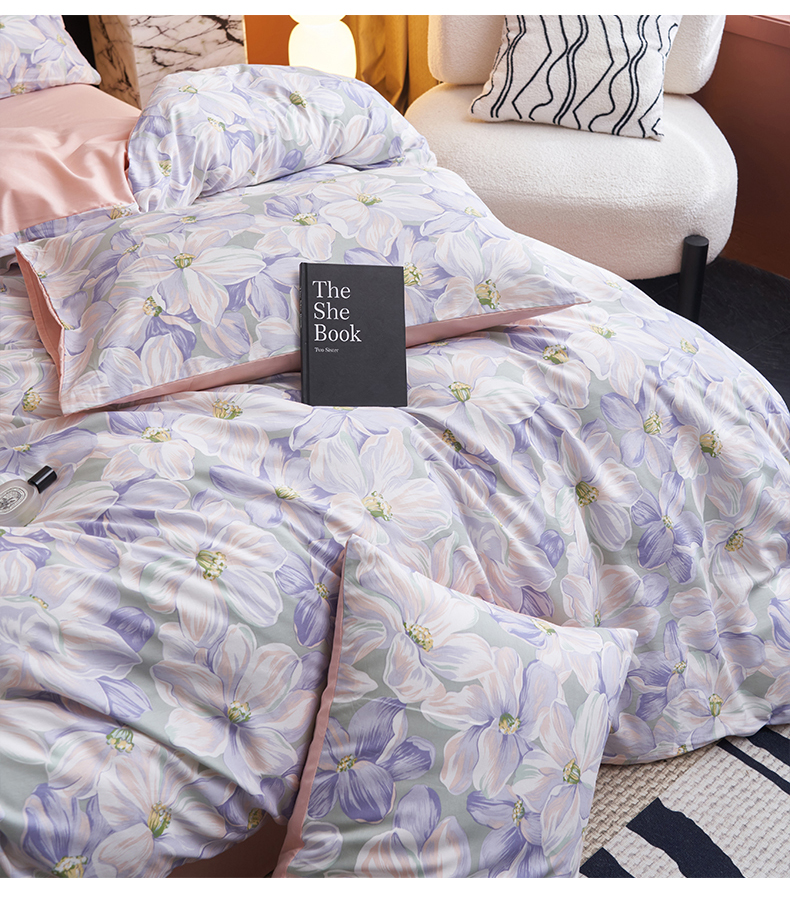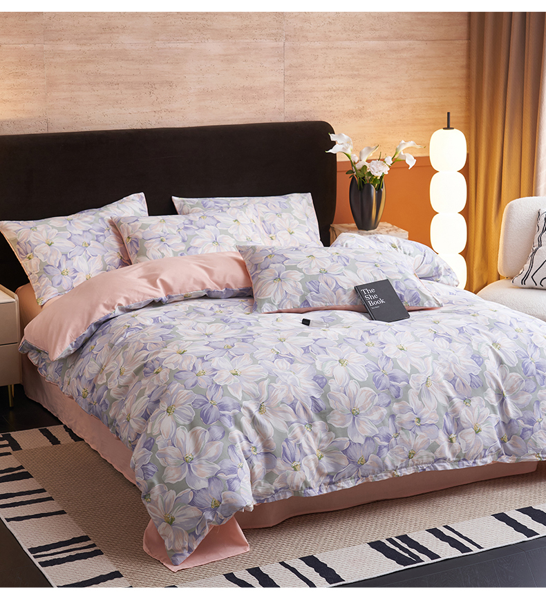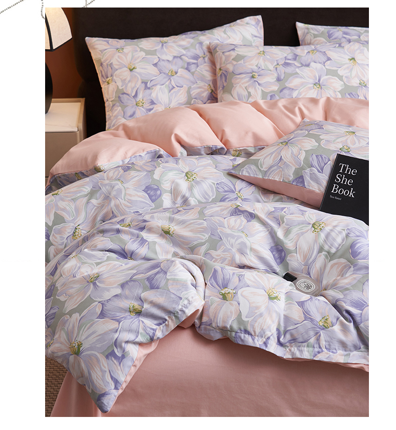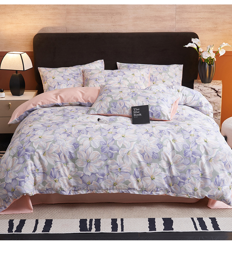 恒爱家纺 2026新款全棉12868印花四件套 一夜芳华蓝