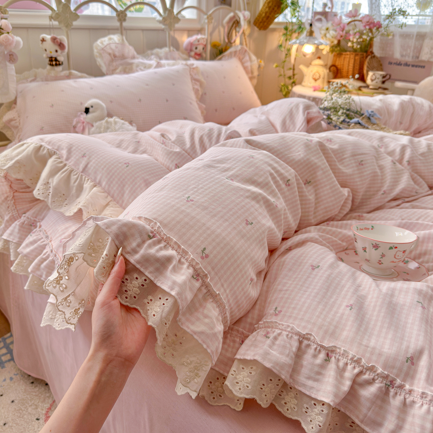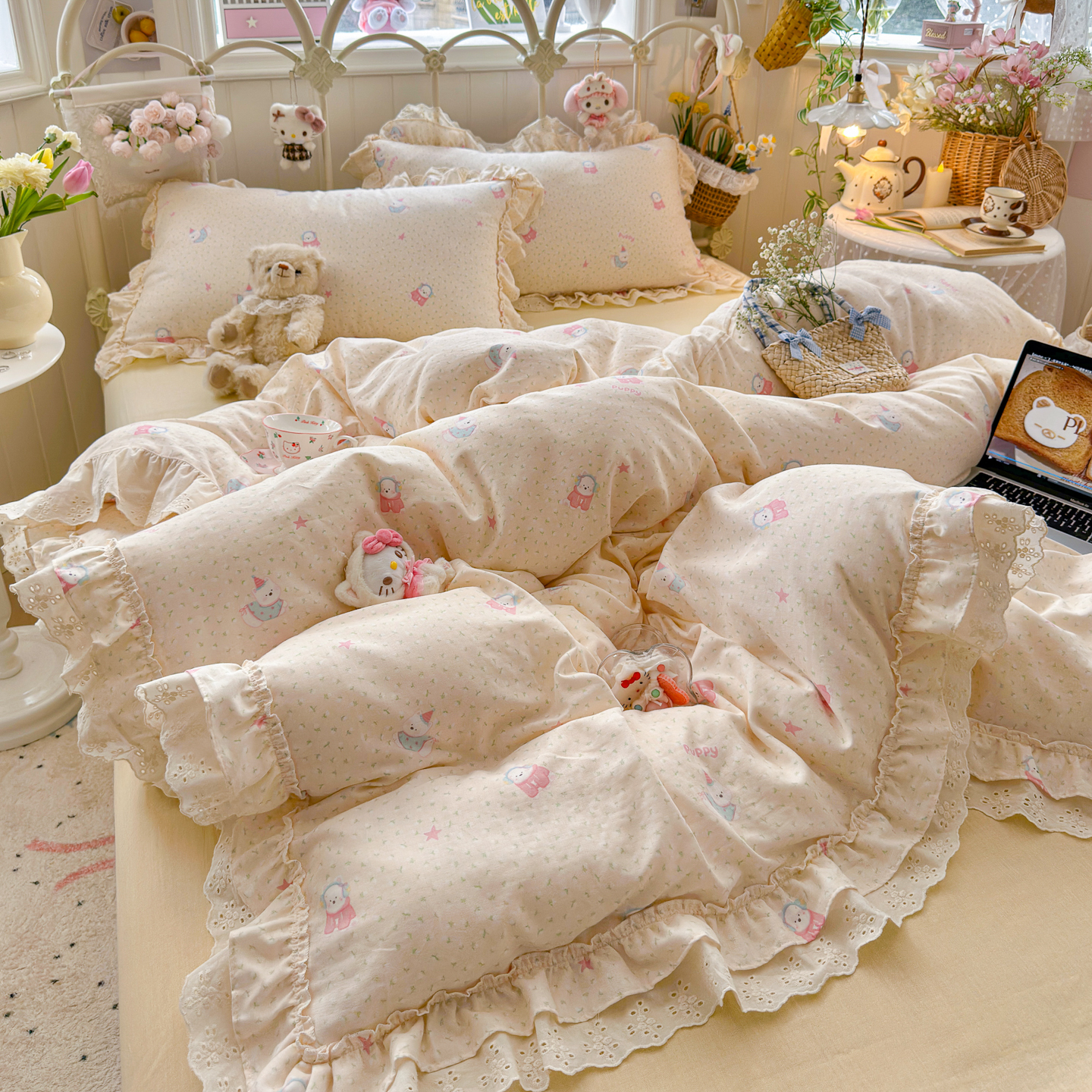 当前位置: 91家纺网 > 商品网购 > 床品套件 > 四件套 > 全棉普通四件套 > 锦彩家居 2026新款A类全棉纯棉韩式花边款小清新双层纱四件套-半糖主义系列 (提供买家秀) 焦糖摩卡