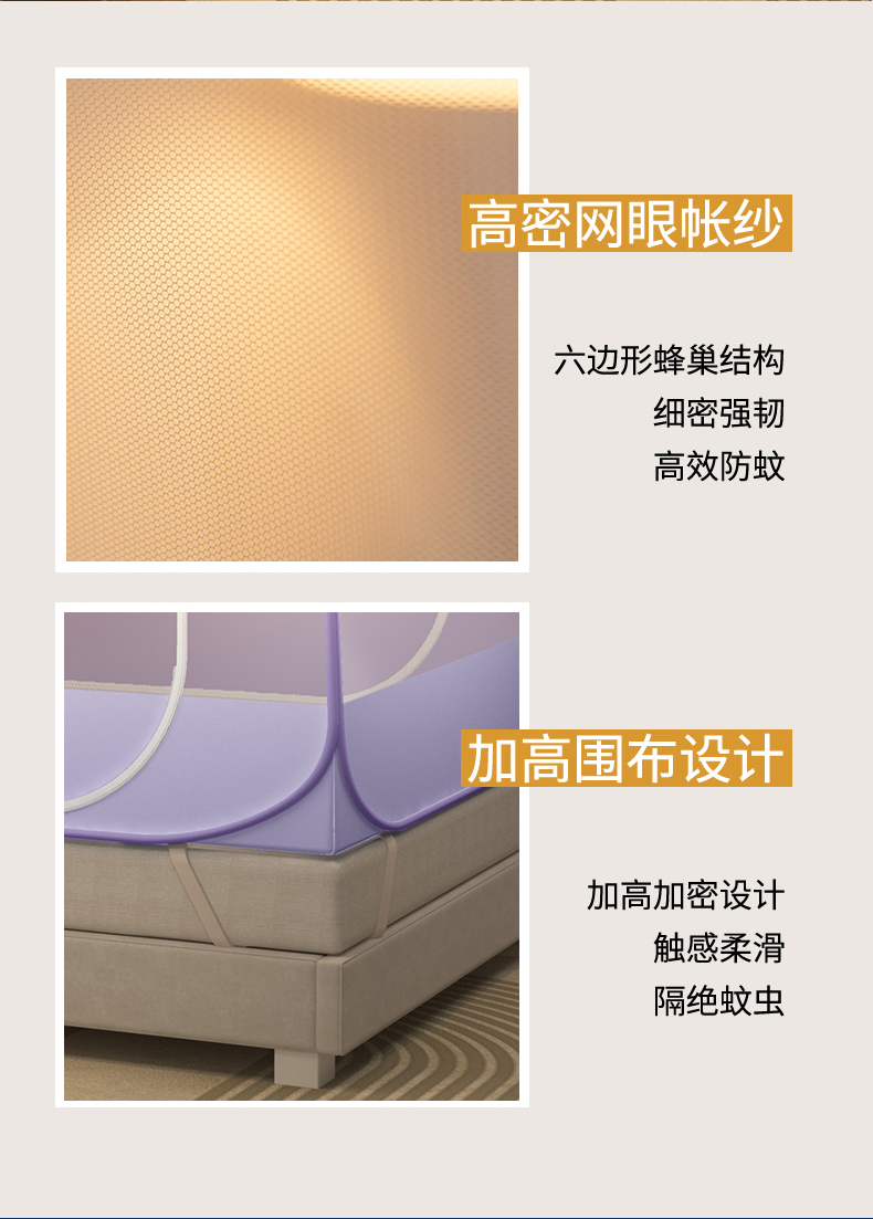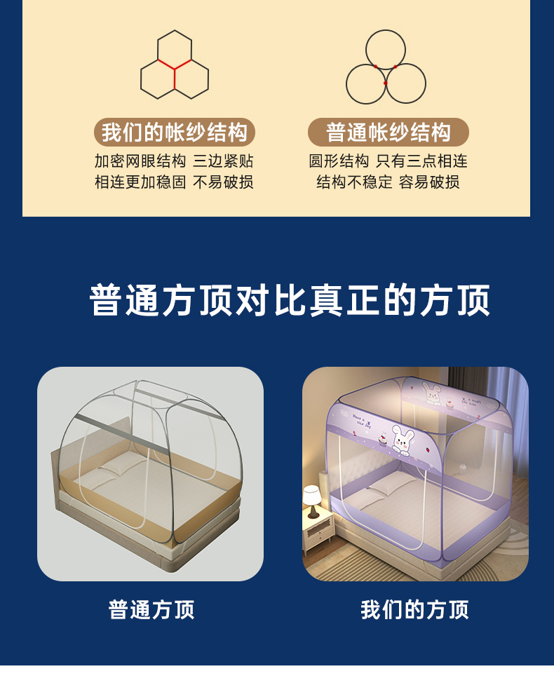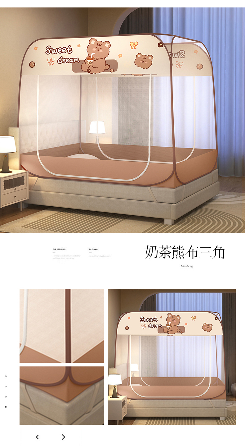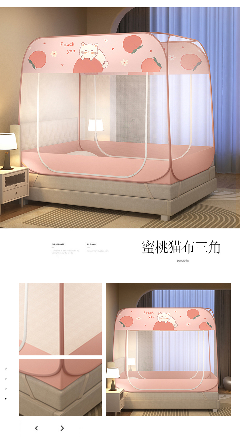 商品名称:佳梦家纺 2026新款蒙古包印花双开门蚊帐 蜜桃猫-布三角