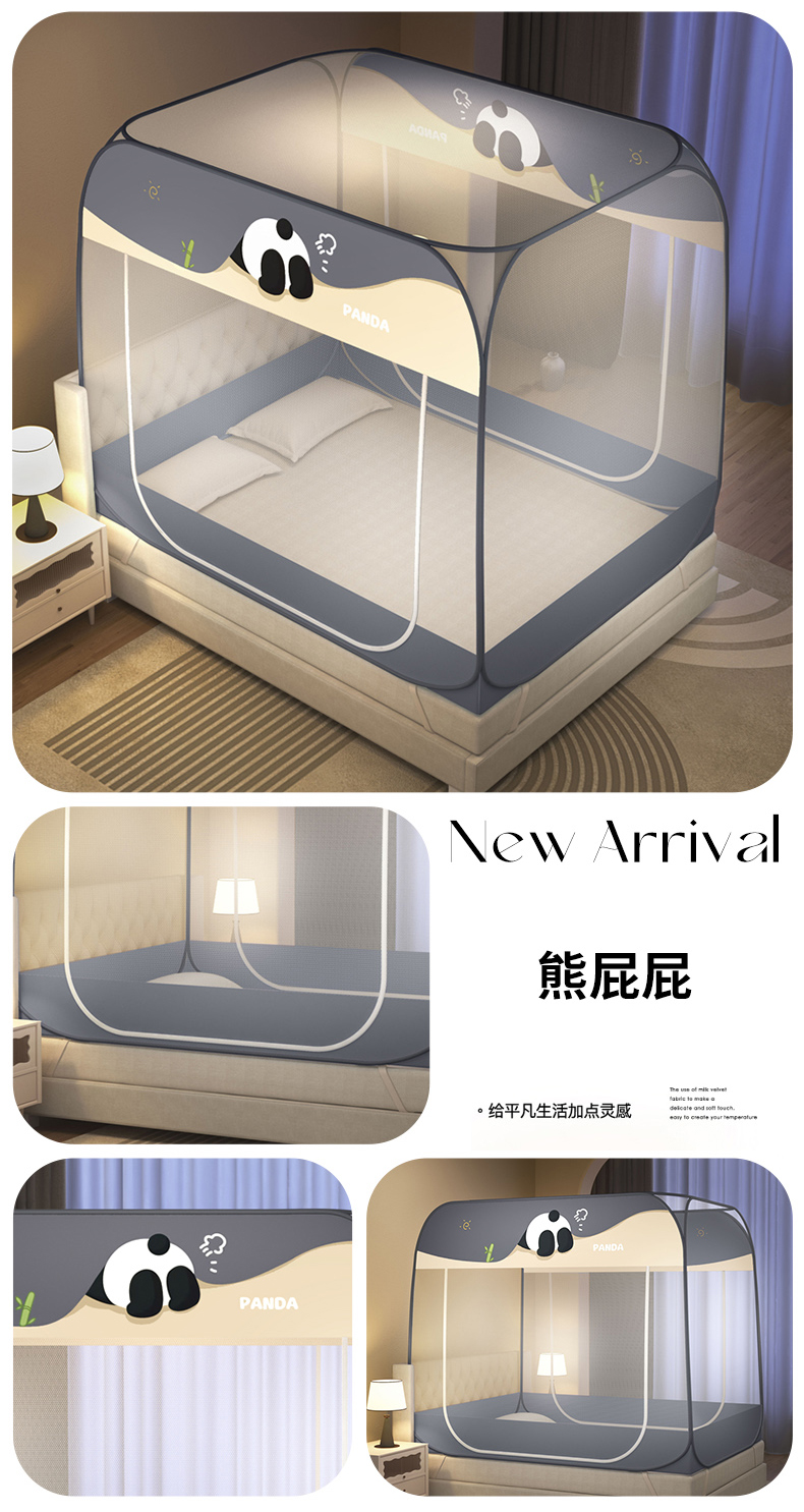佳梦家纺 2026新款蒙古包印花双开门蚊帐 蜜桃猫-布三角