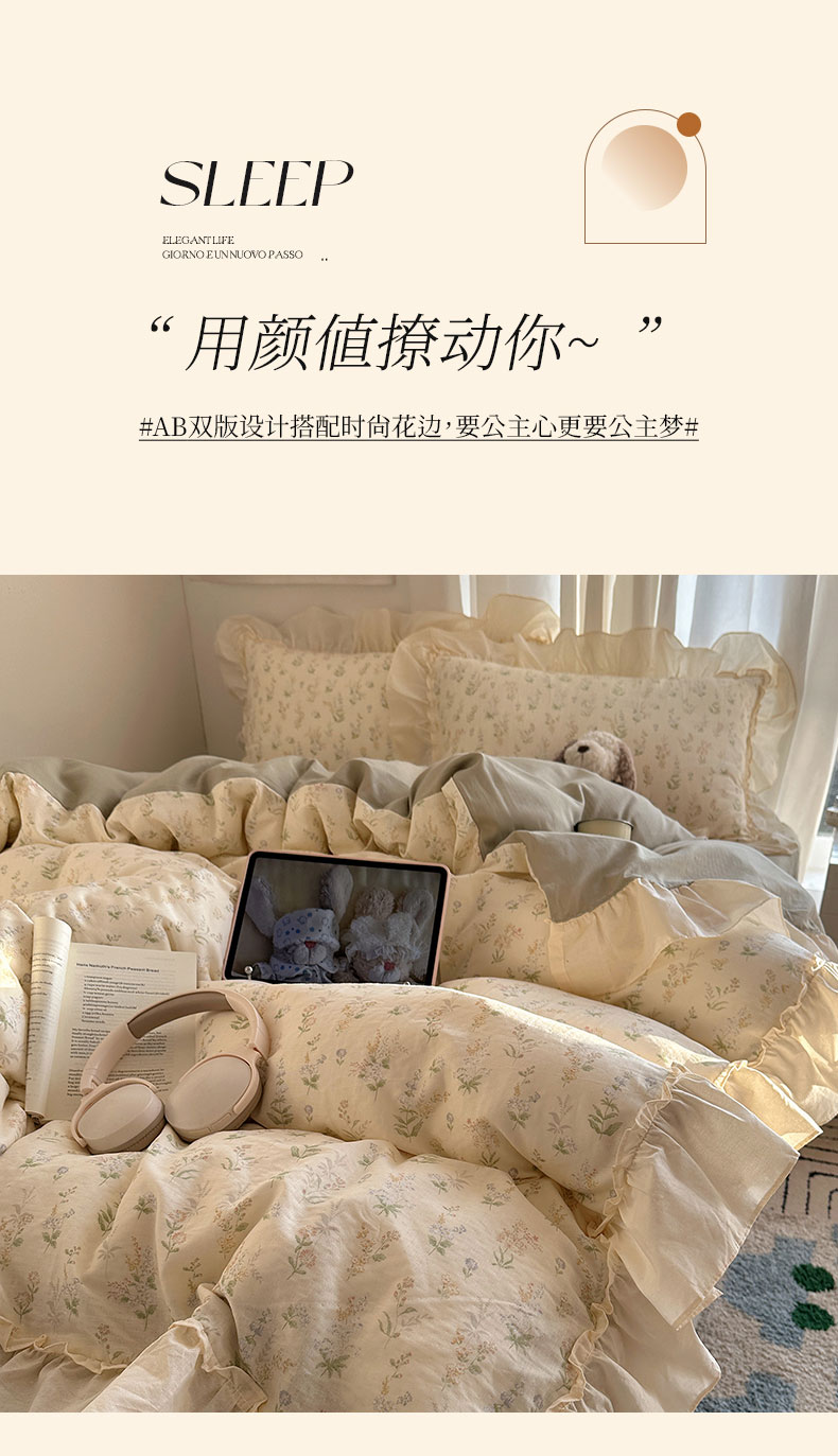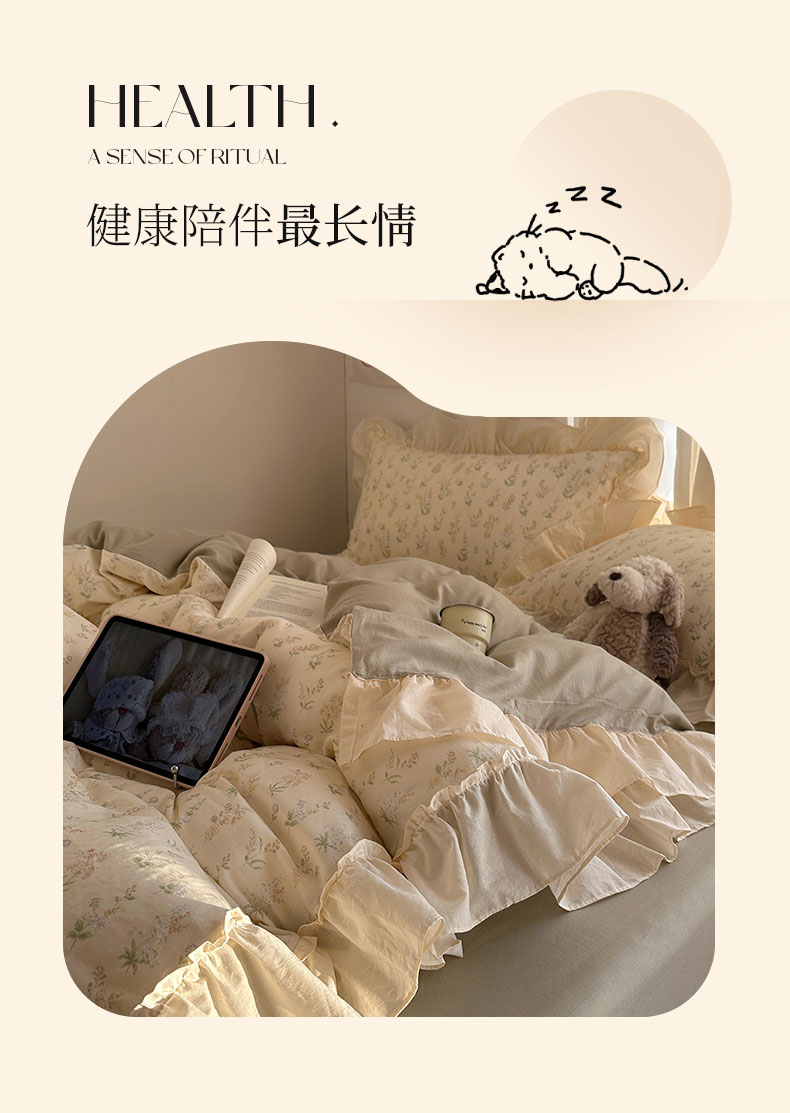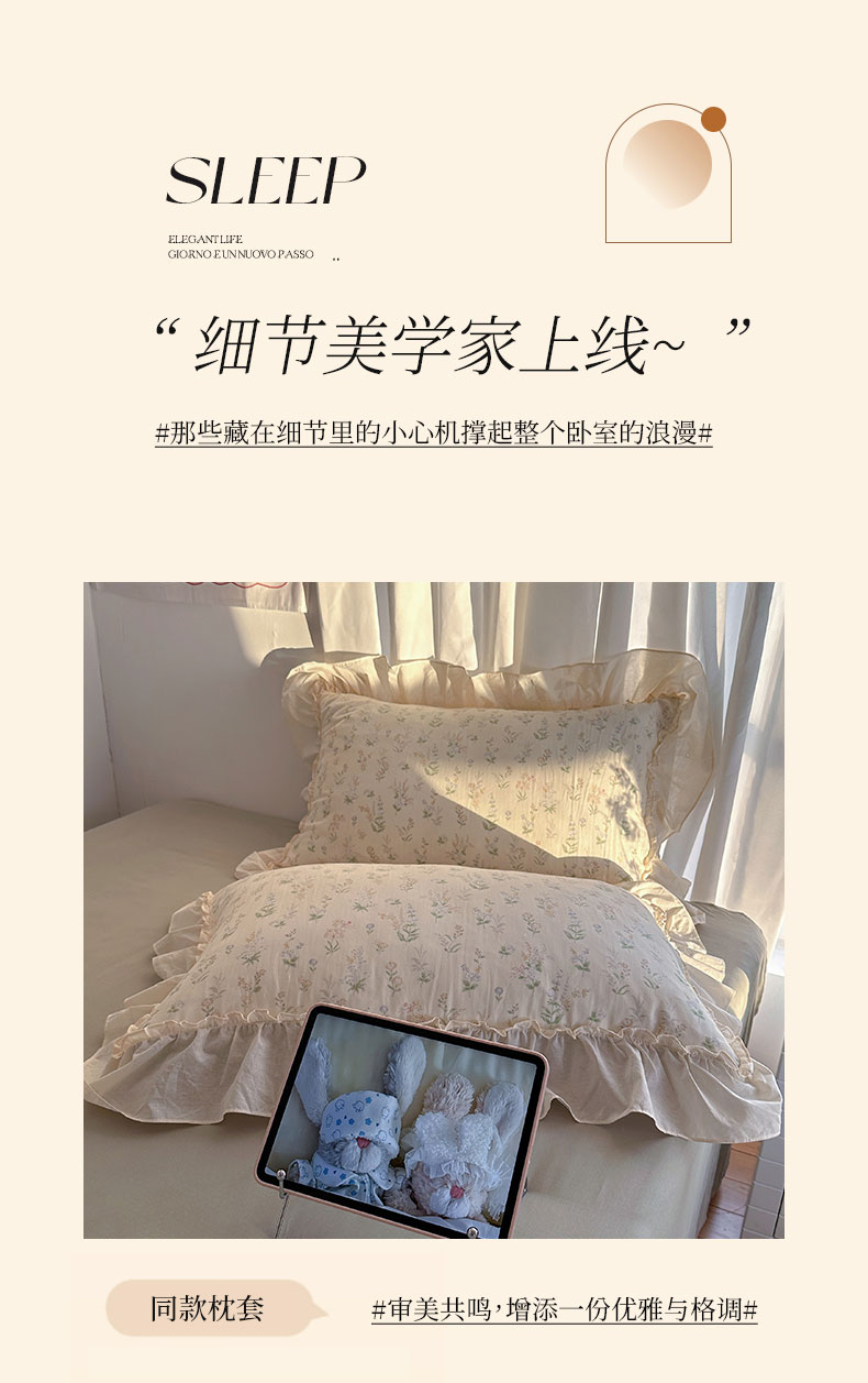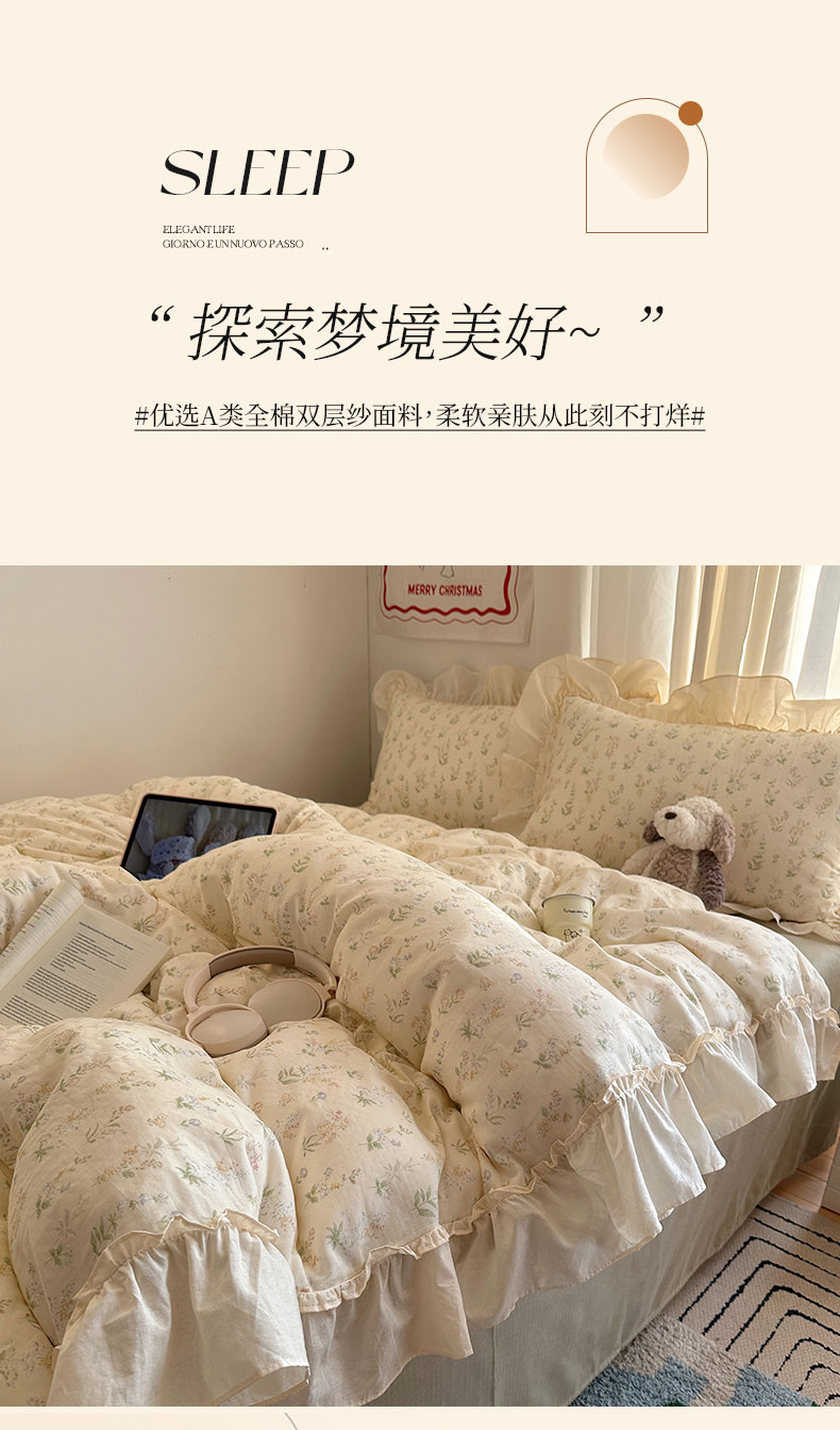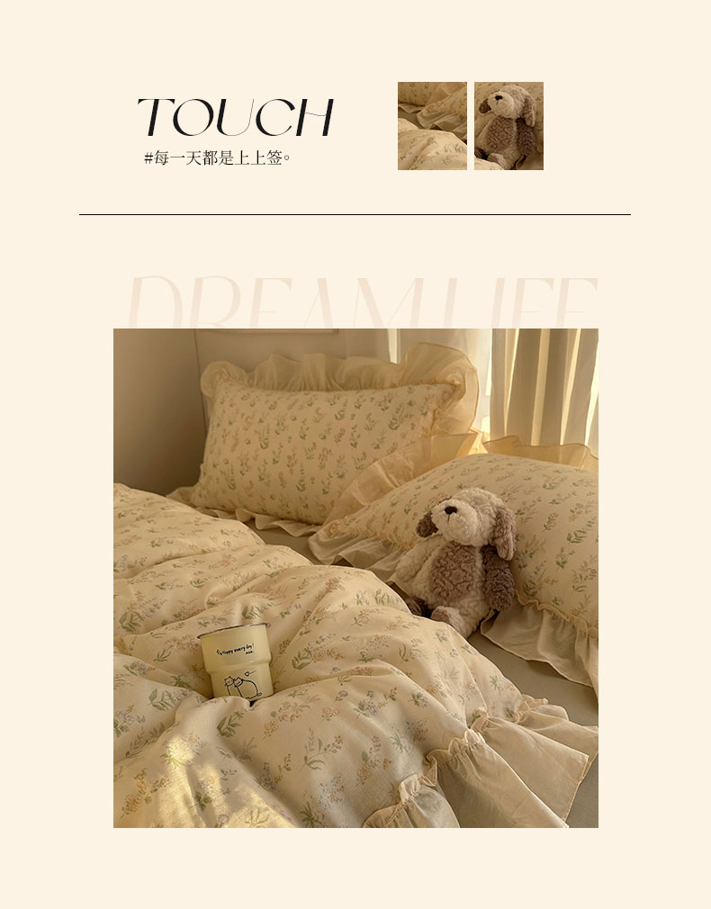 当前位置: 91家纺网 > 商品网购 > 床品套件 > 四件套 > 全棉普通四件套 > 六巷胡同 2026新款韩系博主风花边款小碎花全棉双层纱四件套 双层纱-雾漫山野