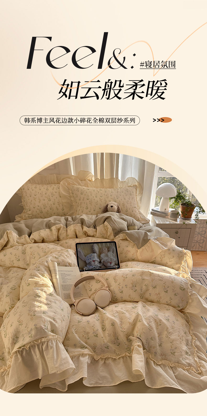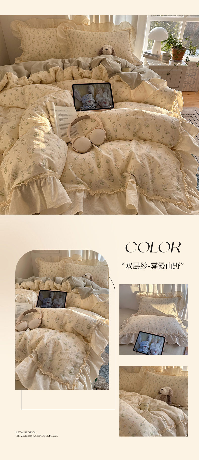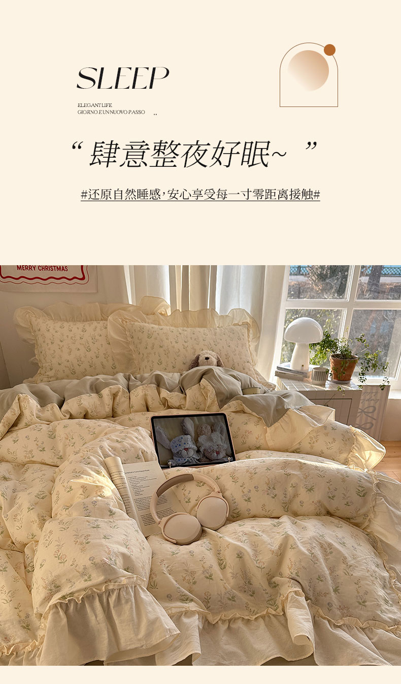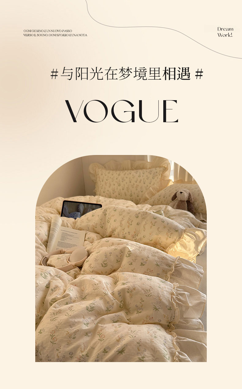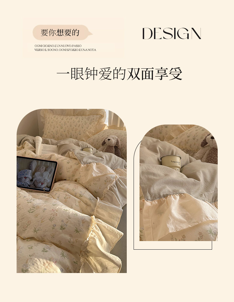 当前位置: 91家纺网 > 商品网购 > 床品套件 > 四件套 > 全棉普通四件套 > 六巷胡同 2026新款韩系博主风花边款小碎花全棉双层纱四件套 双层纱-雾漫山野