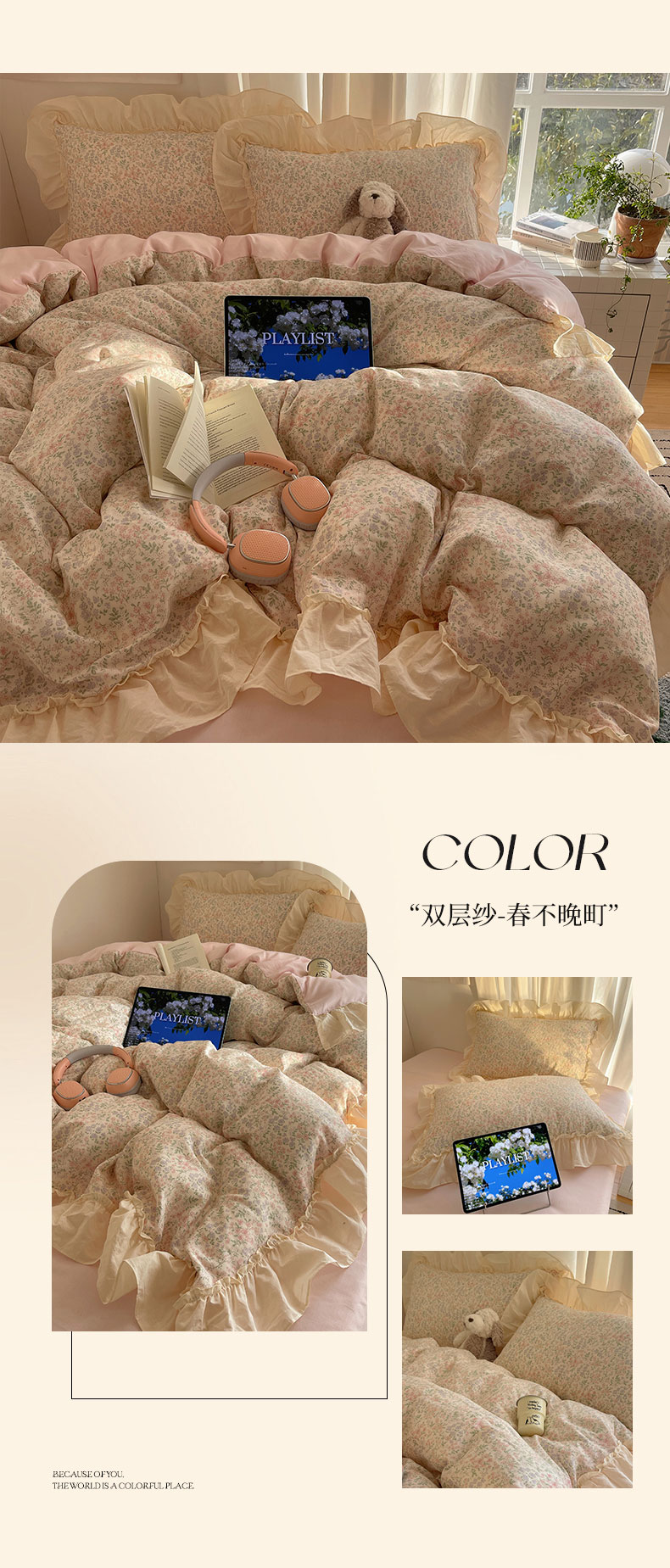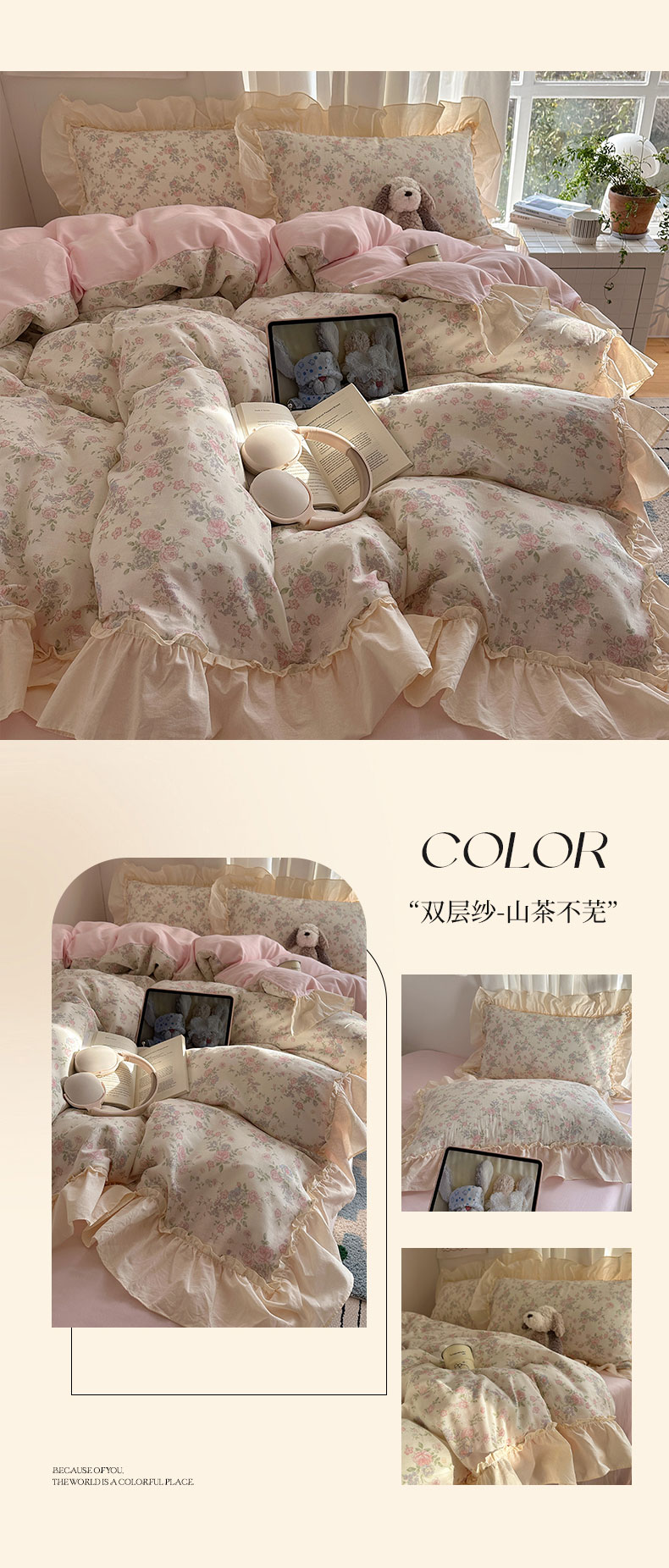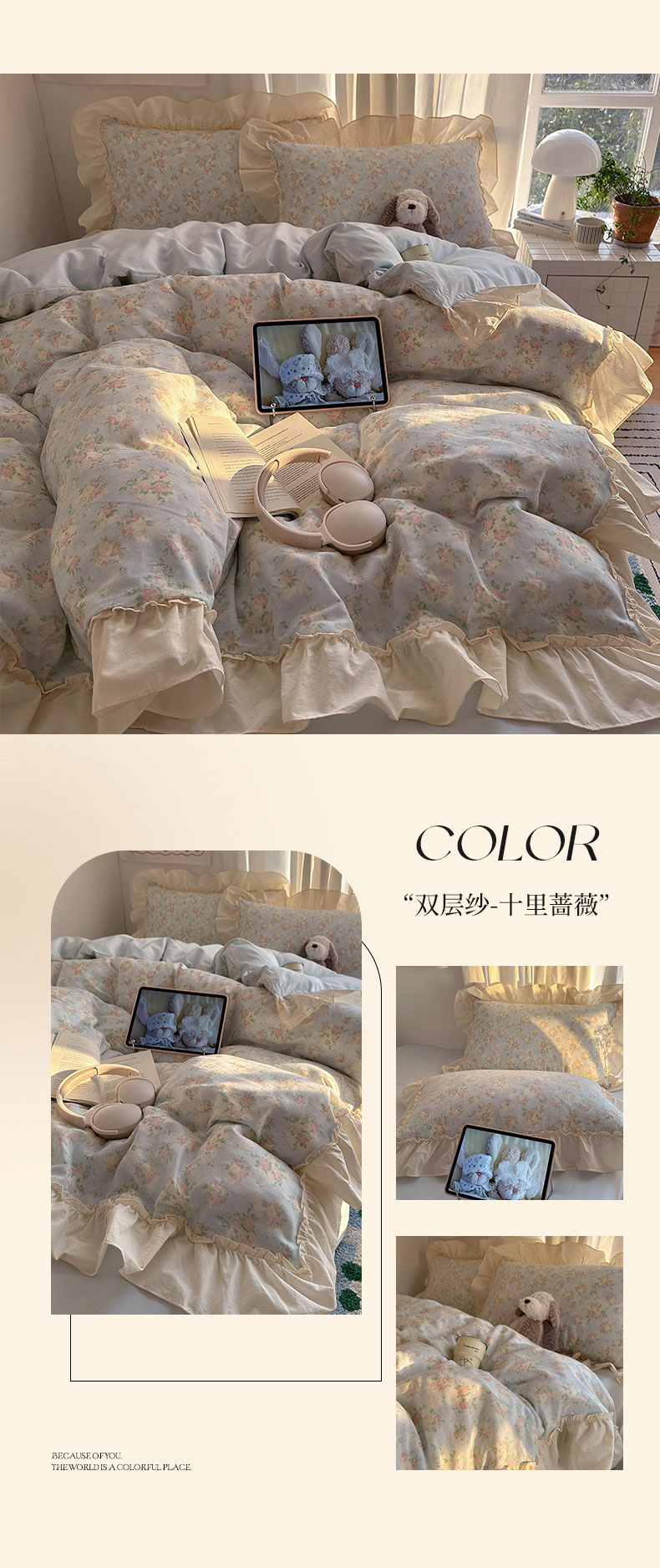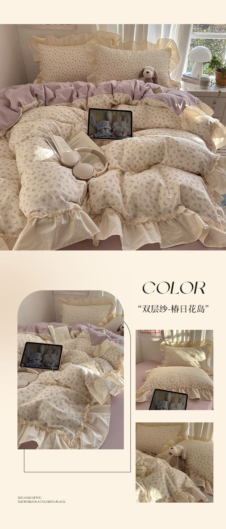 当前位置: 91家纺网 > 商品网购 > 床品套件 > 四件套 > 全棉普通四件套 > 六巷胡同 2026新款韩系博主风花边款小碎花全棉双层纱四件套 双层纱-雾漫山野
